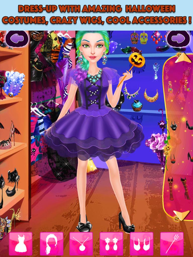 Make her ready for Halloween when you get her makeover done! Use the spooky spa tools, Halloween-themed hair and makeup tools to make her look spook-tacular for the party! Amazing selection outfits, hair, and accessories will make her best dressed this Halloween!