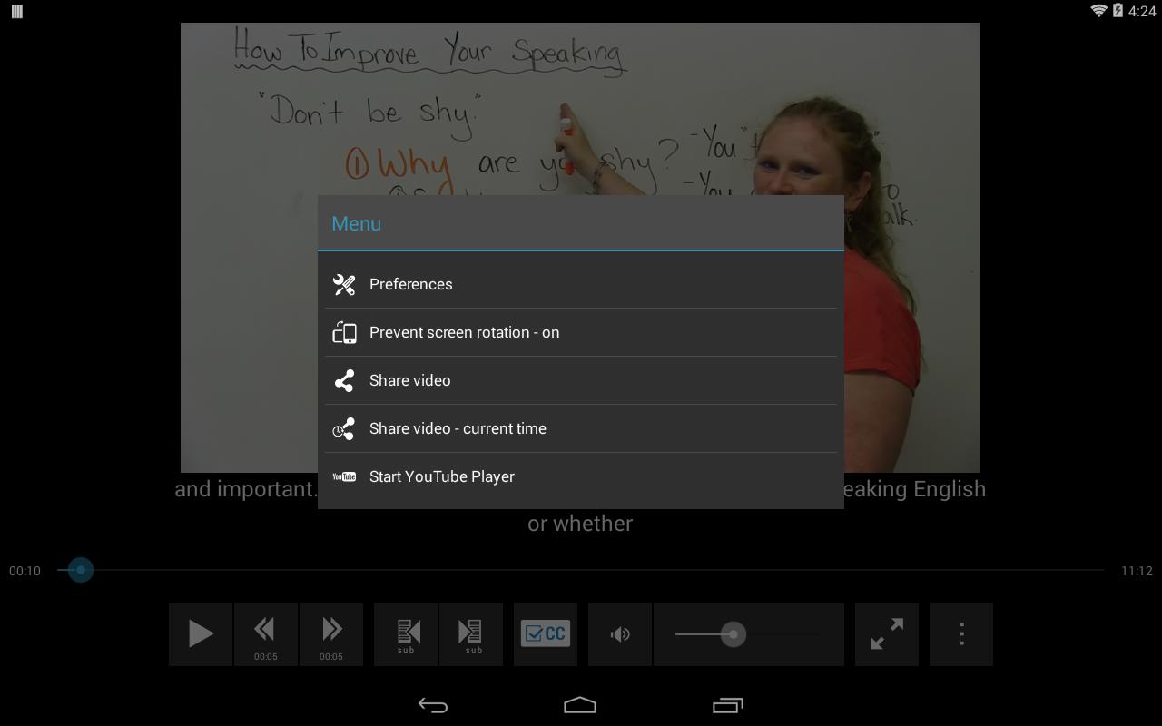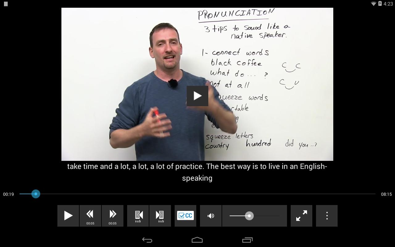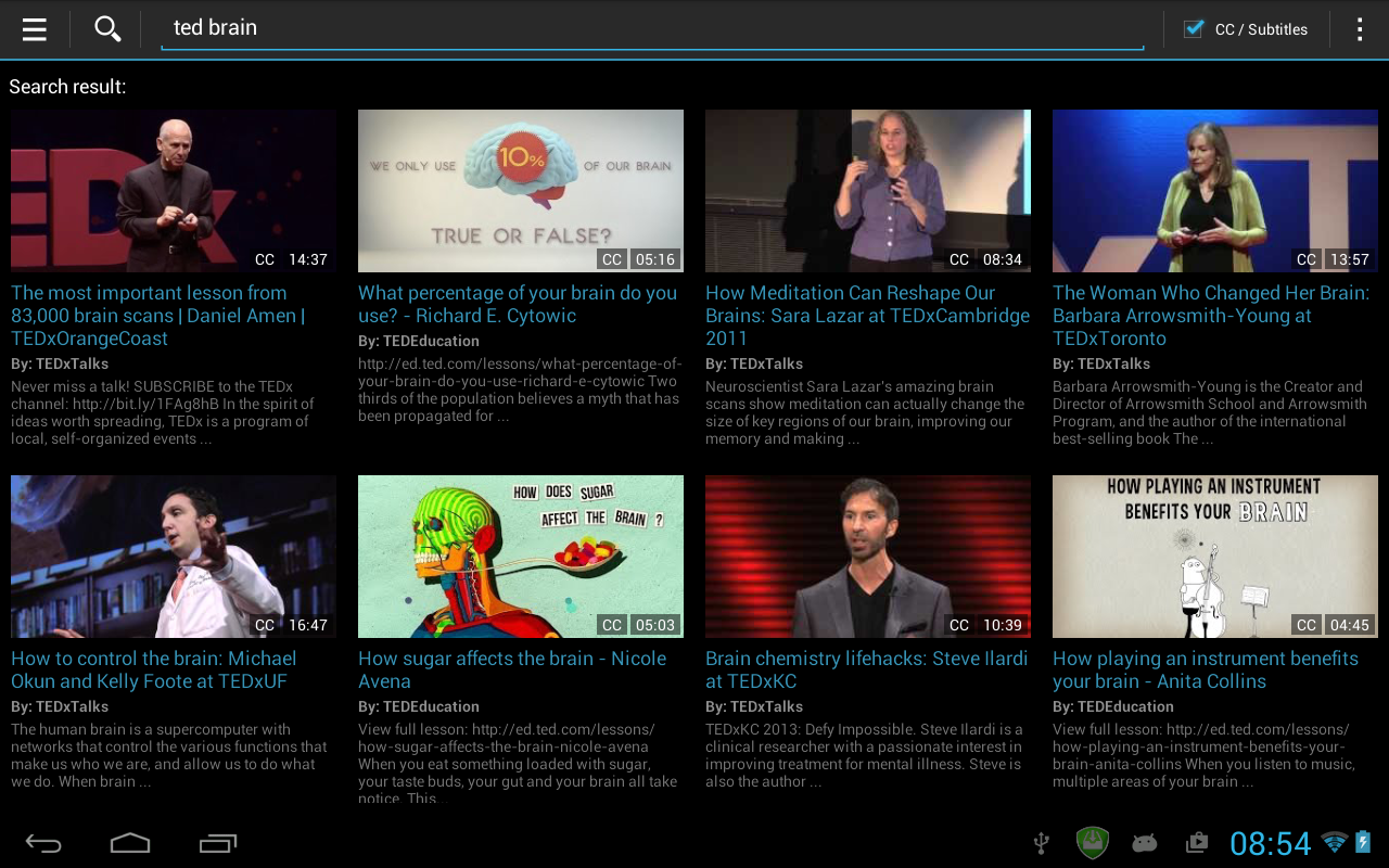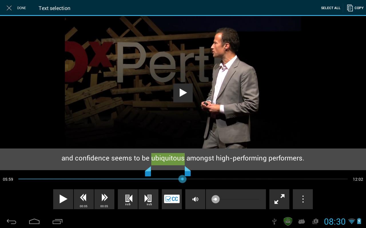 A player designed for absorbing information. The HandyTube Player enables comfortable playing of instructional and educational videos, lectures or language courses in an user-friendly environment. Save your time and nerves. 1) Jump in the video backwards and forwards by a interval. 2) Jump in the video backwards and forwards by a caption length. 3) Video jump functions available as gestures. 4) Play/Stop function by just one tap in all video view. 5) Work with captions the same as with usual text - selection of words, expressions and their copying or sharing. 6) Captions translation in Google Translate. 7) The caption is displayed outside the video view. 8) Position Marker - continues playing where the video stopped the last time. (For all videos in History) 9) Volume control directly in the application. 10) Rotation lock and prevent the screen from automatically rotation. 11) Video sharing with a link to current playing time. 12) Search results to only show videos with captions available. 13) Well ordered history. Known bugs: Double captions In some videos, standard YouTube captions can be displayed right in the video view. These captions cannot be turned off by the application HandyTube „CC“ button. Solution: 1) Running the video in YouTube player. (It can be launched right from the HandyTube application.) 2) Turning the captions off in YouTube player. 3) Switching back to HandyTube. 4) Ending the running YouTube application with the help of task Manager. This step is important! That means that leaving YouTube won’t do. 5) The video in HandyTube is without captions.