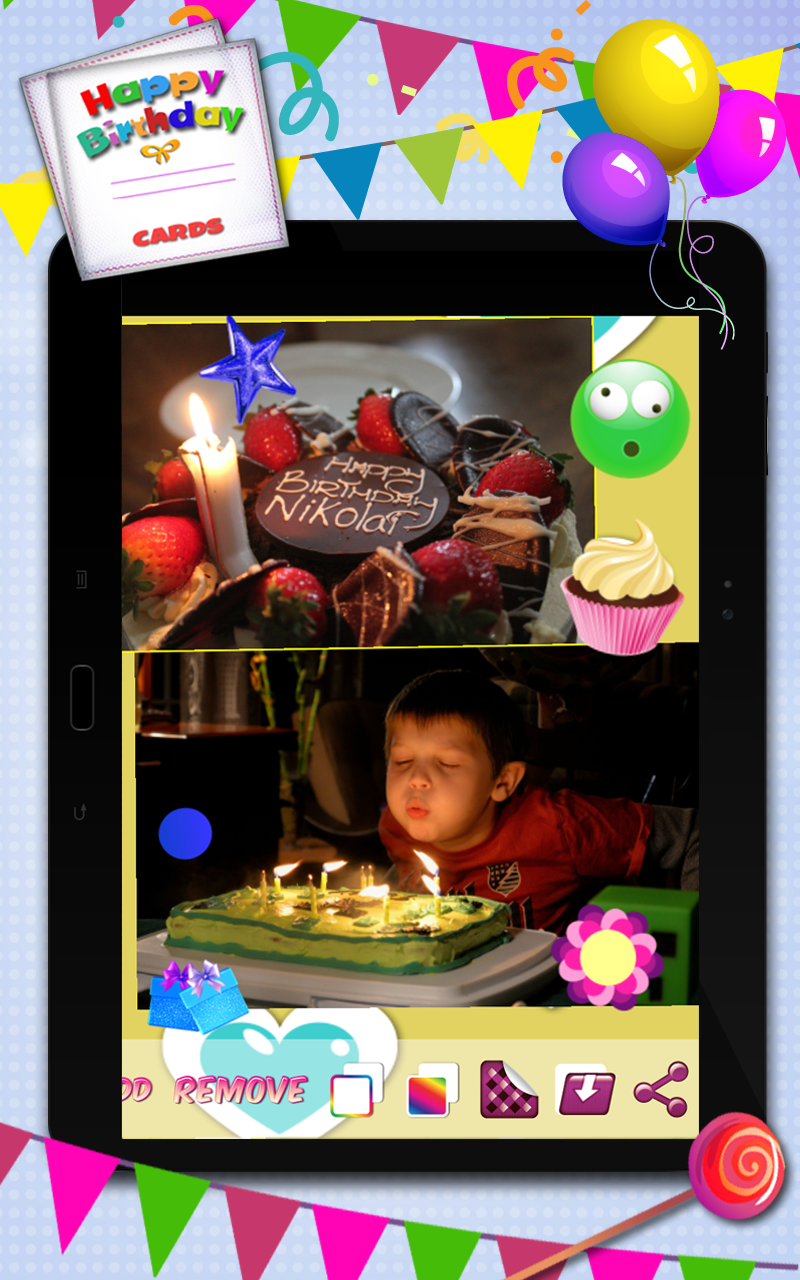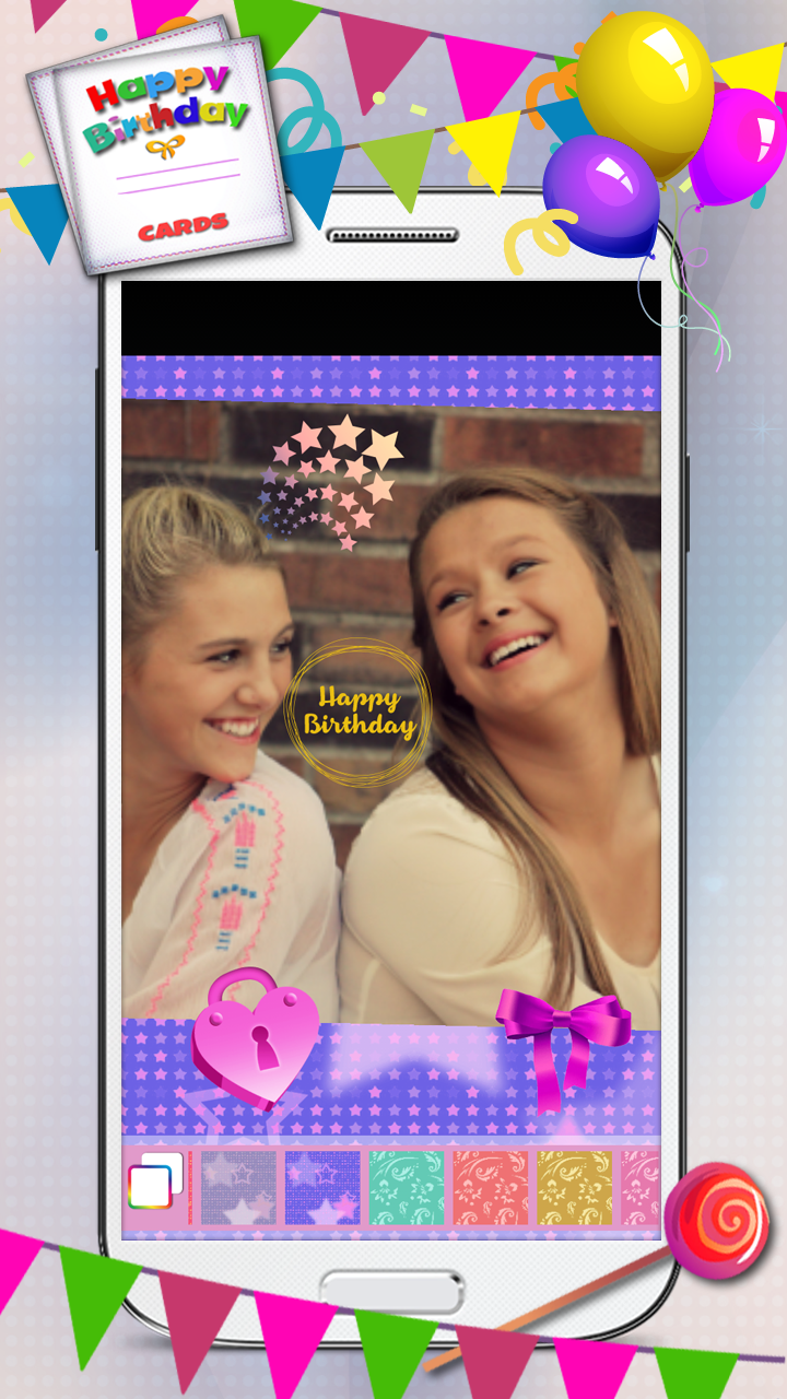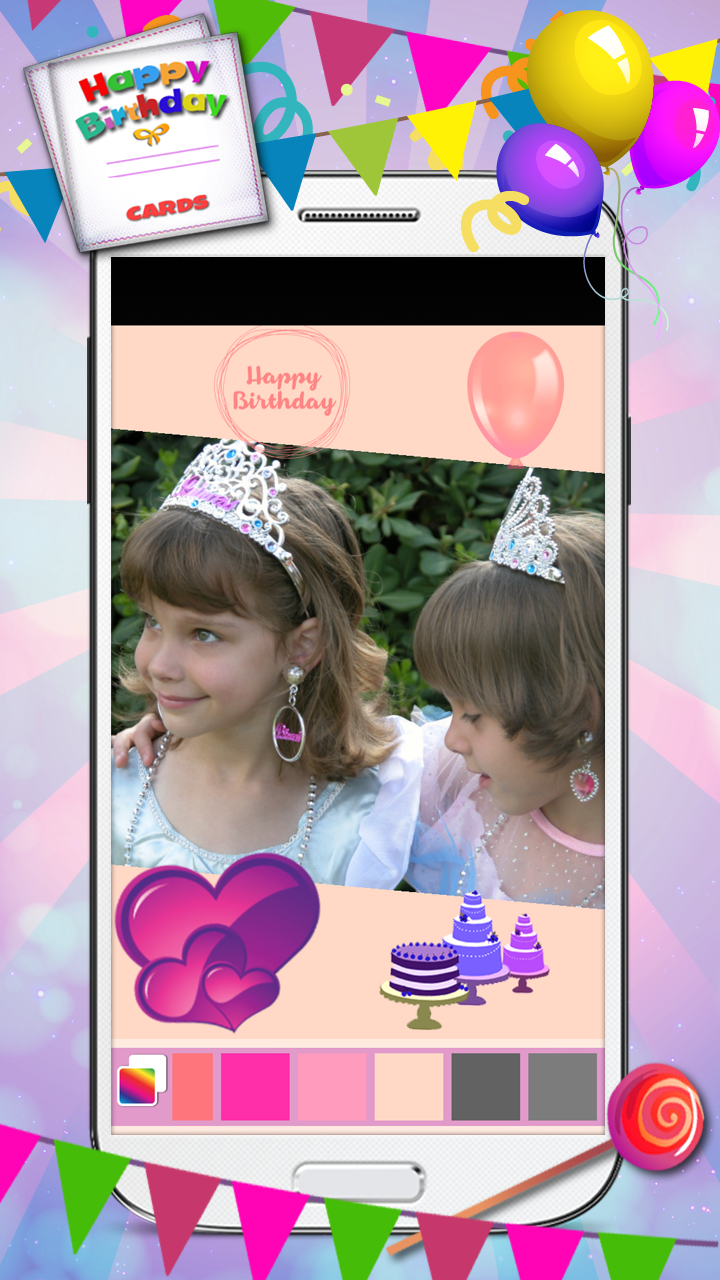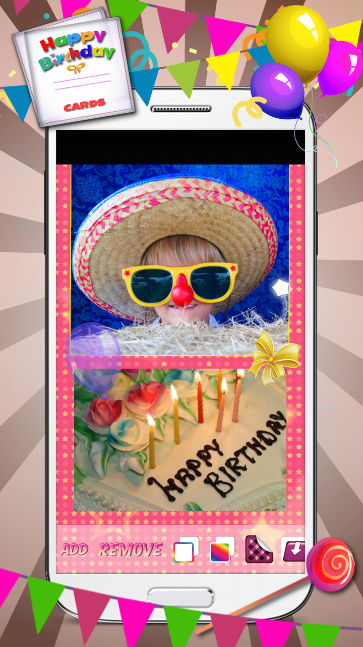 You want to express happy birthday wishes but you're out of ideas? Here is the best collection of an excellent pic decorating app for you. If you're a fan of photography and photo editing, you're at the right place. Download free photo editor ♣ Happy Birthday Cards ♣ and create the best happy birthday greeting cards! Features: ☻ Numerous happy birthday backgrounds and patterns! ☻ Various backgrounds in all colors of the rainbow! ☻ Cute stickers: cupcakes, presents, candies... ☻ Happy birthday quotes and sayings! Who doesn't like blowing candles, eating birthday cake and getting nice presents on their special day? Most of us like to spend our birthdays with our family and close friends, in an atmosphere of love and joy! As the years go by, we no longer wish for expensive presents, but we begin to appreciate small gifts made with love. This free photo editing software can help you do exactly that! With this innovative pic editor you will be the person with the best birthday gift ever! Therefore, get this free app and be the first to surprise your friends and loved ones with great birthday gifts. Now is the time to say happy birthday to you in the most imaginative way! Forget about the usual happy birthday messages and happy birthday quotes and sayings and start creating amazing birthday ecards. With this photo editing software, you will never have to think about happy birthday apps again. This free photo editor contains a collection of happy birthday picture frames which offers you a chance to create lovely images and wallpapers that you will simply adore. There are also cute stickers with birthday hats, birthday cakes, and birthday candles. All you need to do is upload a photo of your choice and decorate it with whatever you like. Add happy birthday backgrounds, wallpapers, and stickers and create the most amazing greeting cards. It's time for some happy birthday decoration! All you have to do is download free image editing software ♣ Happy Birthday Cards ♣ and start creating happy birthday pictures. Install it on your phone, upload a photo from your gallery and apply one of the beautiful happy birthday frames to it. They are all colorful and lovely and they will make your pictures look cute and adorable. When you're finished, you can save it to your gallery. It's an era of social networks and selfie mania, and you've surely experienced some of it. Take a perfect selfie and edit it with this incredible photo collage maker. Apply happy birthday photo frames and post your happy birthday ecards online. Create happy birthday invitations in our photo editor and simply be original. We have chosen a variety of pic frames especially for you, so you can experiment with them and make your selfies look amazing. Download ♣ Happy Birthday Cards ♣ and don't hesitate for a minute. ♣♣♣ Photo effects for happy birthday greeting cards! ♣♣♣ Want to send happy birthday greetings to your mom, dad, brother, or sister? Choose your family photograph, edit it in our photo manipulation software, and create the most awesome happy birthday cards. If you want to express your love towards your sweetheart for his or her birthday, you can frame your favorite love picture in a colorful happy birthday frame and send it to them in a message, or post it on their social network wall. When it comes to your friends, you can choose your favorite pictures of the moments you spent together, add nice birthday picture frames and surprise them with a happy birthday message. Please support us by telling your friends about ★ Happy Birthday Cards ★ and leaving us a good review!