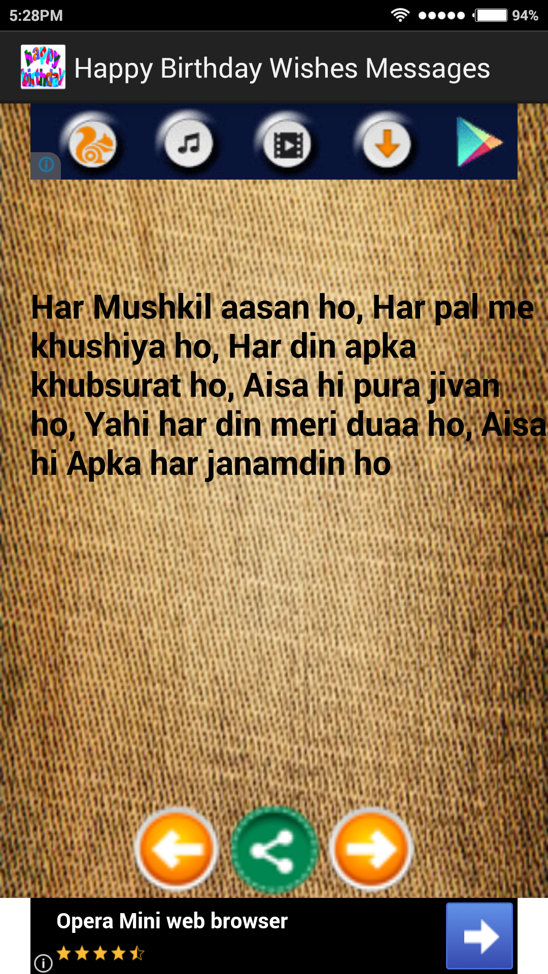 Happy Birthday Wishes Messages Enjoy the huge collection of Birthday Shayari SMS Messages Quotes WhtasApp Status (Hindi & English Messages) to share with your loved ones by whatsapp , facebook, SMS, email, Chats, etc. Click on the Icon Messages and choose the app from the dialogue through which you want to send the message. If are you looking for inspiration or an idea for something to send the birthday greeting for a good friend or family member? Our app has wonderful Birthday Wishes that are perfect for use on a birthday Shayari SMS Messages Quotes WhtasApp Status. Genuine heartfelt birthday wishes can brighten up the day for anyone. Sending happy birthday messages is a way to let your beloved and friends know that you care and that you are happy because it is his or her birthday. Unique birthday wishes and sayings Shayari SMS Messages Quotes WhtasApp Status are available here for every type of person as well as for any age. Download the app and send lovely birthday Shayari SMS Messages Quotes WhtasApp Status to your relatives.