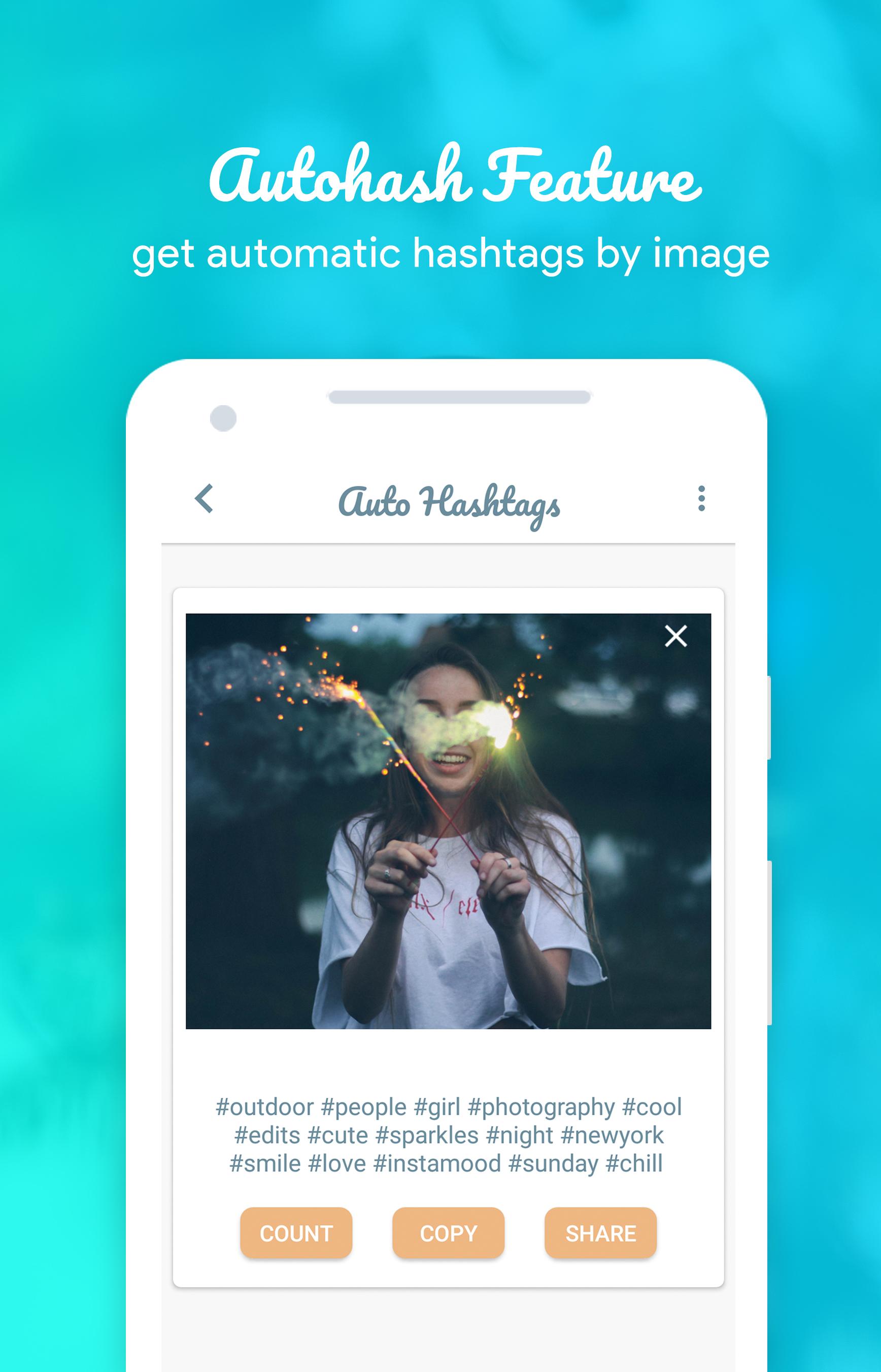 - Add a picture from your gallery. Hashtag for Instagram will automatically generate hashtags for your image in a few seconds with No limitation.