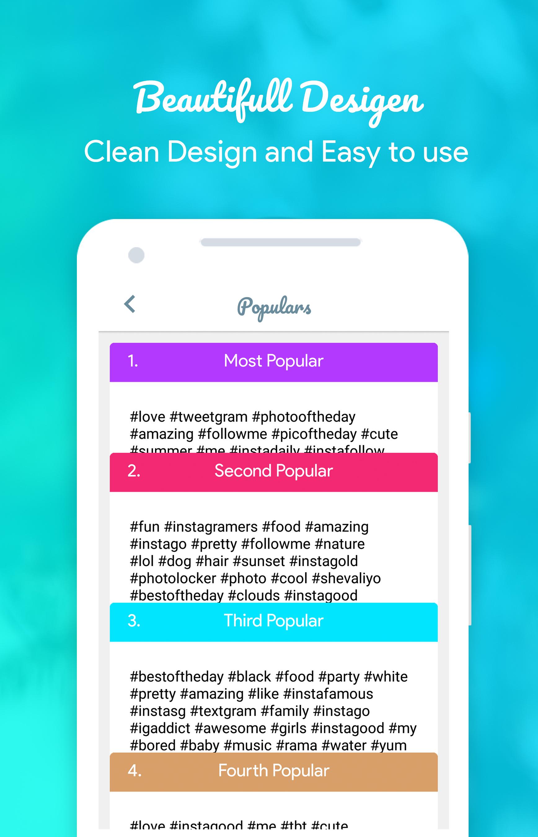 - Simply choose a hashtag category and now chose any card , tap "Copy" button or tap "Copy with Facebook, Instagram, Twitter" button(means copy and open that app) then paste on your pictures and posts! And get Organic likes And followers.