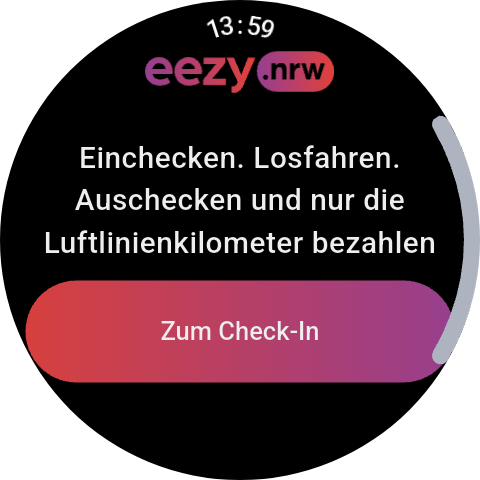 Also available for Wear OS. Ideal for checking in and out via your smartwatch with the eezy.nrw fare!