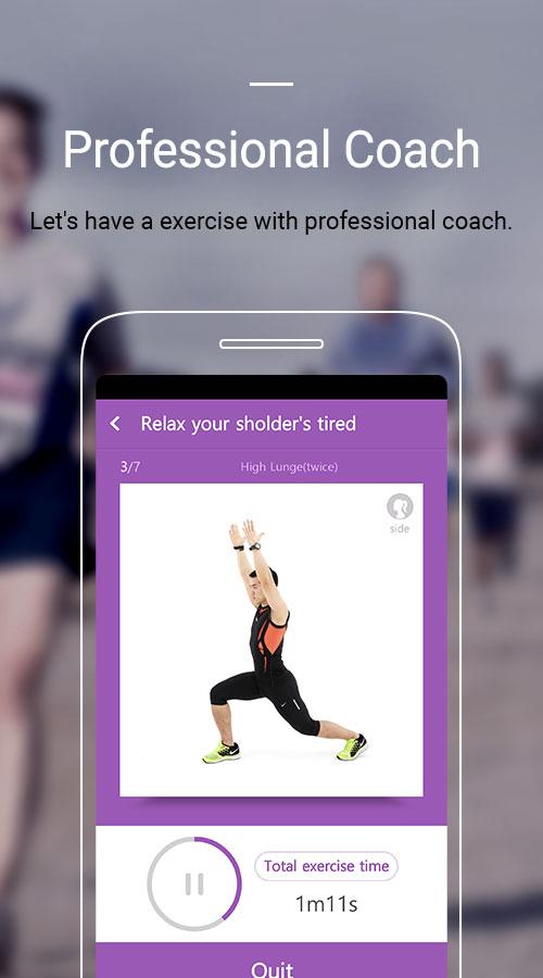 Even if you cannot go to the gym, your personal fitness trainer in HealthUp provides training instructions and demonstrations for forty types of workouts, including squats and lunges.