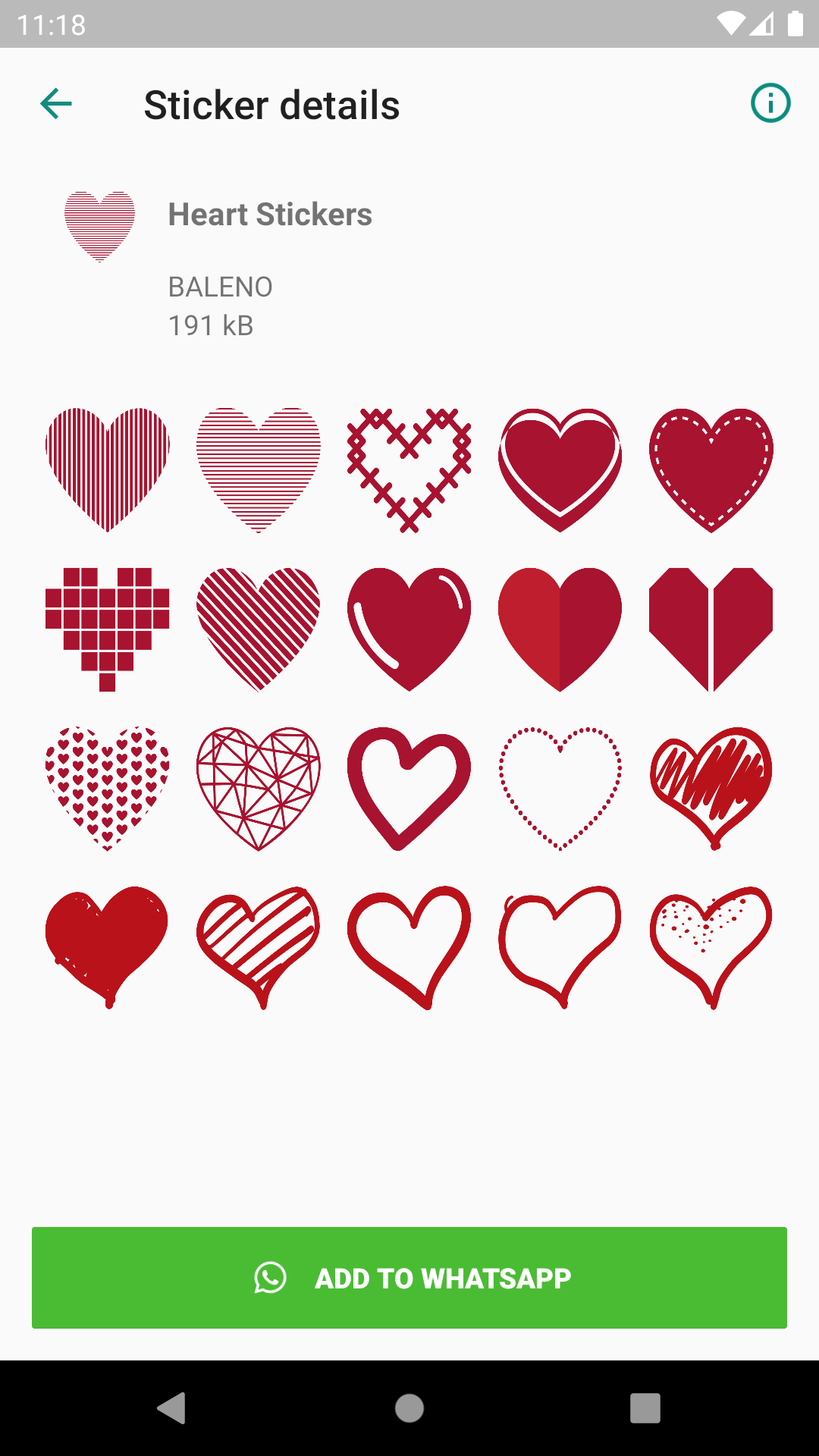 Heart Stickers (Package Name: com.heart.corazon) is developed by BALENO and the latest version of Heart Stickers - WAStickerApps 1.0 was updated on June 7, 2021. Heart Stickers - WAStickerApps is in the category of Communication. You can check all apps from the developer of Heart Stickers - WAStickerApps. Currently this app is for free. This app can be downloaded on Android 4.1+ on APKFab or Google Play. All APK/XAPK files on APKFab.com are original and 100% safe with fast download.