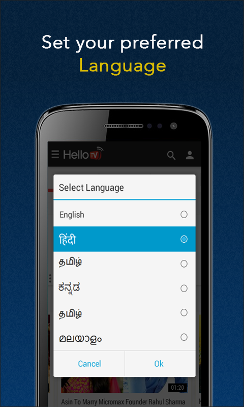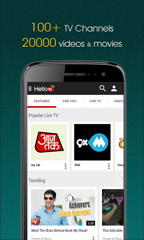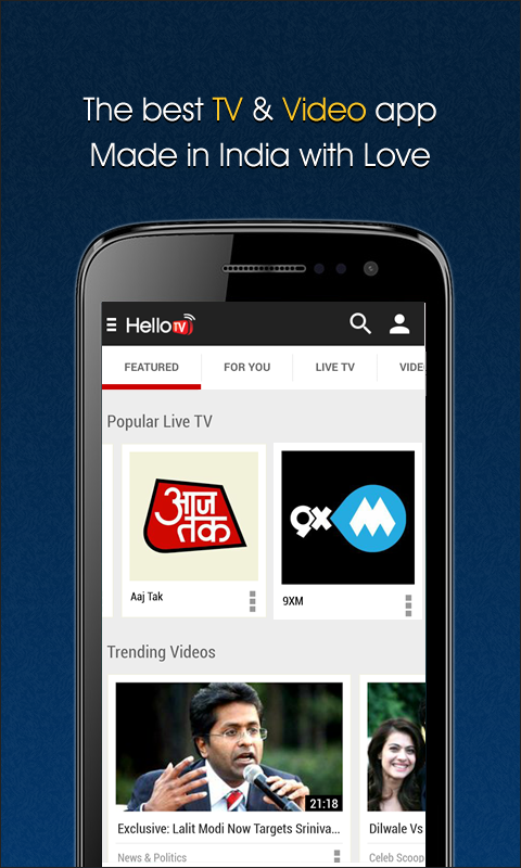 HelloTV is an easy to use application to watch high Quality Indian TV channels, Movies and Videos. Choose from a wide selection of exciting videos and TV shows which can be streamed or Downloaded for offline viewing.