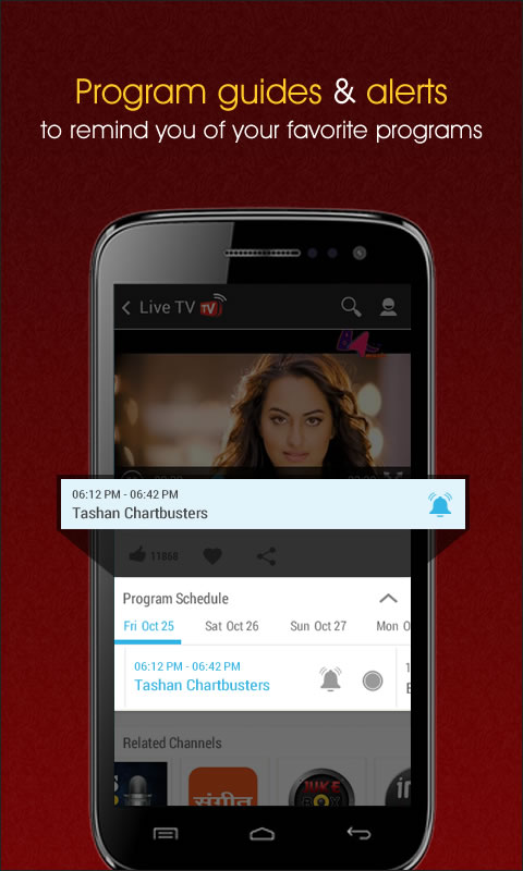 இதுபோன்ற இலவச டிவி சேனல்களை பார்க்க: ஆஜ் தக் 9xM, யூடிவி, இந்தியா டிவி, ஹெட்லைன்ஸ் டுடே, B4U, மஹுவா, டங்கள் சங்கீத் போஜ்புரி, சந்தேஷ் டிவி, TV9 குஜராத் மற்றும் மேலும்.