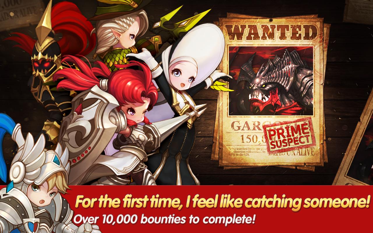 Seems like a good day to start hunting down someone!A grand adventure RPG unfolds around the Sage Stone!We invite you to join us in overwhelming quests and dynamic battles with Mercenary Captains from around the world in a search for wanted targets.As you battle on to complete bounty missions, your mercenary monsters will become stronger and fill up the World.***▶ Game features[Overwhelming amount of quests]Fire, Water, Forest, Light, and Dark!10,000 Wanted Monsters of 5 Elements!Defeat various Wanted Monsters and claim your bounties![Various Content]Village, Dungeons, Raids, Daily Dungeons, Collection, Leveling and PvP! Unlimited amount of content awaits you![Balanced Leveling System]Transform a 1-star Monster into a 6-star Monster through upgrades, level ups and evolutions! All Monsters are precious! From now on, no monsters will go to waste.Hurry up and this perfected RPG fun! Go, go, go!* Authorization Requests1. Authority to save in the external storage will be requested.(READ_EXTERNAL_STORAGE, WRITE_EXTERNAL_STORAGE)2. Authority to access contacts and Google account information will be requested.(GET_ACCOUNTS)3. Authority to read the device information will be requested.(READ_PHONE_STATE)Available Languages: English, Korean, Japanese, Chinese, Thai, Portuguese, Spanish, German, French, Italian, and Russian.