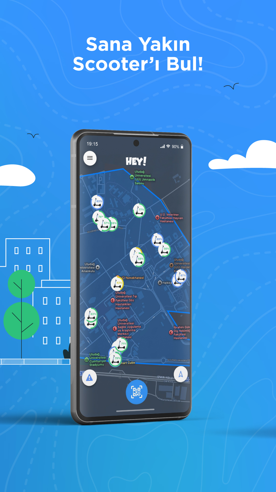 HEY! Scooter is a fun electric vehicle sharing concept developed for micro transport. It allows you to travel freely with pick up from wherever you want and drop it wherever you want. With the rental facilities we offer, we provide the opportunity to travel in crowded cities economically and without traffic congestion, without worrying about parking costs. Moreover, our electric scooters; faster than walking, cycling or public transport. It is respectful to the city and nature with its electrical energy and is completely environmentally friendly. Hey! To rent a scooter; 1. Download and install the app 2.Scan the barcode and unlock 3.Parket and lock to finish 4. Take the photo and upload it to the system