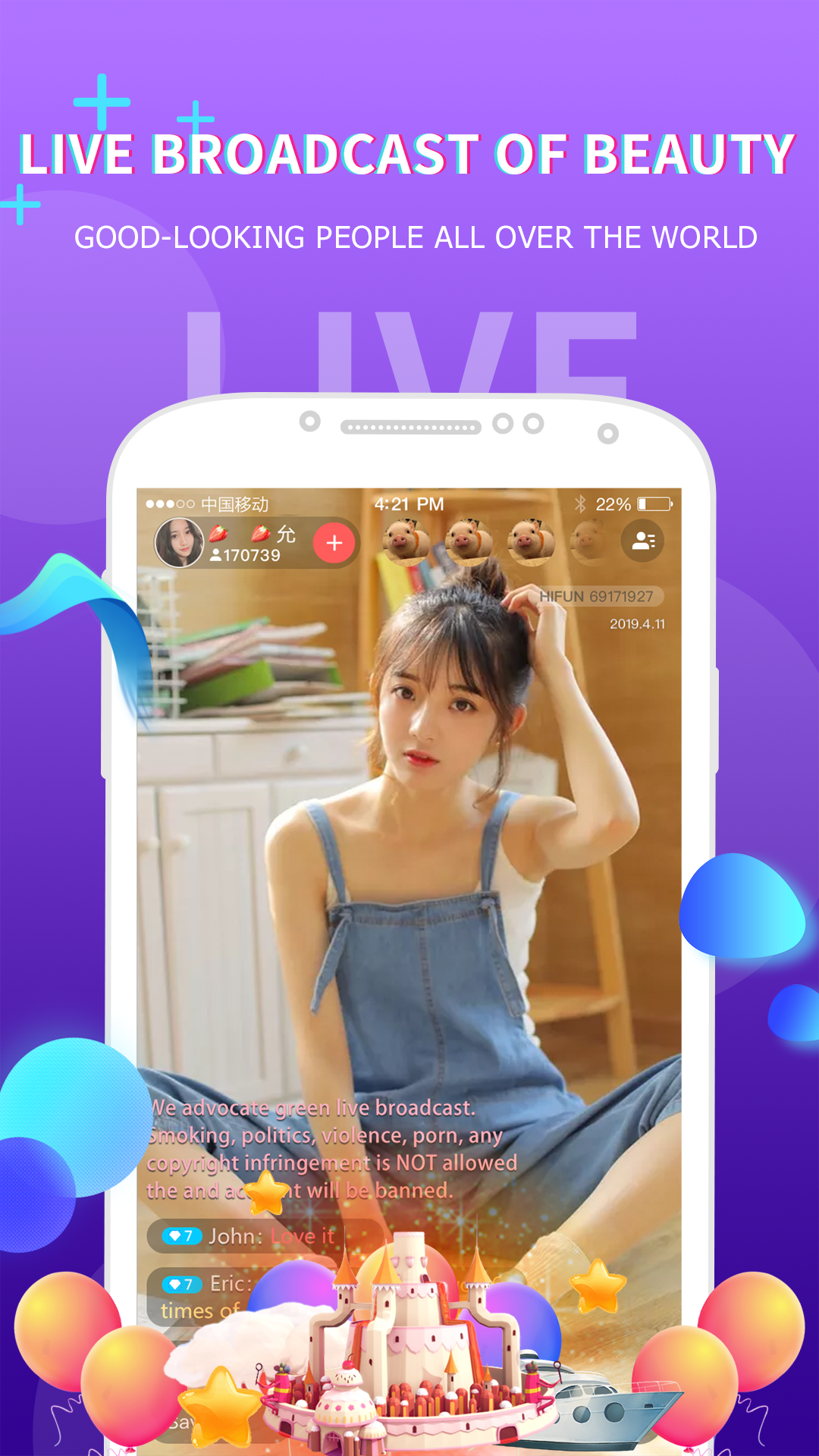HiFun, a video chat app with pretty girls, aims to bring people with high-quality and exclusive chatting experience. In HiFun, hundreds of selected anchors online are waiting for you to start a video chat every day. ------Meet your following needs in HiFun------ 【1v1 video chat, exclusive experience】1v1 video chat with your favorite host here, enjoy her talent and beauty on you own 【Live broadcast】Let's talk about all the amazing news and exciting moments, enjoy hot dance and sweet song, feel the most active atmosphere 【Wonderful short videos】Users in HiFun upload their own private short videos every day, which are pure, sexy or funny, full of surprises ! Whisper to you that these videos are not possible to be watched in other app. 【Gift reward】 Update various cool gifts now and then. Pick one at random to make the anchor excited. It's up to you tonight ~ 【Exclusive beauty effect】 Whatever you shoot self-video or video chat with anchors, the beauty effect in HiFun can make you prettier and feel more confident. However, if you feel shy, don’t worry, just turn off your camera during video chat . This is the VIP experience. 【Other functions, waiting for you to discover】HiFun has many other functions, not say much here, come and open it!