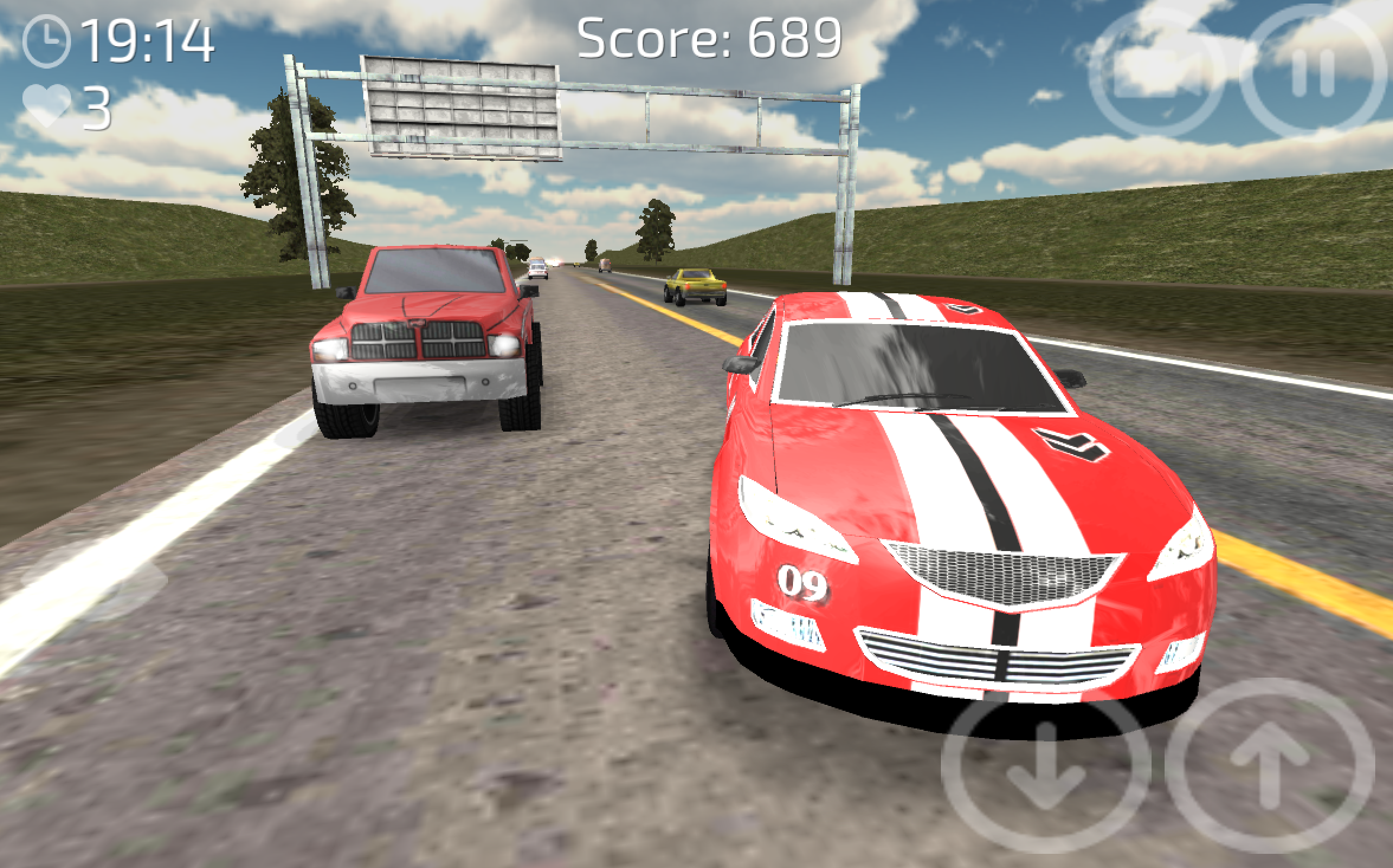 Drive sport cars through traffic. Get in your car, overtake traffic cars, race, drift, have fun. Feautures: Automatic or manual transmission (manual gear switching). Nice 3d graphics. View from cockpit or top of the car. Select between two fast sport cars. Realistic sound and physics engine. Endless traffic road. Please give us some support by following us on: FB - https://www.facebook.com/onotion Youtube - http://goo.gl/QHYxgz