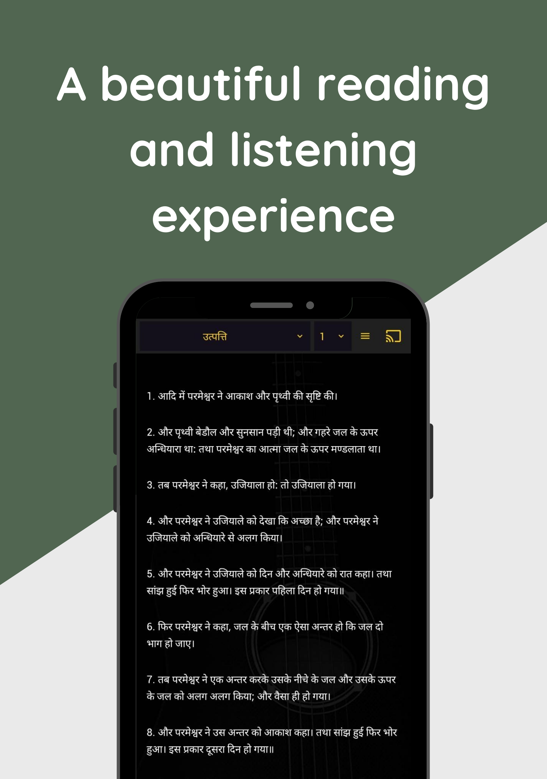 "Vedham ( वेधम ) - Multi-Purpose Hindi Bible" is the ultimate holy Bible reader app for your phone. App Features: * Beautiful Reading Experience * Compare Bible with English versions (KJV, BBE) * Go-to any verse instantly * Daily Verse * Search made easy now * Audio Bible * Dictionary for hard words * Bible Wallpaper Maker * Photo Editor * Bible Quiz * Notes with advanced options * Bookmarks options * 1000 Praises More Details: * Bible options - - Reading the Bible daily helps us to live a better life. "Vedham ( वेधम )" app enhances that in every way. Any bible verse/chapter can be compared with English versions such as King James Version (KJV) and Bible in Basic English (BBE). - - Any verse can be created as wallpaper instantly with 50+ templates. Photo editor brings more control over wallpaper design. - - Verses can be shared with any social media/messengers. Copy option enables more facilities. Verses / Chapters can be marked as favorites, so that it can be accessed easily anytime. - - Any chapters can be downloaded as PDF with/without English comparisons. Slideshow option enables a beautiful visual treat. * Goto - - "Goto" option is designed to ease the process of locating any verse instantly. So that, you will get to the spot before anyone does. * Audio Bible - - Not just reading, listening Bible also brings joy. "Vedham ( वेधम )" app provides an intuitive user interface that ensures you always have control over it. * Photo Editor - - Our photo editor can even compete with professional photo editors which are available online. You can edit your Bible wallpaper without leaving the app. Images can be exported and shared in no time. * Notes - - You can create, edit and delete any number of notes. Since, it comes with rich text controls, you would love to create notes with our app. We also provide the option to export your note as a PDF and share the same as well. * Chromecast Support - - It's pretty self-explanatory. In today's world, everyone wants to see their content on bigger screens. People who want to show verses on android TVs / Chromecast-enabled devices can be benefited. * Presenter - - Using 'Presenter', you can show verses on any browser-supported display. If the presenter is enabled, the verses you are reading will be broadcasted in a public URL. You can share this URL with people who have access to browsers. And they will see what you want to show them. - - Devices like laptops, PCs, MacBooks, iPhones, Televisions, Raspberry Pi, etc... can be benefited. - - It's a great fit for lower thirds as well. Helps you step up the game in live streaming software such as OBS, Wirecast, vMix, and so on. - - Ensure your presenter phone and all other devices are in the same network. * Meeting - - 'Meeting' feature will amaze you with its simplicity. You can create a meeting and let others join them from their android devices. Joined people will start seeing the verses you want to show them. - - It's a great fit for smaller congregations/family prayers. * Powerful Settings - - Customisation at its peak. Comes up with stunningly beautiful graphics and themes. - - Font customization, text size customization, bold text customization improve the reading experience - - Daily verse settings - - Audio settings give you the control to change the voice, speed, and pitch of the audio. - - Chromecast / Presenter Settings (Lower third settings) - - Backup, Restore & Reset Settings Created by: Sam Solomon Prabu SD