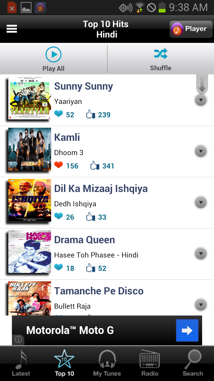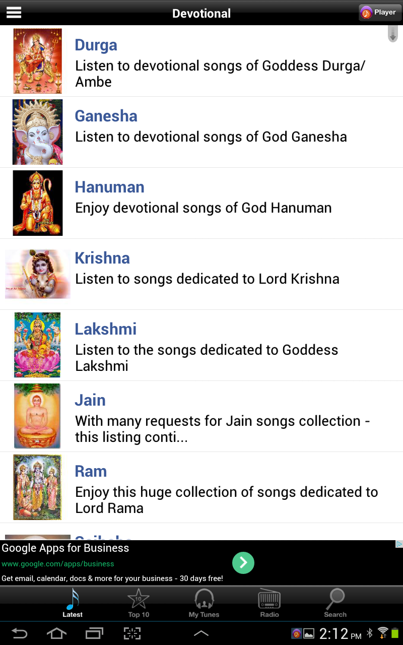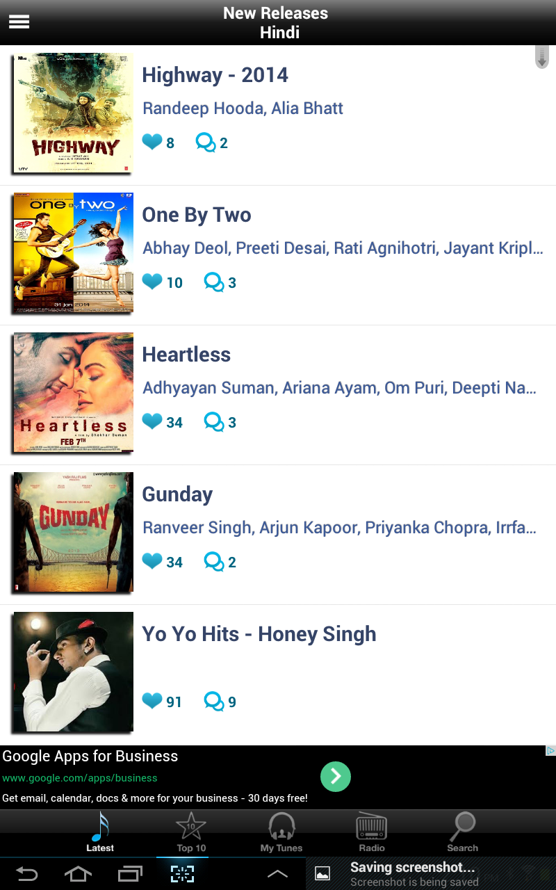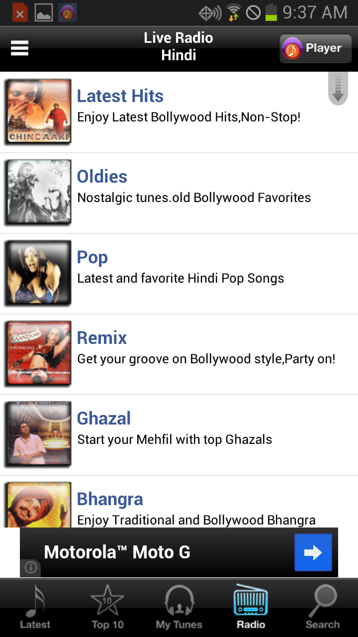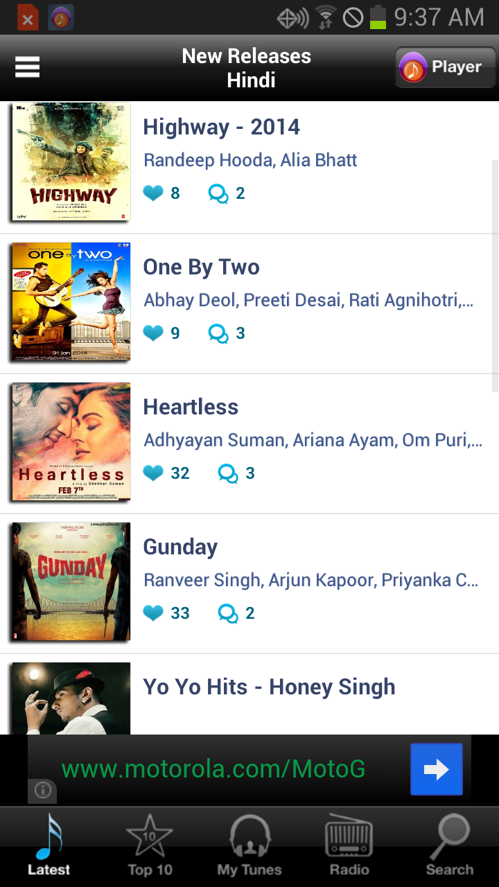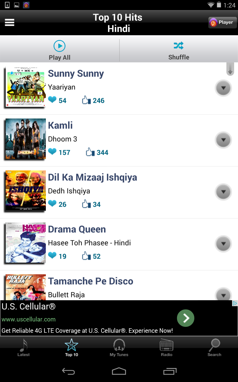 A feature packed Indian music app featuring Hindi, Tamil, Telugu & Malayalam music selections! Indian, Bollywood music featuring language specific New Releases, Top 10 songs, Live Radios and Devotional albums. User comments and ratings are at your fingertips. Click on Facebook Connect and instantly share your joy with friends. Here is the mega list of features included: ♪ Hindi, Tamil, Telugu & Malayalam - choose your language to display language specific New Releases, Top 10 songs, Live Radios and Devotional albums ♪ Instantly view full song lyrics from player ♪ Create playlists of your favorite songs ♪ Add albums, songs and playlists as favorites ♪ View and submit song ratings and comments ♪ Most popular Top 40 songs are now at your fingertips ♪ Browse through numerous categories including compilations, pop, remix, ghazals, love songs, oldies, karaoke, Bengali, Gujarati, Marathi, Kannada, Carnatic, Bhangra ♪ Awesome Devotional section categorized by Deity and language ♪ Search for songs by Album Title, Song Title or Playlists ♪ Facebook Connect. Share your listening enjoyment with all your Facebook friends. Tell them how much you love the song and your Desi Music App If you're not convinced yet, read our reviews! * Reviews * * This application is just Amazing. Even the clarity of the songs are great. I just love this application a lot. I'm able to keep myself updated abt the new releases on 4 languages though I'm in Singapore. 5 stars........ - Rajashekar (Singapore) * I don't normally write apps reviews, but I had to give it for this one, very nice clean app, brilliant sound quality, music available in 4 different languages!! Simply great for FREE app!! Get it guys! - Sam Karwal (UK) * Love the collection. I have tried some other apps. But this app is mind blowing. Great collection, great streaming, great sound. - Animusic (USA)