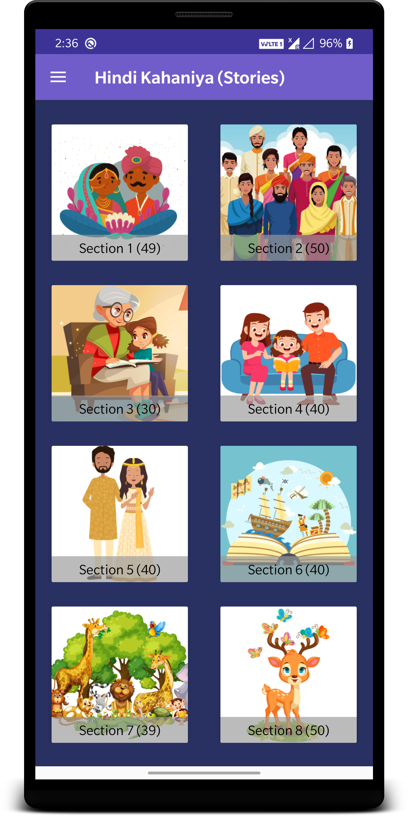 This application consists of Indian Hindi stories which are taught in school in houses and else where, we have kept in mind the following points to make it simpler for the user to interact.