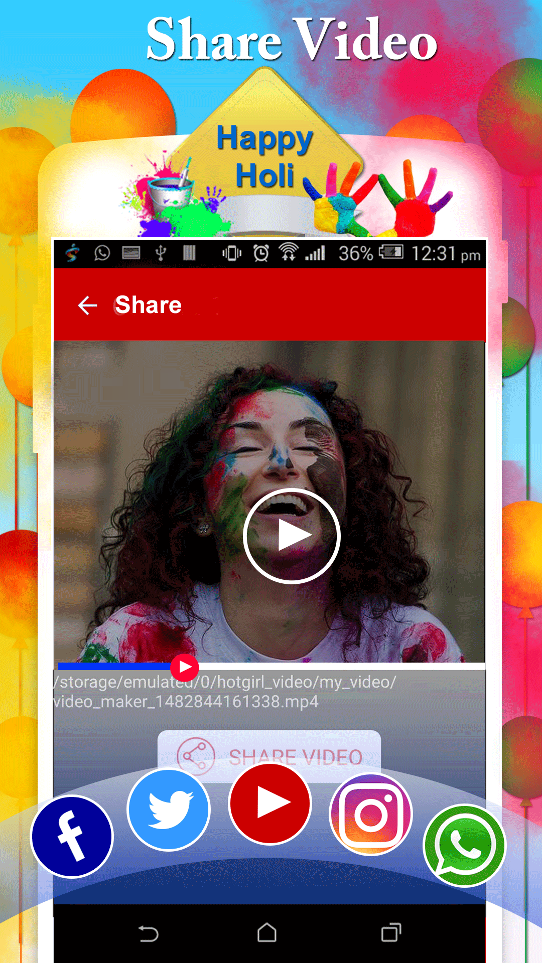 Holi Video Maker (Package Name: creativeteamtech.festvideomaker) is developed by Universal Technology and the latest version of Holi Video Maker 2018 4.0 was updated on April 16, 2018. Holi Video Maker 2018 is in the category of Video Players & Editors. You can check all apps from the developer of Holi Video Maker 2018. Currently this app is for free. This app can be downloaded on Android 4.2+ on APKFab or Google Play. All APK/XAPK files on APKFab.com are original and 100% safe with fast download.
