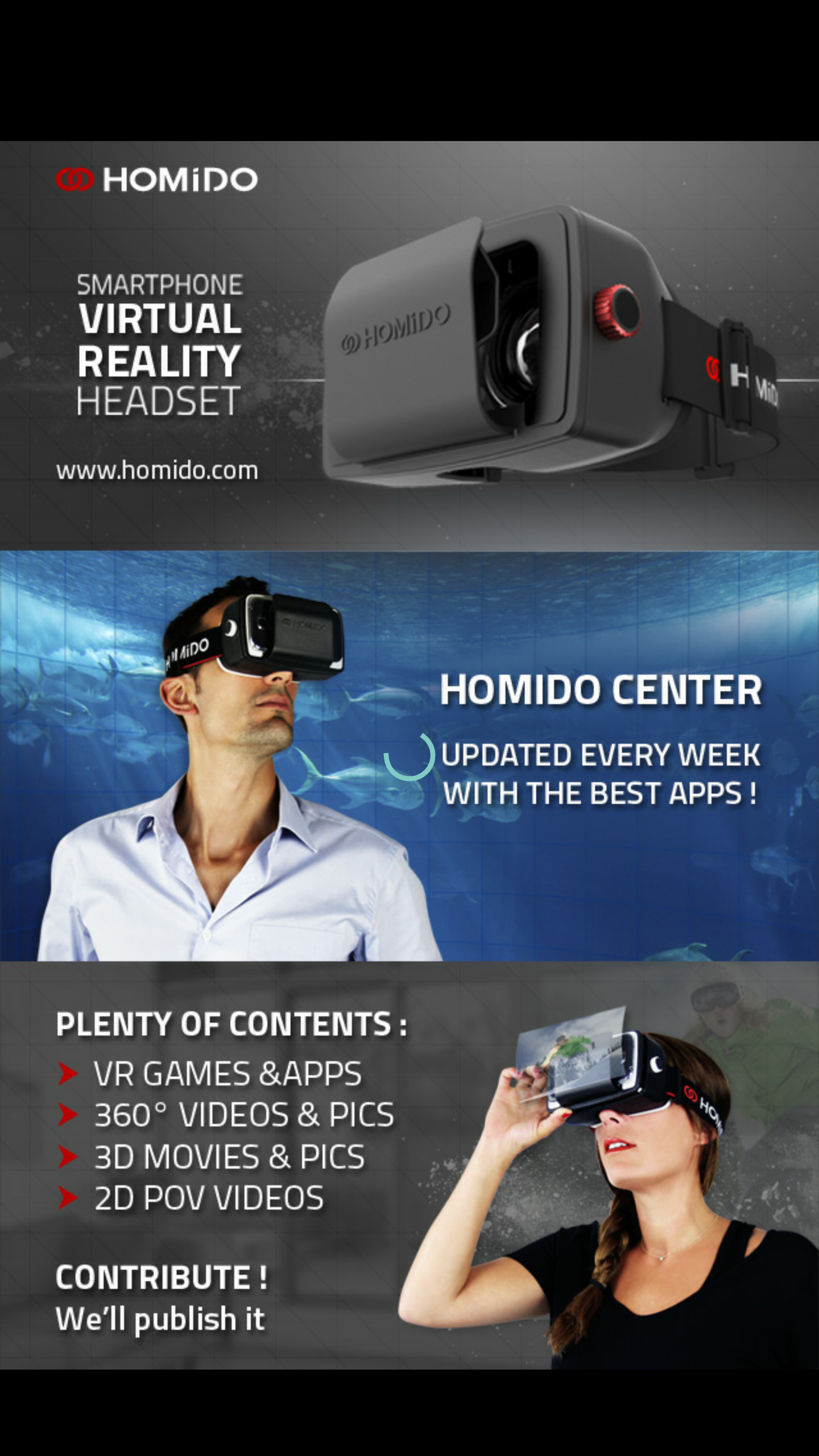 Homido Center (Package Name: com.homido.vrcatalog) is developed by HOMIDO and the latest version of Homido Center 2.4 was updated on July 20, 2017. Homido Center is in the category of Entertainment. You can check all apps from the developer of Homido Center. Currently this app is for free. This app can be downloaded on Android 4.4+ on APKFab or Google Play. All APK/XAPK files on APKFab.com are original and 100% safe with fast download.
