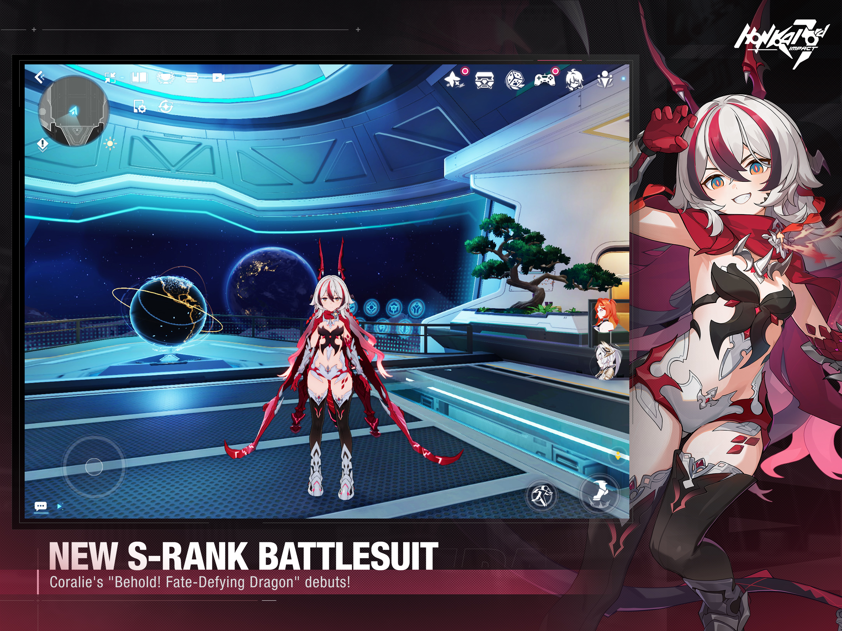 v8.4 "For the Stars Shall Defy Fate" now available! 50% off the first 10 drops of the new Battlesuit Supply! Login events grant Battlesuit Supply Card x5, Gaming for Life Stigma Option, and more. [New Battlesuit] Coralie Coralie's new S-rank character battlesuit "Behold! Fate-Defying Dragon" debuts! Save 50% on the first 10 drops of the new Battlesuit Supply! She is a MECH-type Fire DMG dealer who can perform various moves using her dragon claws and wings. The dark lord rends the shadow of the divine, and the evil dragon burns eternity into cinders. The wounds left by fate grow wings that transcend time, and the long night stained by death fuels the fire of civilization to burn ever brighter. She spreads her wings in the blazing flames, a raging fire never to be vanquished. "Because today is the future our senpais paved for us and the future we will pass on!" "This is the permanence forged by humanity!" [New AstralOp] Chenxue Chenxue boosts Astral Ring Intensity gain for battlesuits. In Stellar Outburst, she unleashes her Synergy Attack to draw in nearby enemies and deal Fire DMG to them. The girl has undergone academic struggles, teenage confusions, and separation from loved ones... Time and again, she collided head-on with the thorns of the world. "Even if you don't know where to go, keep going onward." But she never lost her kindness and perseverance, and she never will. [New Main Story] Yet the Stars Still Sparkle Main Story Interlude: Yet the Stars Still Sparkle begins. As a mist veils the lake, she waits for the ripples to calm, so her hands can cup the reflections of stars. Play the main story event to obtain Crystals, Source Prisms, and more. [New Events] Assemble! Summer Friendship Resort & Star-Tempering Clash The new featured event "Assemble! Summer Friendship Resort" is here. A heart-throbbing game and a light-hearted adventure await. Have a summer filled with miracles at the Golden Courtyard! Complete event missions to get Mad Pleasure: Shadowbringer's new outfit "Roseate Summer", Summer at Golden Courtyard Emblem, Crystals, and more. New event "Star-Tempering Clash" is now available. Play to get Crystals, Source Prisms, and more. [New Outfits] Roseate Summer & At Your Service Mad Pleasure: Shadowbringer's new outfit "Roseate Summer" and Lone Destruction: Shadowchaser's new outfit "At Your Service" are now available. [New Weapons] Recommended weapons for Behold! Fate-Defying Dragon: "Draconic Sky-Scorching Fury" and PRI-ARM "Draconic Sky-Scorching Fury: Ultra!" join the arsenal! [New Stigmata] Behold! Fate-Defying Dragon's recommended stigma set "Gaming for Life" goes online. ---- Now, it's the evil dragon's turn! Honkai Impact 3rd is a sci-fi adventure action game developed by HoYoverse. 3D cel-shaded graphics, dynamic combat with free-jumping mechanics, infinite combo, ultra-tight controls... Experience next-gen real-time action! An original tale told across media, immersive stage events, star-studded voice cast... Become part of the legend! While the crisis on Earth has momentarily abated, a new journey unfolds on Mars. Meet Valkyries with unique personalities and delve into the mysteries of Martian civilization together. Hyperion command system ready. Processing login request... Verified. Attention, all units! Safety catches unlocked! Download engine transferring high concentrations of energy. Login countdown: 10, 9, 8... "Captain on the bridge." From today onwards, you are our Captain! Please team up with us to fight for all that is beautiful in the world!