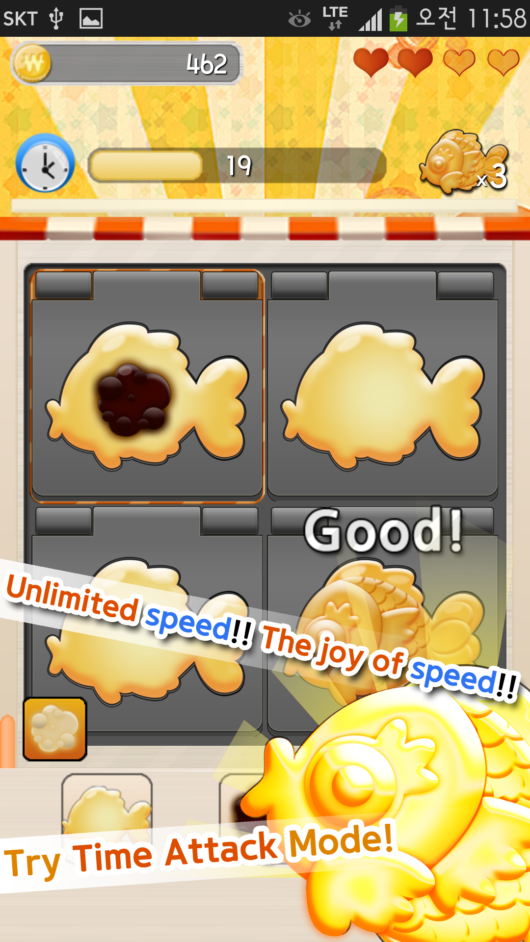 Anyone order a fish-shaped bun? Make a cute fish-shaped bun and become a wealthy merchant. More combos for a prime-time~ Try to win a crown for the best fish-shaped bun baker! ◆ 2 types of Game mode Normal Mode – Sell a hot fish-shaped bun to a customer. Time attack Mode – Enjoy speed