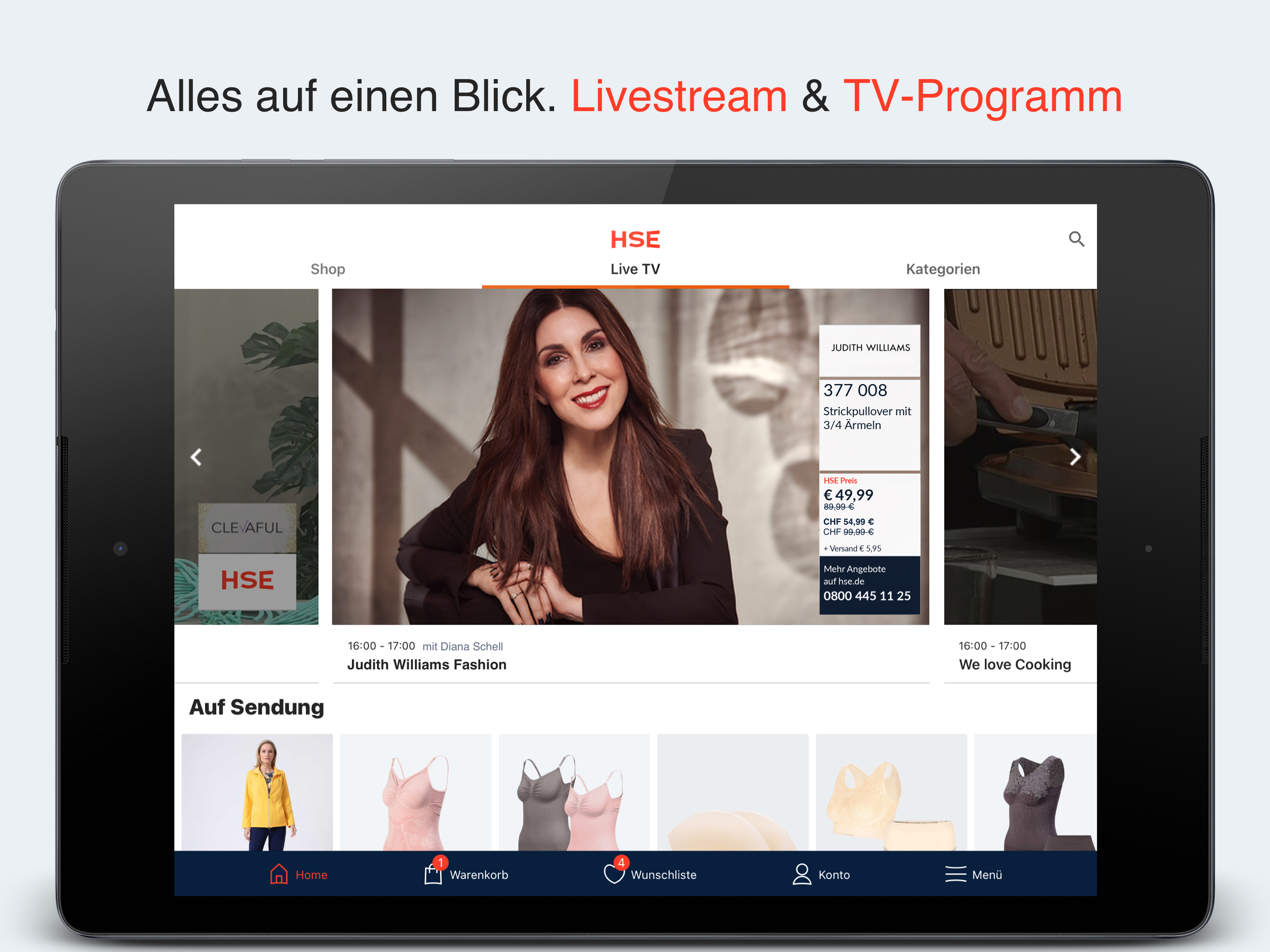 EXPERIENCE our TV shows Thanks to the live stream, you won't miss a single TV show, whether it's on HSE, HSE Extra or HSE Trend. And best of all: you can use the app to shop whatever you're watching on TV. Our TV program always tells you which programs are currently on and informs you about your favorite programs.