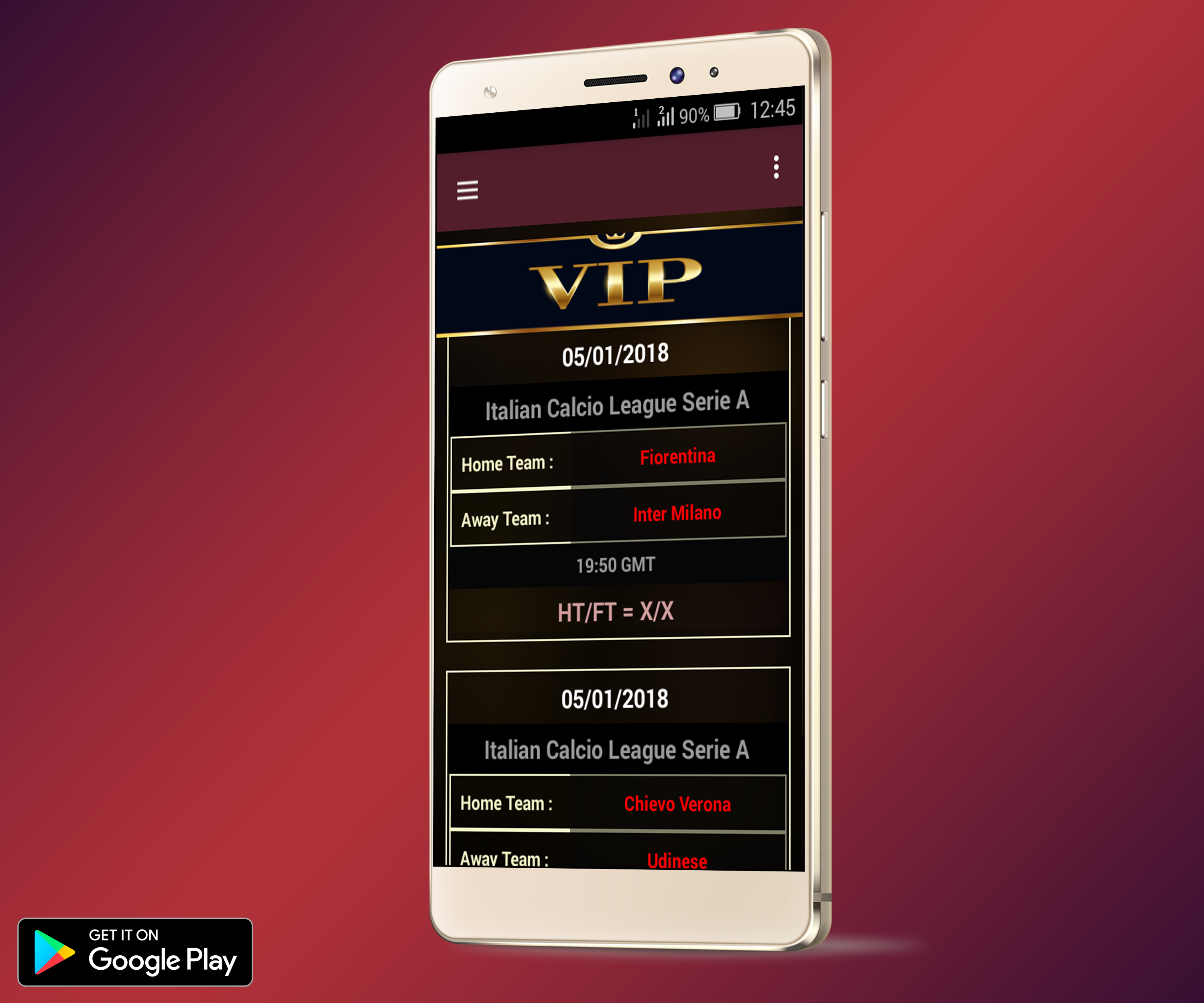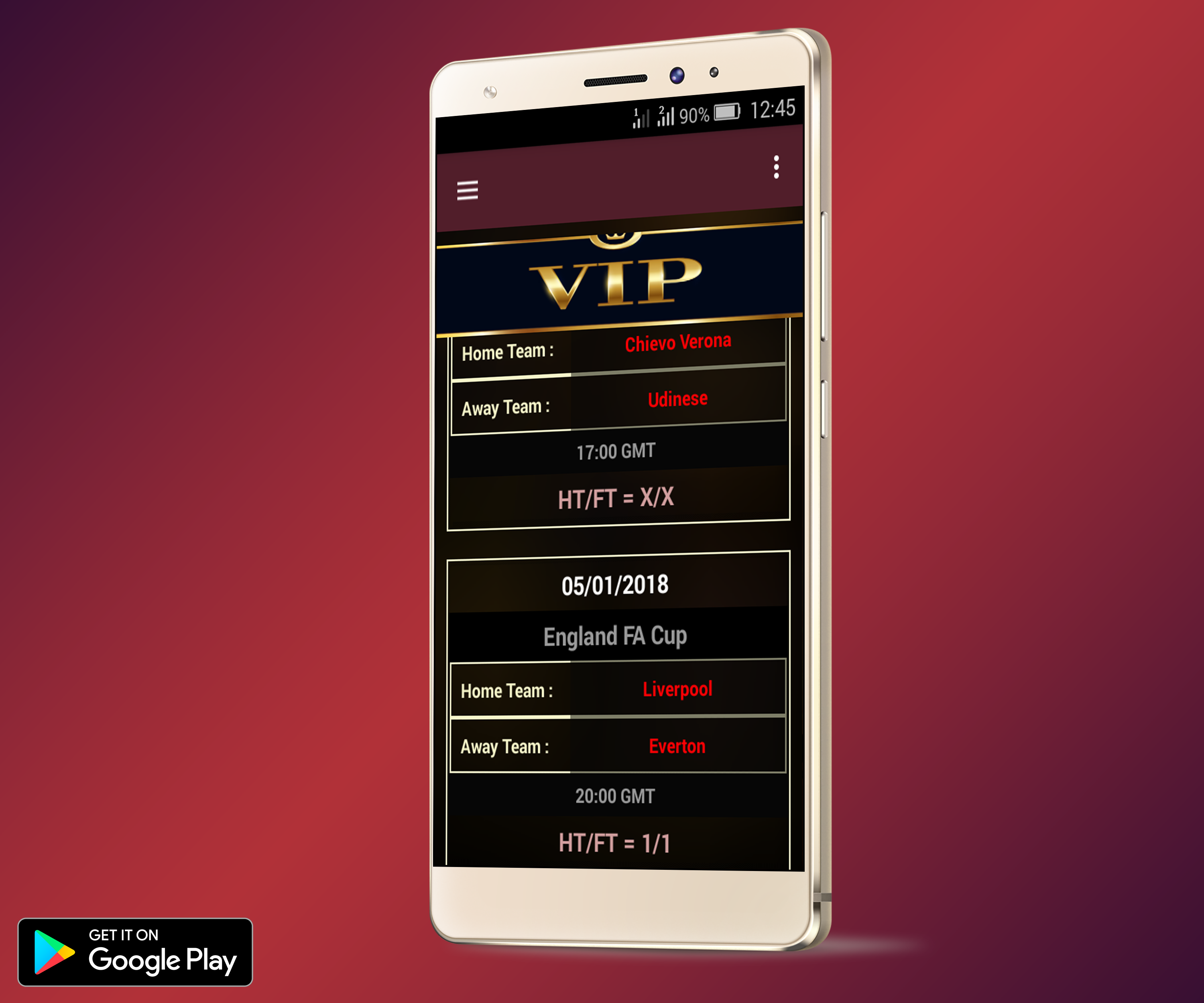 HT/FT Fixed Matches provides you with well analyzed accurate odds for your betting experience.if you want to win 90% rate we can do that for you.Best betting tips or betting win tips or fixed match program forget them. Make a new experience Ht Ft,. We can not say there is no fixed matches tips arround. Someones say that we know fixed matches tips but we can not say this. We are good analysers. Betting tips is very important like bet prediction tips and all of them you can reach in app. HT/FT 101% FIXED are very hard also some people say fixed matches ht ft Ht Ft, 100 like bet free tips. Bet tips football and bet tips basketball are very valuable and most of them can be mistake for some people.Fixed Matches, Fixed Match 100% Sure, Free Fixed Matches, Fixed Matches 100%, Sure Fixed Matches, Ht Ft,Ht Ft,Ht Ft fixed, 2/1 1/2, Soccer Predictions, Football Best Tip1x2.We provide the best in the football world of betting,try this app out for a return on your stake.We provide the following daily Tips The best app that provides you with fixed odds for your day to day football betting.Give this app a try and see your betting profits change from normal to abnormal We offer this FREE TIPS FIXED HT/FT. Our HT/FT 100% Betting Tips app favorited by whole World countries is now under your service as free of charge. We continue to bring in with Daily new football betting tips. You will win through high winning percentage betting tips Ht Ft,Ht Ft,. All betting tips are specially selecting and analyzing. Daily ht ft Picks, most reliable and most high success rate ht ft betting tips shared in our free app. Everyday Football prediction or soccer prediction HT/FT occured in program and we check them after that some predictions are nearly %99 and we share with you.You can compare tips and bets in app and you can also take fixed tips. Vip Betting Tips app gives users : * HT Under 1.5 TIPS Become Sure Single Tips * Daily ticket (combo ticket, with an odd around 2) * Daily matches (best available odds) * Daily new free * Daily HT FT Betting tips * Notification service (subscribe/unsubscribe options) * All betting tips are completely FREE * FootBall news.. * Win on Live betting * 100% Success * High Odds * Football and Soccer Tips and Predictions * Clean and fresh interfaces * Sending Notification After Added New Tips * Easy to use interface * HT/FT Fixed Matches * Instant Access Free To Our Application Betting TIPS * All Tips Update Before 12AM - GMT Everyday * 98% Strike Rate! (100% Verified) * Daily Treble tips * Daily Double tips * BTTS & Win tips * HT/FT Fixed Matches * Both Teams to Score tips * Over 2.5 - Under 2.5 Goals tips Application Fixed Matches Pro, Soccer Predictions is in Germany, Spain, England, Italy, France, Turkey, Belgium, Portugal, Austria, Denmark, Scotland, Russia, Ukraine, Greece, Argentina, Romania, Brazil, Poland, Ireland, Japan , The Netherlands, Switzerland, Sweden, Norway, the Czech Republic, Croatia and many other countries are published.
