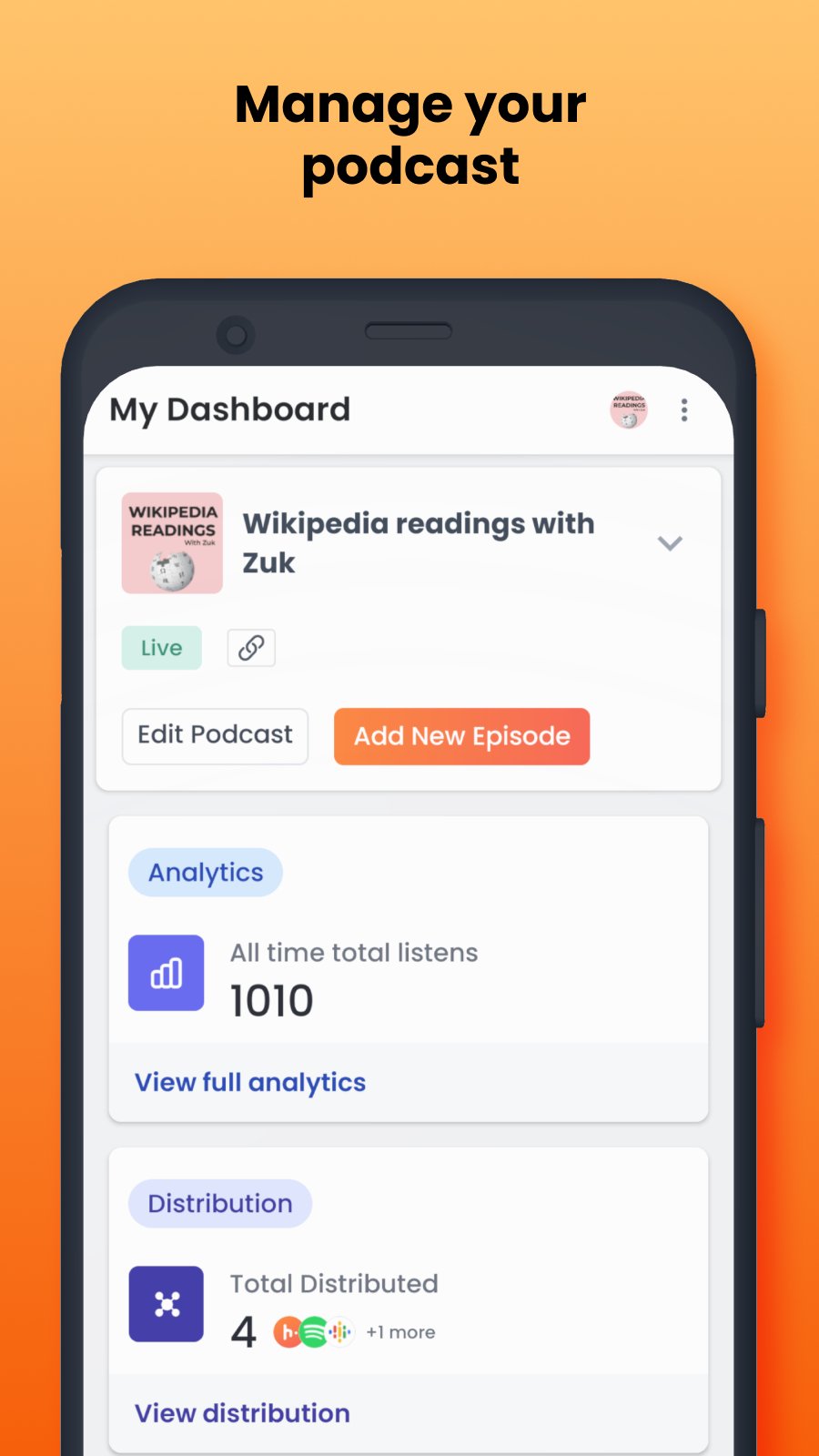 Hubhopper is your free podcast creation and discovery platform in one all-in-one podcast platform. Create, host and distribute your podcast to global listening platforms and discover new podcast shows to tune into. New to podcasting? No problem, Hubhopper is the easiest way to create and distribute your podcast like a pro, letting you carry the podcasting world in your pocket. POWERFUL AND EASY PODCAST CREATION TOOLS 🎙: Record and edit your episodes anywhere. • Record, upload and crop your audio files • Add background scores & sound effects from our built-in audio library • Visualize audio segments to arrange and merge into an episode • Schedule episode releases • Store episodes as drafts for future work PODCAST HOSTING & DISTRIBUTION 🎧: Easy podcast management software • Host unlimited podcasts • Edit podcast description and details • Generate RSS feed for your podcast • One-click distribution to podcast listening platforms like Spotify, Apple Podcasts, JioSaavn, Gaana, Amazon Music, Wynk Music, TuneIn, and many more! • Podcast distribution to OEMs and OTT platforms • Store all your podcast links in one place 📲 • Podcast embedded player • Podcast microsite tool • AI transcription of episodes • AI Show notes generation DETAILED DATA ANALYTICS 📊: Get detailed data to track the performance of your podcast • Analyze podcast & episode performance • Analyze podcast streams & listens • Download analytical data • Learn at what time, day & where are listeners tuning in to your podcasts • Device data break-up • Listener location data • Operating Systems data break-up • Podcast Platforms data break-up • Add 3rd party data tracking prefix PRO FEATURES FOR PODCASTERS: Get Pro & get more for your podcast for a low monthly cost • Access to advanced data analytics • Access to custom embedded players • Add your website on your RSS feed • Create Unlimited Private Podcasts • Remove the watermark from the podcast cover art • Host unlimited podcasts • Unlimited episode scheduling • Access to premium features & services • Access to AI assistance with episode transcription & shownotes • Publish more episodes • Create and manage your team PREMIUM PODCAST LISTENING EXPERIENCE🎙🎧 : Tune into a million hours of content from trending categories like horror, crime, education, technology, business, and news in 15+ languages including English, Hindi, Tamil, Telugu, Kannada, and more • Create your own playlist. Make a playlist for every mood with your favorite episodes • Download the episodes of your choice and listen offline! • Sleep timer; Fall asleep listening to your favorite podcast. Set a time sleeper • Playback speed; Is Podcast too slow? Adjust the playback speed up to 2x based on your preference • Subscribe and get notified; Subscribe to a podcast and get the latest updates. Get notified every time there’s a new episode • Message the creator and connect with the host of your favorite podcast • Discover, browse, and find shows across both global and Indian languages! • Switch between light and dark themes depending on your mood • Hit the ‘Love’ button on podcast episodes and comment to show love to the creators