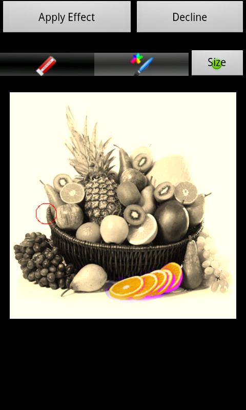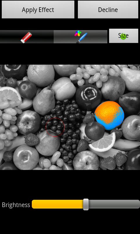 Create and retouch your photo with lots of effects. Add effect layers to camera taken photos or chosen Gallery pictures in editing mode. Create beautiful image much easier with this free ultimate tool! Features. - Take a camera shot and retouch the picture - Retouch picture by selecting picture from Gallery or from taken picture. - Hue/Saturate color effect change on separate color (Master/Red/Yellow/Green/Cyan/Blue/Magenta) - Several effects available. GrayScale/Black and White / Sepia / Contrast / Brightness / Negative and more. - Add multiple effect in single editing time with layer style effects. - Erase or add effect on any part in picture - Built-in gallery - Sharing picture to Facebook/Google+ and more. Tags: photo editting,photo effect,hue,camera,effect,color,color effect,colour effects,fx,saturate,black white,sepia,negative,contrast,brightness,camera fx,color fx,retouch,recolor,colorize,layer