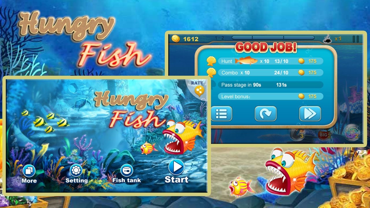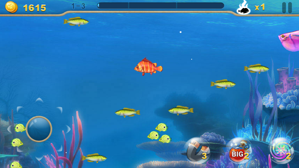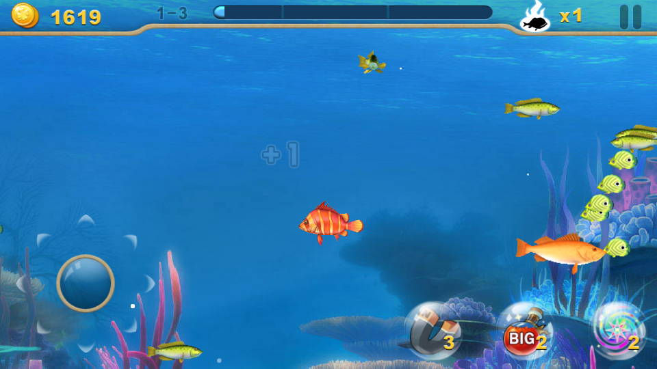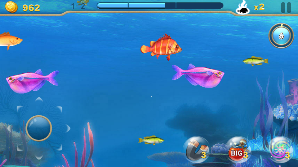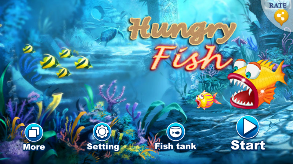 Enjoy the game Big Fish Eat Small Fish for everyone The play is very simple,that eat smaller fish than yourself so that you grow up as quickly as possible,it becomes more and more powerful, can eat more different kinds and sizes of fish. when reached scores,you can pass and enter the next level. The process needs to avoid fish larger than their own,to avoid being eaten. You can also arrested various prizes,accelerating the score,you can upgrade faster. How To Play: - Eat the smaller fishes to grow up. - Get away from the bigger fish or they will eat you. Feature: - Free and forever to use. - So easy for kids to play. - Graphics adorable with cute fishes. - Effects animation smooth and rich sound. Let's enjoy and have a relaxing moment with Hungry Fish!