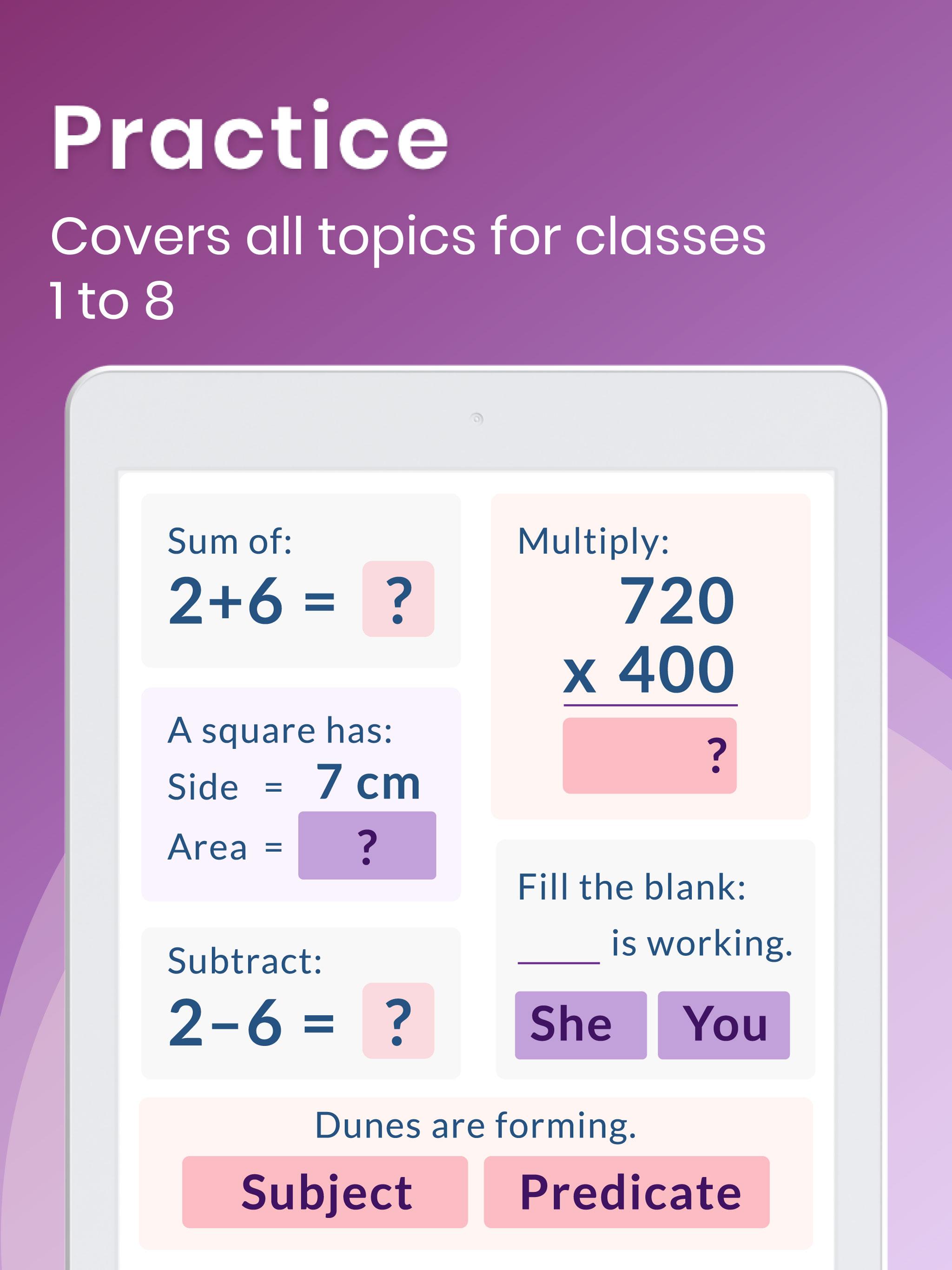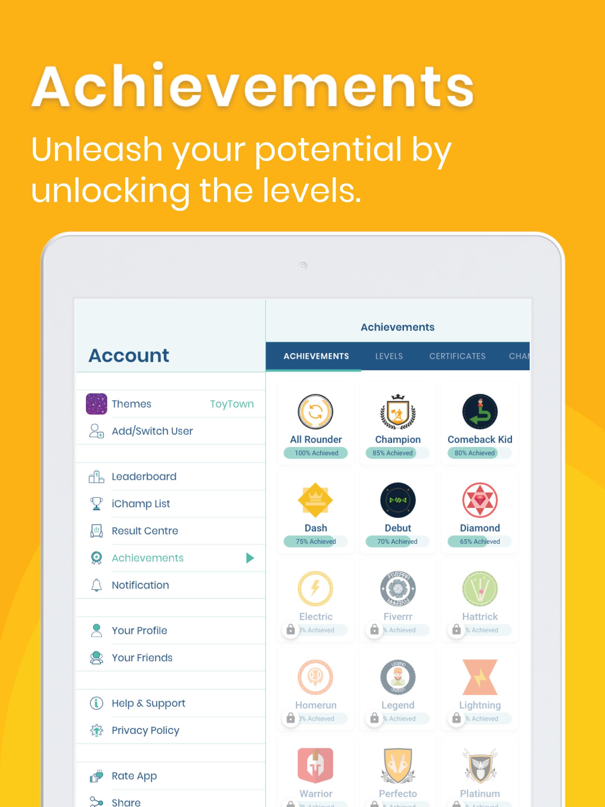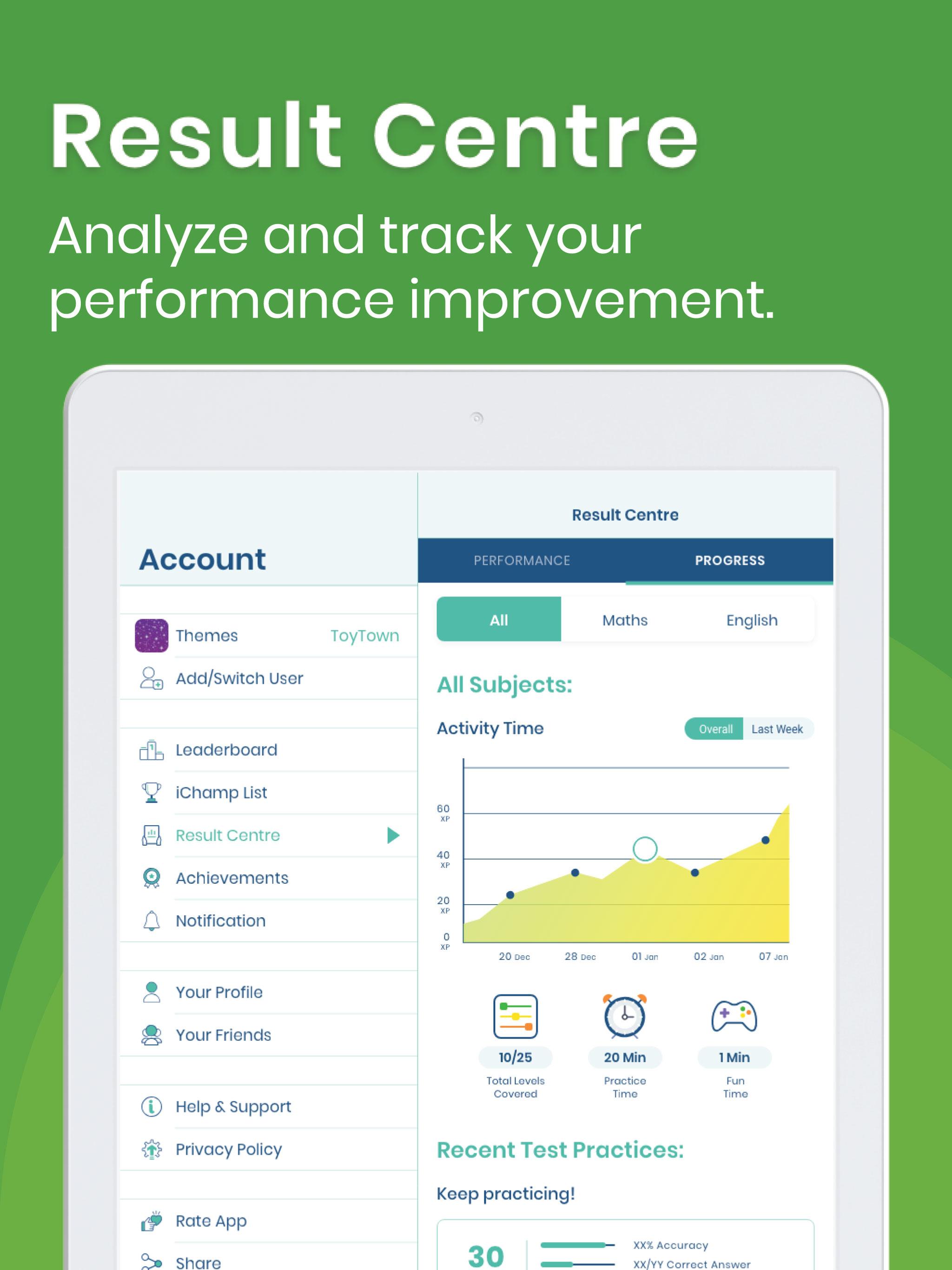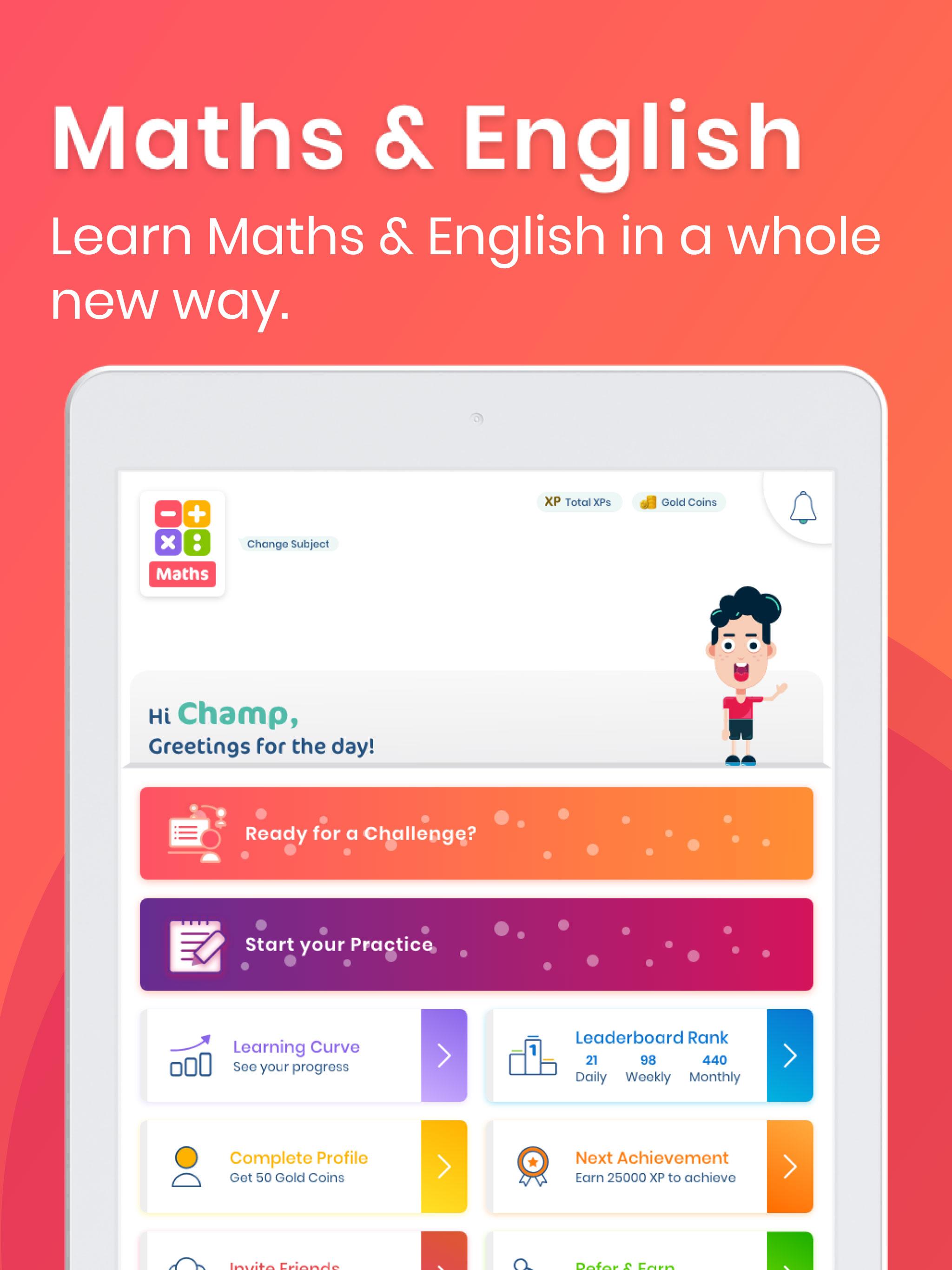 Multiplayer Practise Platform for Mathematics Class 1 to 8 and English & Hindi for Class 1 to 4. . Applicable for students of CBSE and ICSE Boards. . iChamp provides students with multiple short duration quizzes and tests. Students are rewarded with gifts for solving questions. iChamp is a 100% FREE TO USE Maths, English & Hindi Practise and Testing App with fun and game features. It lets a child take unlimited short duration tests across various topics of CBSE and ICSE curriculum. iChamp has topics mapped to each class based on the ideal learning pattern that a child should follow, making it relevant for students across CBSE, ICSE and other State Boards. iChamp testing app, through constant Maths, English & Hindi practice, makes learning and understanding fun and easy for the kids. It enables a student to test and benchmark against his/her peer group across the country through class specific Leaderboards based on the number of tests and Points scored by the child. Live Challenges: Students can take challenges against their friends, peers or against computers. . Tests are of very short duration focusing only on the core Mathematical concepts that a student should know in each class. Students can take unlimited number of tests, absolutely Free. Practice Tests: When not taking a test, student can practise their Mathematical concept application skills by solving questions in a particular topic. There are various types and formats of questions that can be solved across different difficulty levels. Tournaments: Live Tournaments where students compete with 1000s of kids at the same time across various rounds answering questions from different subjects. It is online testing platform giving live results and analysis. Reward Zone: Students can redeem points earned while solving questions in the Reward Zone that has stationery items, bags, personalised mugs and dozens of other gift articles. These Gifts are sent to the student’s home absolutely FREE of Cost. Worksheets: Want to practise offline as well. Just log onto iChamp and download hundreds of exam ready worksheets that you can print and practise. We have worksheets for Maths, English and Hindi. Reports: iChamp reports focus on improving the test taking temperament of the children. The app identifies the common silly mistakes a child makes and helps them cut down on these mistakes. iChamp’s adaptive learning system delivers far reaching results within 2-3 months. Leader boards: The iChamp leader boards ensure social endorsement and bench marking of students across the country. There are daily, weekly and monthly leader boards for every class with top students getting trophies and certificates Certificates, Trophies & Achievements: Students get various certificates, trophies and achievements as they solve questions. . Designed to motivate the students, these certificate and trophies are couriered to the student’s home.