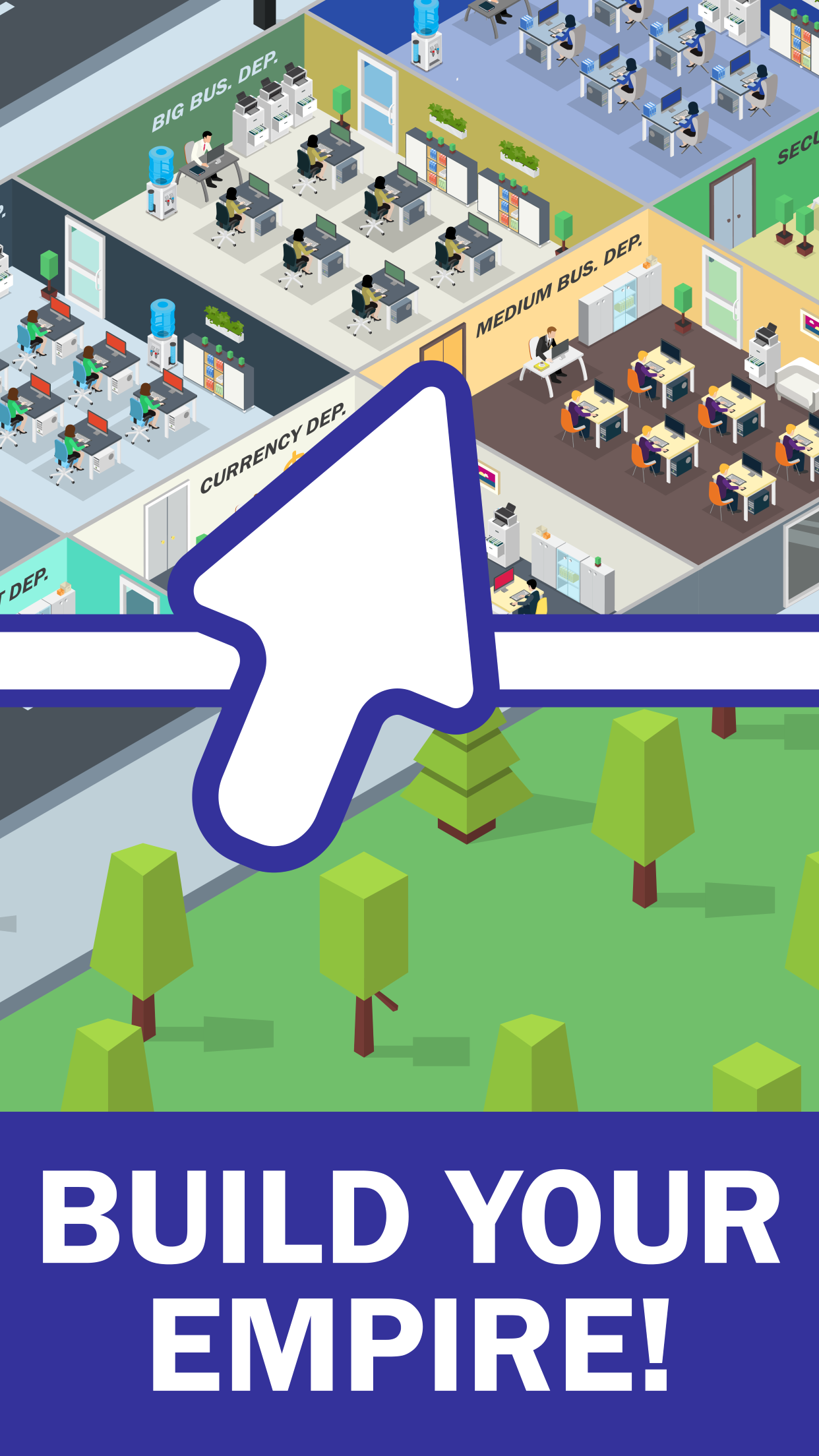 Earn even when you are out of the game! Start with the credit Department, and then start accepting currency, working with different types of businesses, insuring them, serving VIP clients and much more! Adapt to all types of clients. Open new departments and upgrade them. Don't forget that every Department has a Manager in addition to the employees, who can also be improved! Come up with your own business tactics and customers will appreciate it. If you like clicker games where you build your business, then you will enjoy running your Bank. Idle Bank Office — a simple game that will allow you to manage your business, opening all new departments and pumping them. Become true tycoon! Features: - get revenue offline; - easy and clear gameplay; - many improvements; - nice graphics; - clear interface