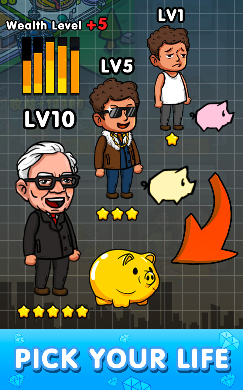 Idle Tycoon' is a hyper-casual idle simulation game, and you will be playing a tycoon yourself here. All you need is simple taps, and your industries can operate automatically, which can make you richer and richer, until you become the richest person in the world! Then you can experience too many entourage, all you hear is praise. Too many pretty girls, all you see is gorgeous bodies. Too many gold bars, my storage room can barely hold them. Too big a palace,you need to walk 5 minutes to go to a bathroom. What are you waiting for, Boss?Download 'Idle Tycoon', experience these 'painful' moments yourself. =========GAME FEATURE======== ** Manage factories, making money has never been easier** Live your life like a business tycoon, earn millions by clicking a few buttons! Recruit outstanding employees to help build and expand your business, multiply your wealth even when you're offline! ** Diverse bueiness activities, build relationship with every business celebrity** Fight battles in a global business world, compete on the wealth rank, experience intense trade wars! Hold banquet to meet new partner and form allies, become the most successful person in the world. ** Build city, expand your business empire** Build your own city by simply clicking on the screen, endless choise of shops and buildings, find your unique business blueprint. Expand city, conquer the world and even mars! ** Drill oil, compete with all players** Upgrade your oil company, attend oil industry tycoon contest, will you be the last one standing? Dear boss-man, download the game and begin your business adventure right now! If you have any questions, feedback, or suggestions, please feel free to contact us! Facebook:https://www.facebook.com/com.sftfn.vn