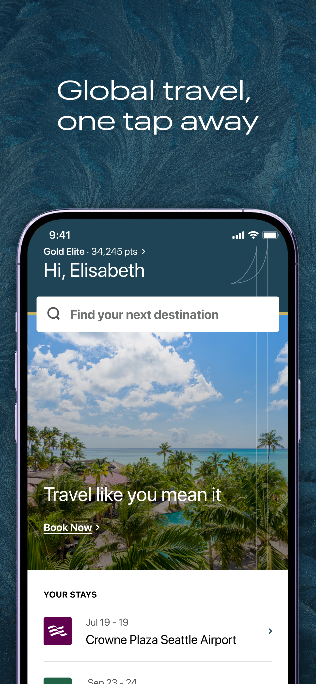 Book and earn rewards at 6,800+ destinations across 20 hotel brands worldwide with the IHG One Rewards mobile app — voted “Best in Travel” by The Webby Awards. Whether you're planning a family vacation, a business trip, or a luxury getaway, the IHG One Rewards app makes hotel booking easy and rewarding with brands that include Holiday Inn®, InterContinental®, and Kimpton®. Top features: - Quickly search and book hotels worldwide - Find hotel deals and exclusive member rates - Redeem rewards for free hotel nights - View, modify, or cancel reservations - Access hotel amenities, directions, and parking info - Explore nearby restaurants and attractions Get rewarded every time you book an IHG hotel Earn IHG One Rewards points on every qualifying hotel stay. Use Points & Cash, unlock Milestone Rewards like food and beverage perks or room upgrades, and track your progress in real time. Travel with confidence Enjoy flexible booking options and free cancellation on most rates. Get notified about travel news, chat with customer service, and access your digital rewards card via Google Wallet. Download the IHG One Rewards app today to start earning rewards and booking hotels with ease. -Images are illustrative and may not reflect what is live in the app -Prices are illustrative and may not reflect what is live in the app Our brands: Holiday Inn® Holiday Inn Express® Holiday Inn Club Vacations® Holiday Inn Resort® InterContinental® Hotels & Resorts Six Senses® Hotels, Resorts & Spas Regent® Hotels & Resorts Kimpton® Hotels & Restaurants voco® Hotels Hotel Indigo® Ruby Hotels® EVEN® Hotels HUALUXE® Hotels & Resorts Crowne Plaza® Hotels & Resorts Iberostar Beachfront Resorts Garner™ Avid® Hotels Staybridge Suites® Atwell Suites™ Vignette™ Collection Candlewood Suites®