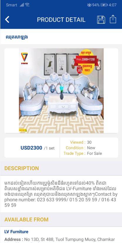With Real Estates, customers can browse for properties for rent/sale in Phnom Penh. Customers can compare between properties. Especially, customers can directly contact with sellers, renters, or buyers.