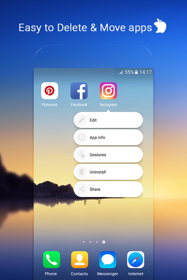 iLauncher Make your phone become Phone 8, Phone X with style OS 11 with iLauncher If you are searching for theme for New Phone X which changes your android operating system to phone style icons & phone launcher, here we have theme for Phone 7, Phone X live Wallpapers switch to OS.You can personalize and customize the phone with free phoone backgrounds free. iLauncher - Phone 8 theme for new phone fits ipad phone as well. iLauncher Theme for phone 7 and phone 8 launcher is an excellent app for you to experience the new phone x UI on your Android devices. Theme for New Phone X with Os 10 Wallpapers will make your Android phone look like a real New Phone 2017. We are proud to made Os 11 theme and specially phone backgrounds free for you! Install Free Theme for Phone X switch to os can make the phone to look like the real Phone 8. Stylish launcher is inspired by Phone 8 plus, Phone 10, how amazing this upgrade Phone fits Android new phone The Phone launcher gives your new phone an unique Phone style Beside Theme live Wallpapers for Phone X, we also provide theme for oppo F3/A37/a57, theme for vivo V5s/V5 plus, theme for Huawei P10 Lite/P10 Plus, theme for galaxy J2/J2 Ace/S8/S8+ and some other hot and stylish smartphone themes. And we will keep working hard to provide more personalized style for you. Apply the iLauncher - Phone style icons of New phone theme interface and phone backgrounds free. Enjoy a completely new designed Os 10 theme without paying exta fees!! iLauncher feature: - iLauncher support many themes, icon packs - iLauncher is NO DRAWER, all apps listed on desktop or tidied to folder, OS10/OS11 style, simple - Tidy Icons innovative feature, help you make the desktop tidy and clean with just one click, you also have the option to put 5 days not used apps to Rarely Use folder - OS10/OS11 style icon shape, unify icons - Gestures support: iLauncher can swipe up/down, pinch in/out, multi finger, double tap, etc - iLauncher can Hide app, lock app: Protect your privacy - Many options: Customize your launcher’s icon size, grid size, font etc. - OS Search: Last used app searches including apps, contacts, etc. - OS Booster: Clear the memory to make your phone run faster - Battery saver, CPU cooler - Unread SMS, missed call notifier/counter - Support OS9, OS10 and OS11 wallpapers to choose - Double tap to turn off screen - T9 search - Desktop lock to avoid messed up - Tidy icons to make all app icons organized - Support lock screen and Phone 6, Phone 6s theme - Booster, Cleaner - Storage manager - Torch - Quick switcher, i os10 style - OS11 screen lock Hope you will like iLauncher for Phone 8 & Phone 8 Plus and Phone X, if you like, please rate us and recommend iLauncher to your friends, Thanks.