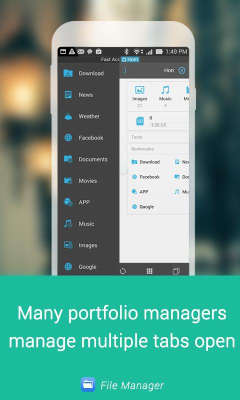 For computer users, the management of applications, files, folders is easy and simple, but with the opposite android. Manager's default file android very difficult to manipulate. You needed a file manager application easily? iManager - File Manager is file management application easy and simple as possible. The software can meet the needs of document management, applications, files like on your computer. Some features of the app: - Check the memory capacity and memory. - Manage the downloaded file. - Press and hold the file or folder to copy, move, packing, offline, send, or delete information - Unpack rar, zip - Manage files by category: photos, music, movies, books, apps ... - Manage your files over a LAN, connected devices are accessing the same wifi - Manage FTP server, hosting - Transfer files via bluetooth with other applications. - Connect to your computer via wifi. - Multi-language, supports almost all countries in the world - Clear cache on exit - Read more different materials, read chm tail, doc, docx, epub, FB2, htm, html, mobi, pdf, ppt, txt, xls, xlsx ... - Set a password for the file manager. - Backup to install when installing the machine or reinstall the application.