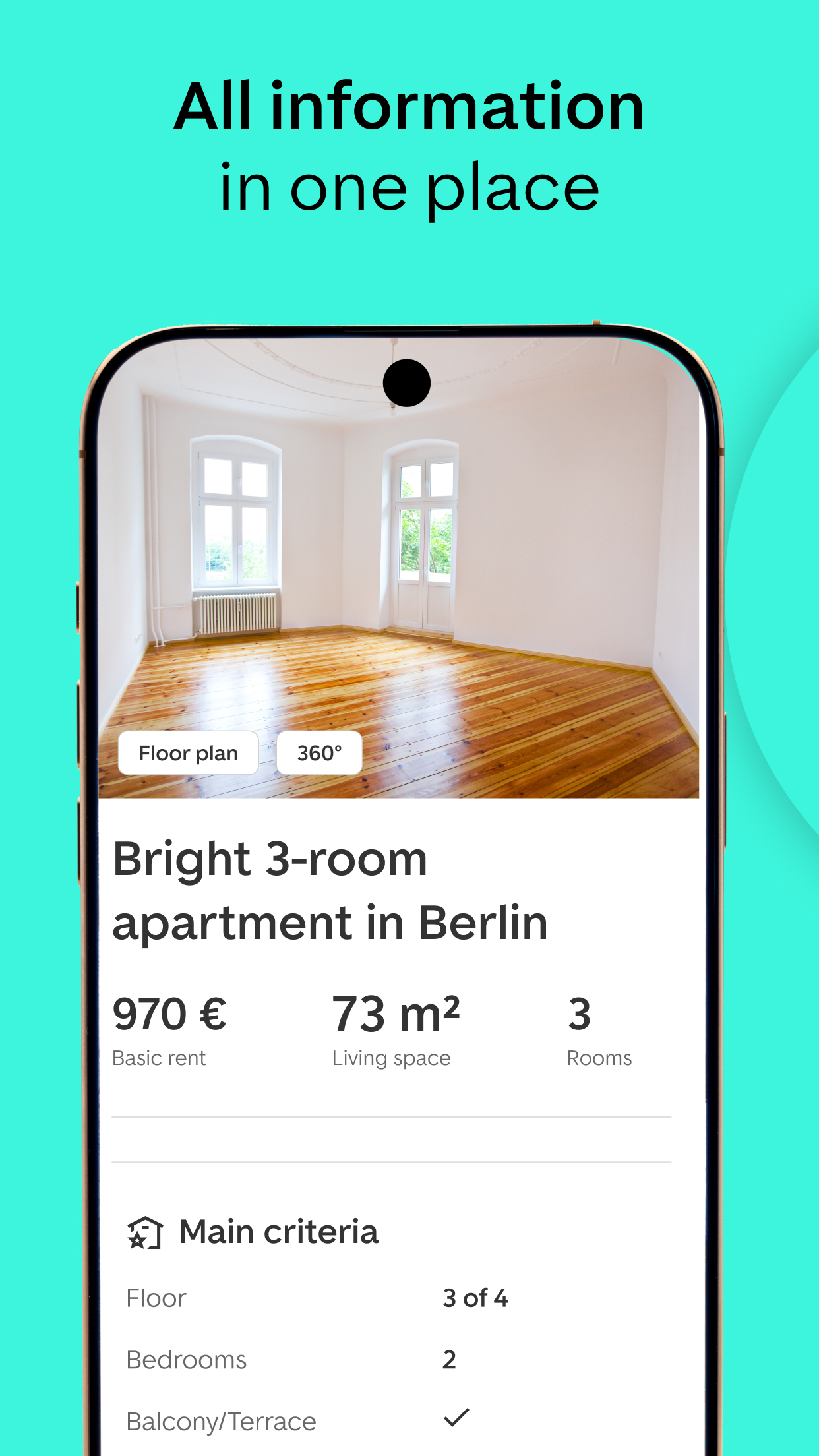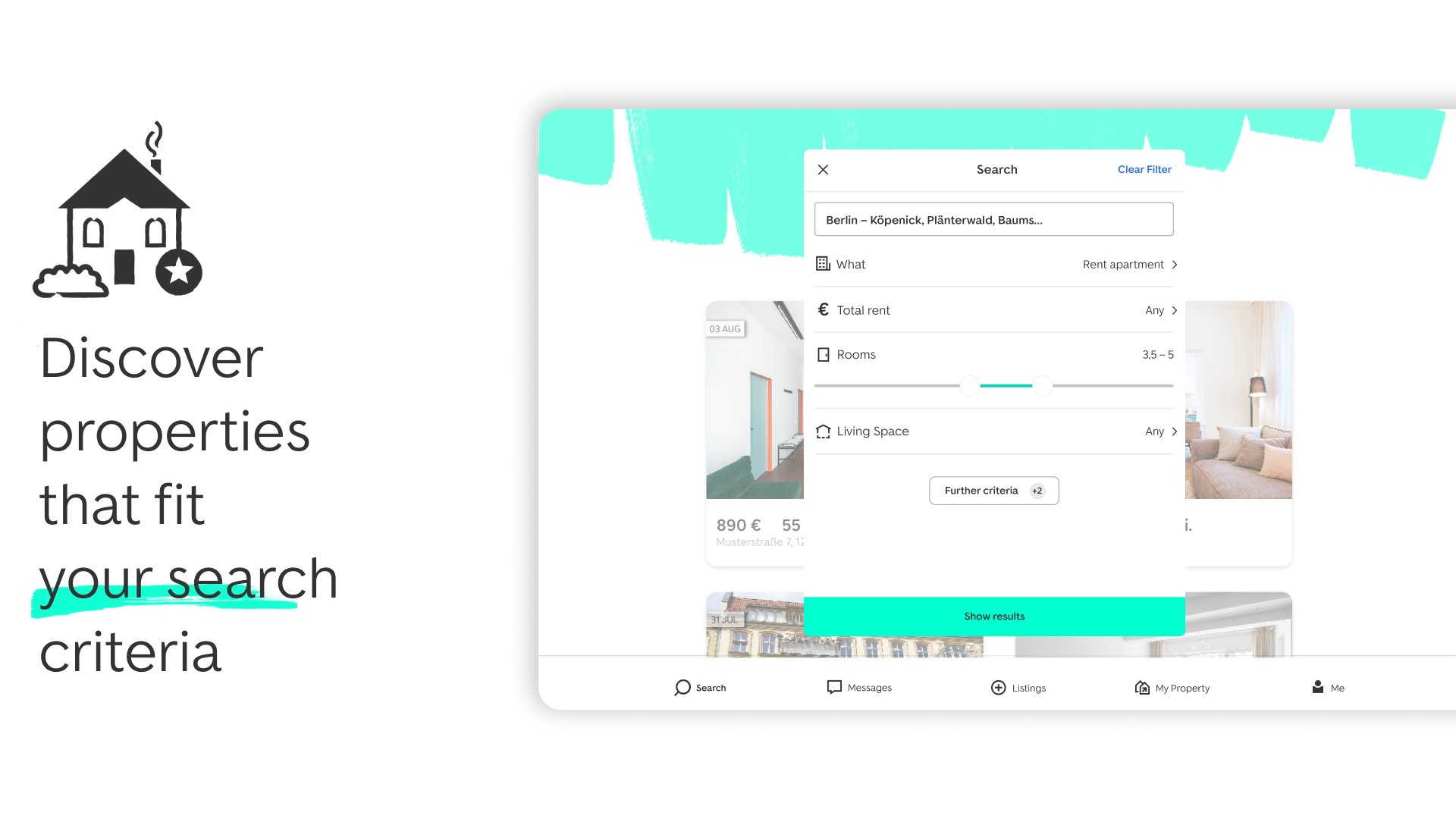 🔎 Filter in detail: Use numerous filter options such as size, number of rooms, price. You can also use your own criteria for your apartment search.