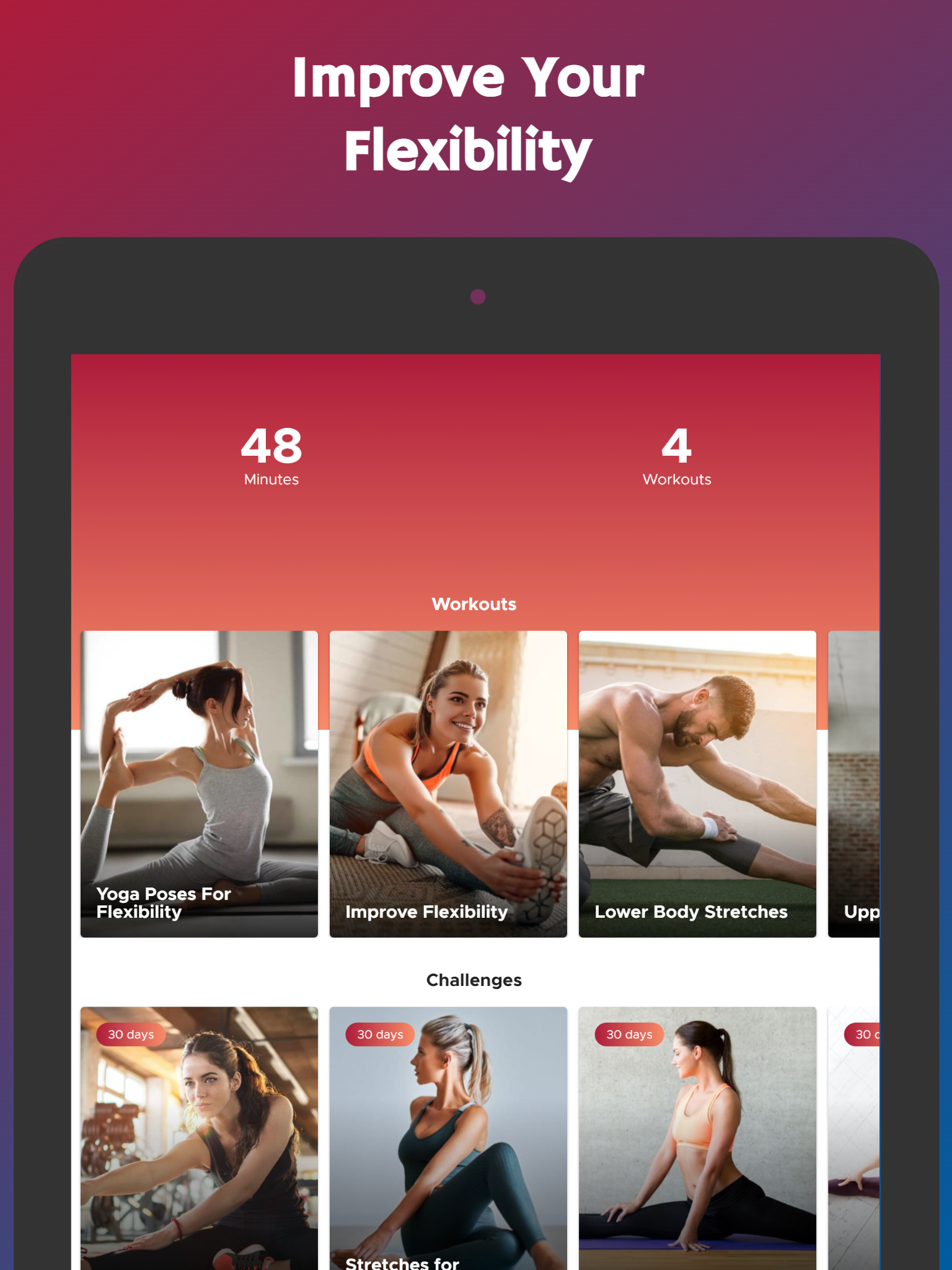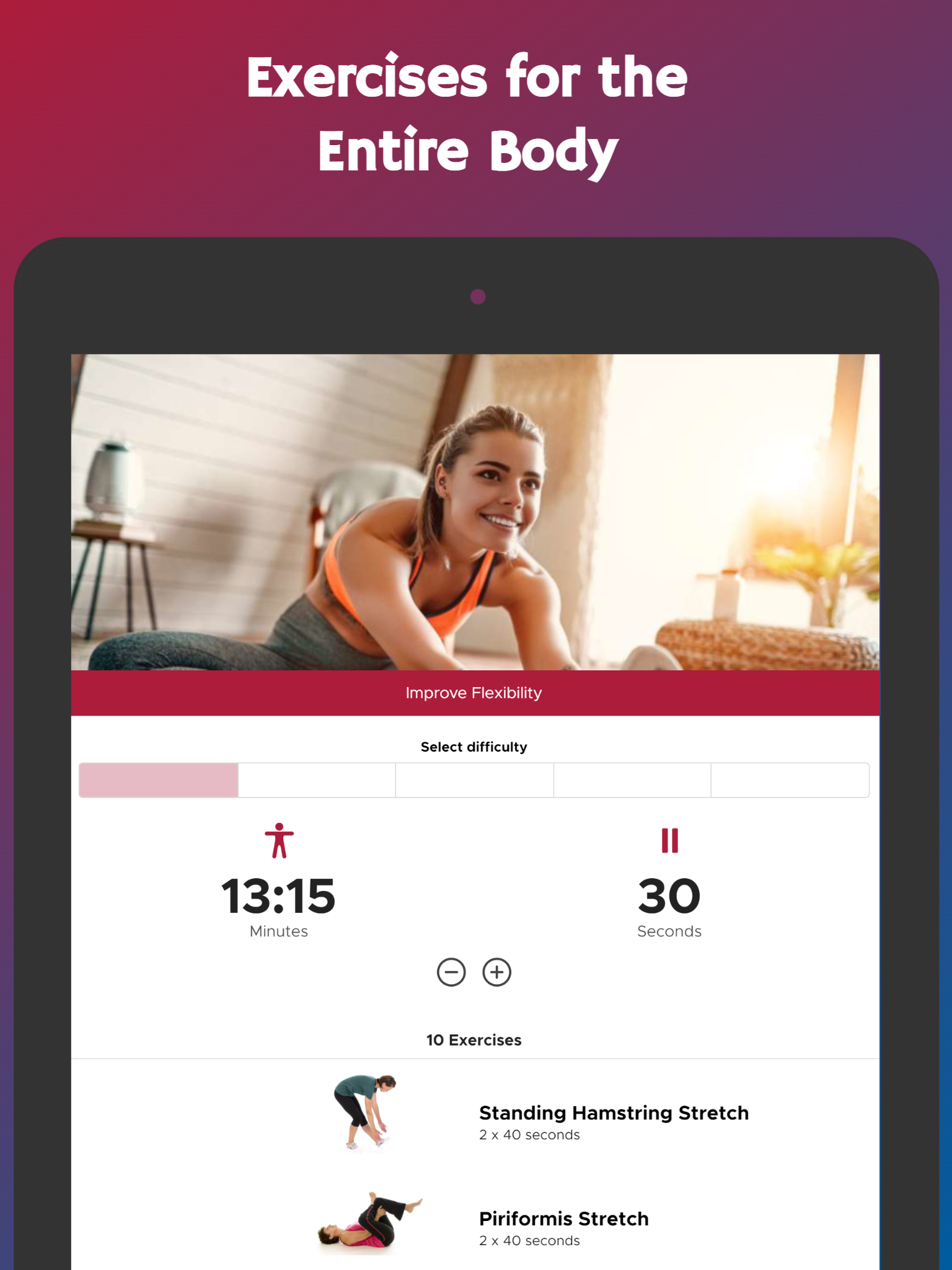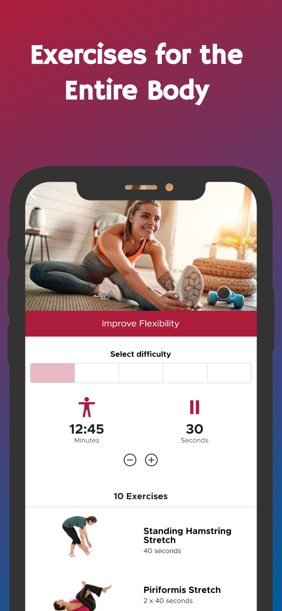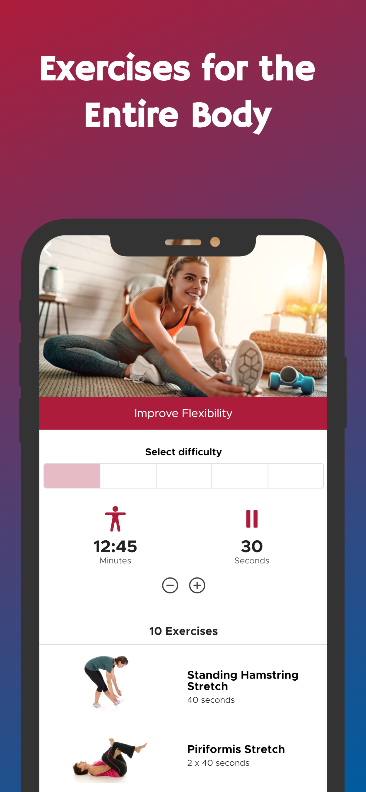 Workout (Package Name: com.stefanroobol.flexibility) is developed by Steveloper and the latest version of Improve Flexibility in 30 Days 1.0 was updated on February 21, 2026. Improve Flexibility in 30 Days is in the category of Health & Fitness. You can check all apps from the developer of Improve Flexibility in 30 Days. Currently this app is for free. This app can be downloaded on Android 5.0+ on APKFab or Google Play. All APK/XAPK files on APKFab.com are original and 100% safe with fast download.