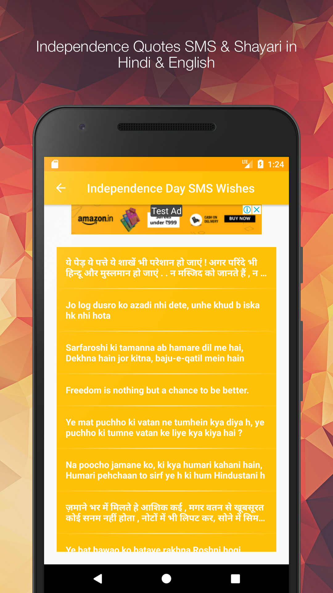 This App is for all the patriotic citizens of India who would like to Share the on independence day messages shayari and quotes, understand what