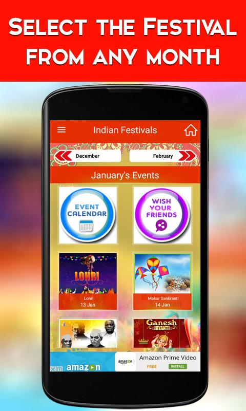 Indian Festivals (Package Name: com.shemaroo.festivalapp) is developed by CANOPY ENTERTAINMENT PRIVATE LIMITED and the latest version of Indian Festivals 1.20 was updated on August 24, 2017. Indian Festivals is in the category of Entertainment. You can check all apps from the developer of Indian Festivals. Currently this app is for free. This app can be downloaded on Android 4.0.3+ on APKFab or Google Play. All APK/XAPK files on APKFab.com are original and 100% safe with fast download.