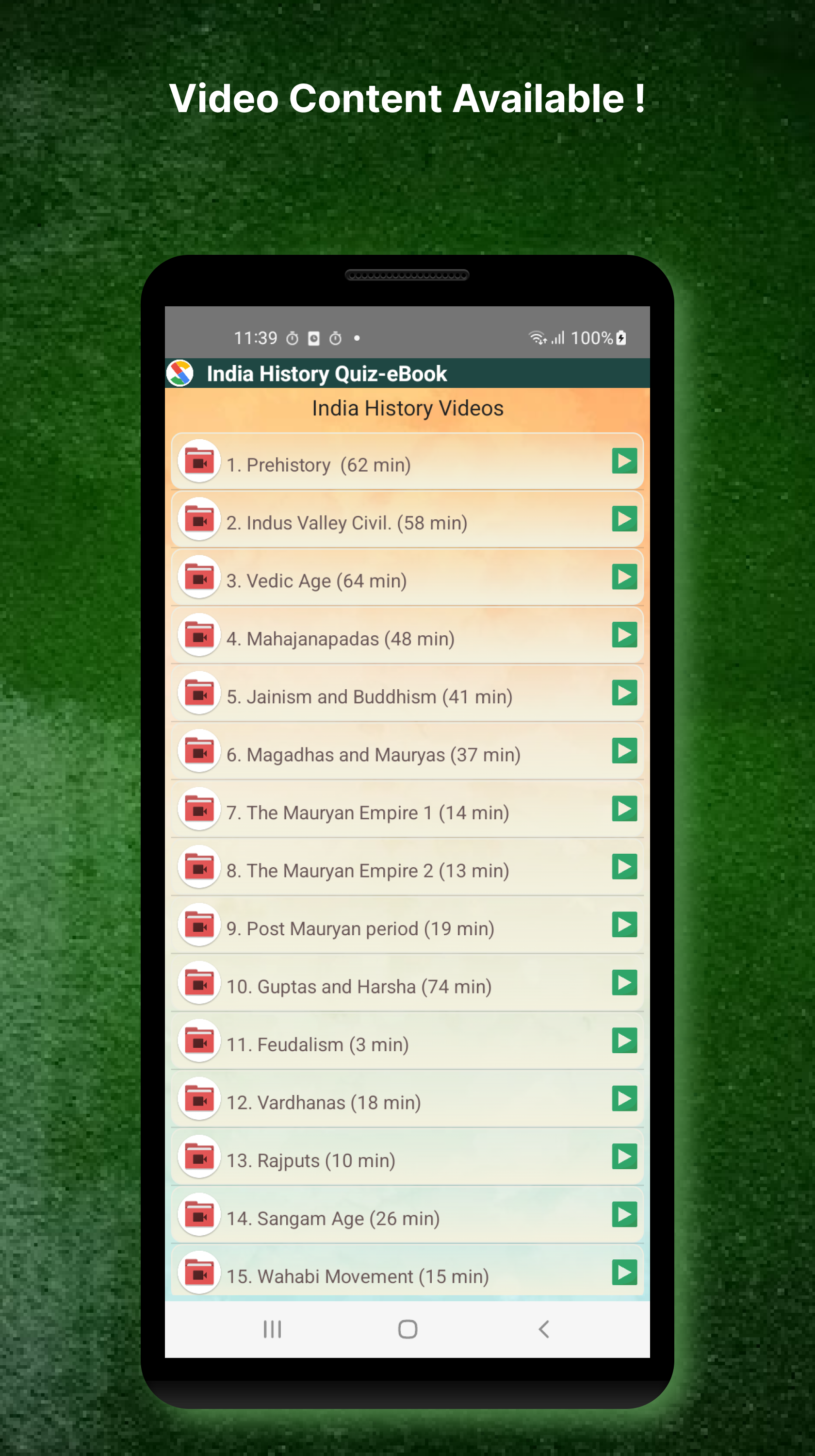 Indian History Quiz, eBook (Package Name: com.sanaedutech.indiahistory) is developed by Sana Edutech and the latest version of Indian History Quiz & eBook Cat.811 was updated on August 14, 2025. Indian History Quiz & eBook is in the category of Education. You can check all apps from the developer of Indian History Quiz & eBook and find 16 alternative apps to Indian History Quiz & eBook on Android. Currently this app is for free. This app can be downloaded on Android 7.0+ on APKFab or Google Play. All APK/XAPK files on APKFab.com are original and 100% safe with fast download.