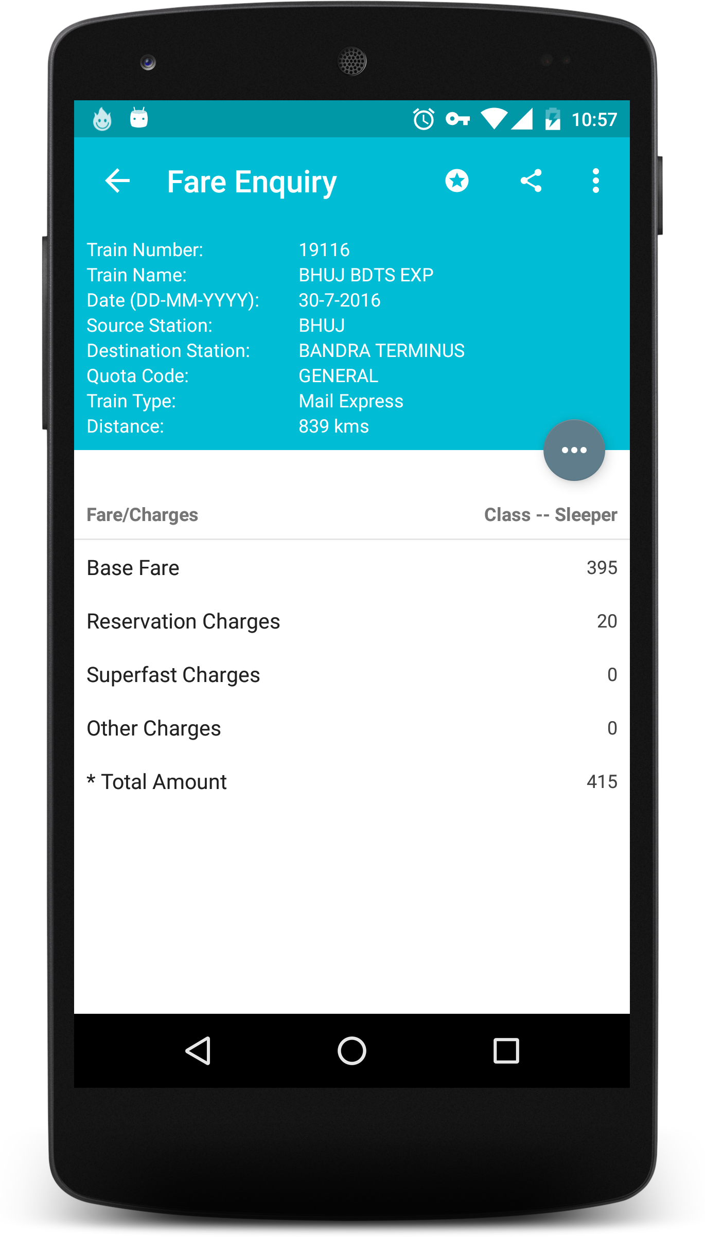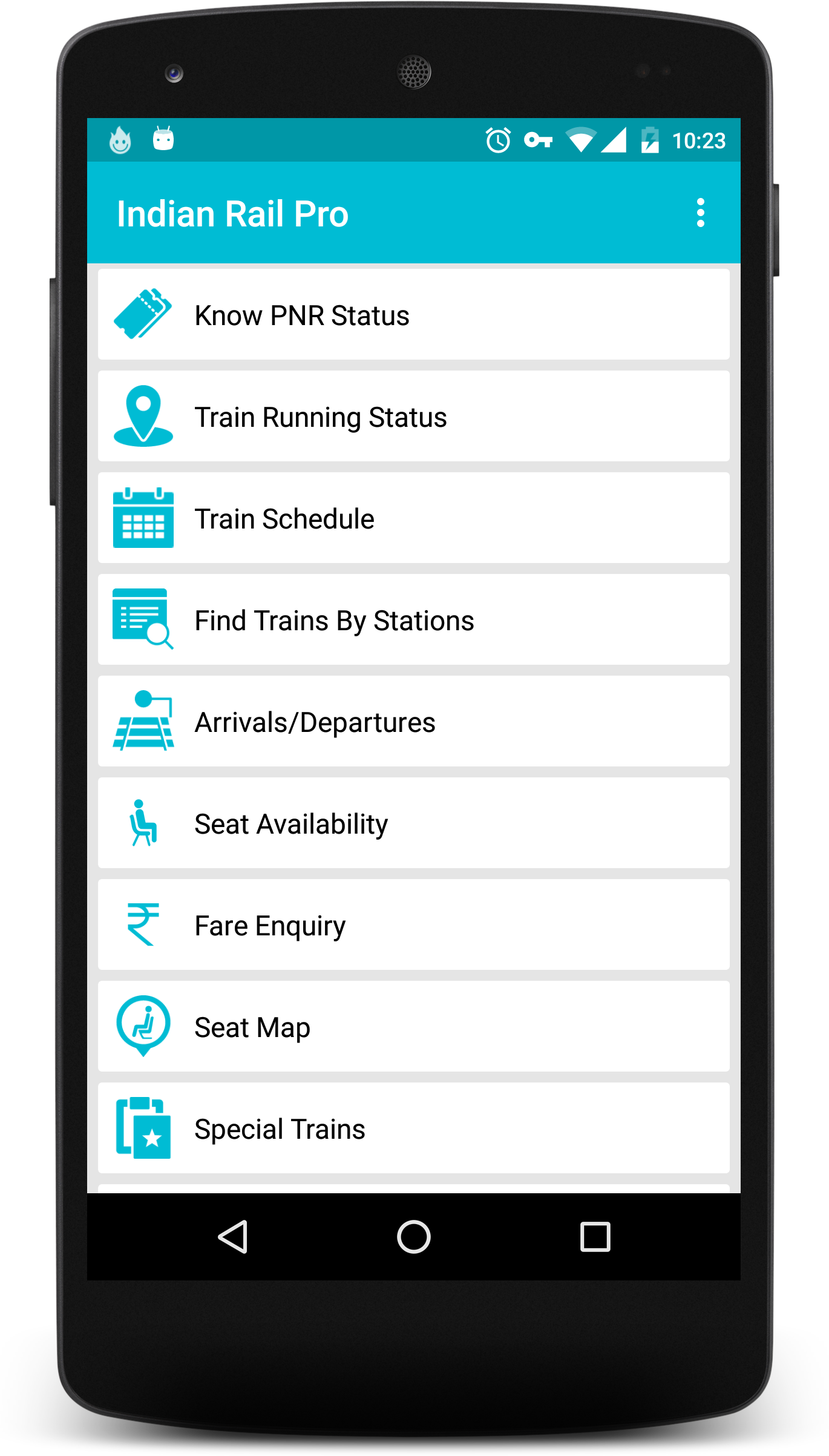 Indian Rail Info App is free android app with beautiful UI and quick access to Indian Railways information ANYTIME ANYWHERE. It helps to plan trips, track trains and PNR numbers.