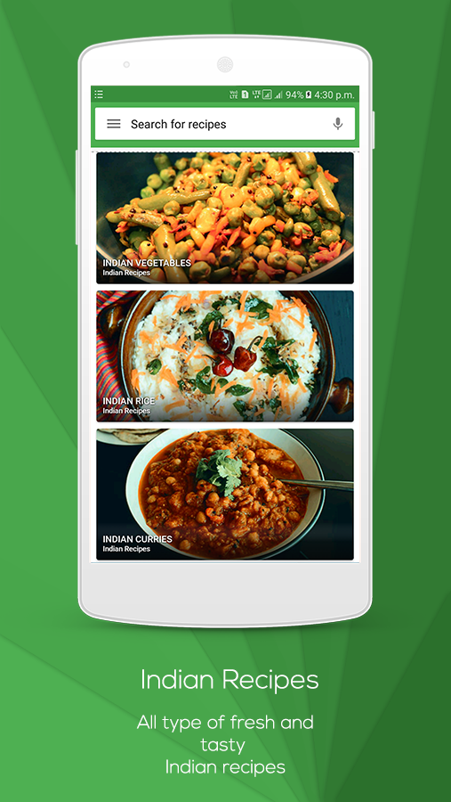 This is a completely free app which brings you variety of Indian dishes at your finger tips.People from different countries and regions always search for Indian foods. All the recipes from this cookbook are healthy and delicious one. Even kids can easily cook foods using this app. Simple, Delicious, Healthy & Easy Home Made Food Recipes for free. This app provides step by step guide for cooking dishes. Become a grocery meal planner for your family by cooking special low carb healthy recipes for you and your kids. Offline collection provides you to access your favorite recipes without internet. South and North indian recipes are the most popular among these. App includes : chutneys main dish vegetables rice curries Ramadan fish chicken bread desserts beef potatoes soups and more... Save our valuable time and cook your favorite recipes. Indian foods always use vegetables and natural oils for cooking. So most of foods and recipes are healthy.Features of this free cookbook includes : Global search Search recipes by ingredients, names, tags Shopping list Recipe preparation time Offline recipe access Favorite recipes can be stored separately Reverse recipe search Recipes can be shared to anyone by a single click Recipes are provided with their nutritional value, calories Number of servings is also provided Recipe of the moment Indian Vegetarian, Punjabi Recipes, South , Guajarati, Moghlai. Tea Time Snacks is an important part of the Culture. All countries including America, China, Mexico, Germany, Australia, Brazil etc have many Indian restaurants. South dishes like idili,vada,sambar,ghee,masala dosa,ghee roast etc are very tasty. Kerala recipes are more spicy than other recipes. Traditional rice and fish curry or chicken curry are more delicious. We provide you variety of tasty recipes which are completely free. Happy Cooking ahead !!