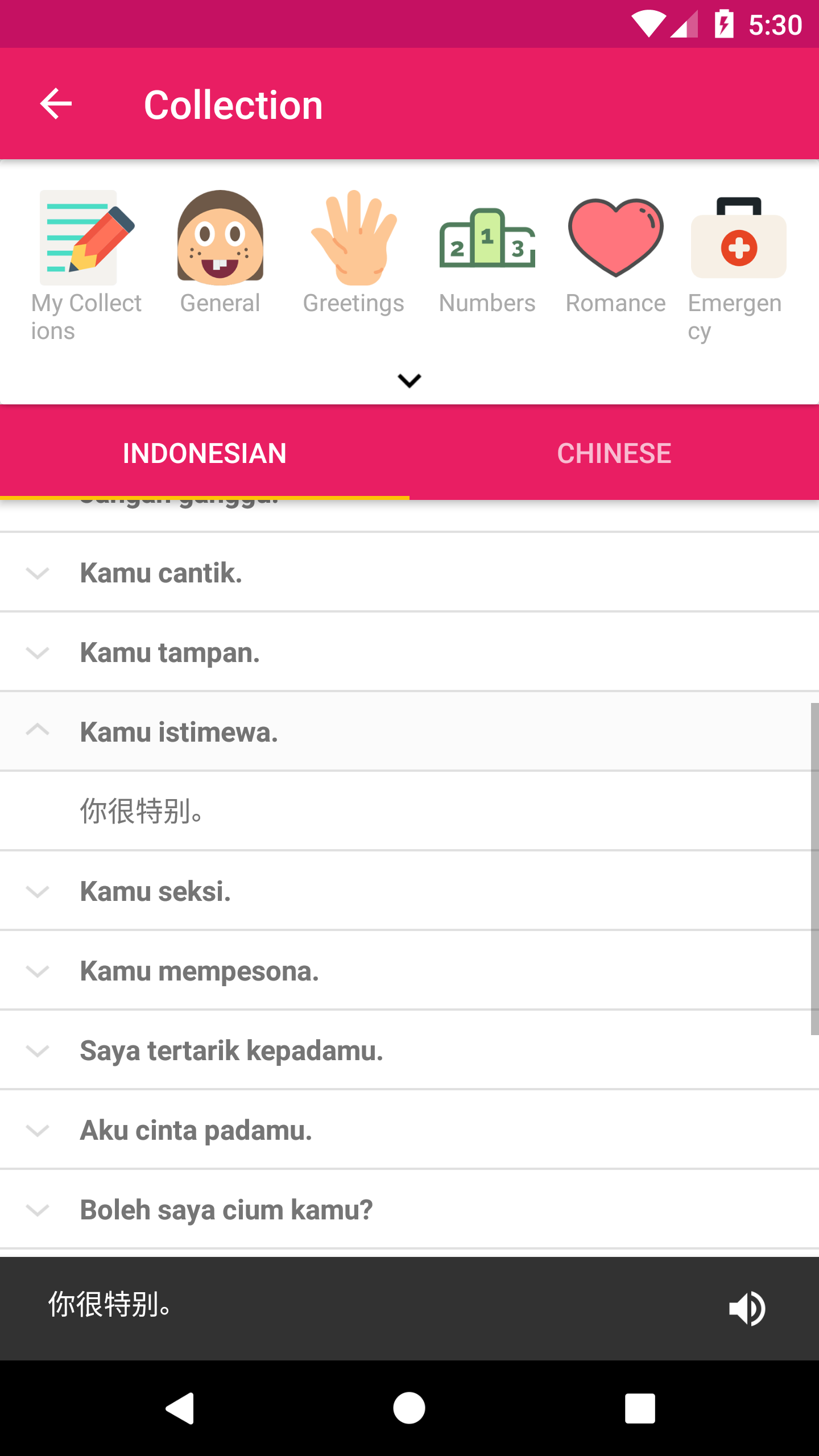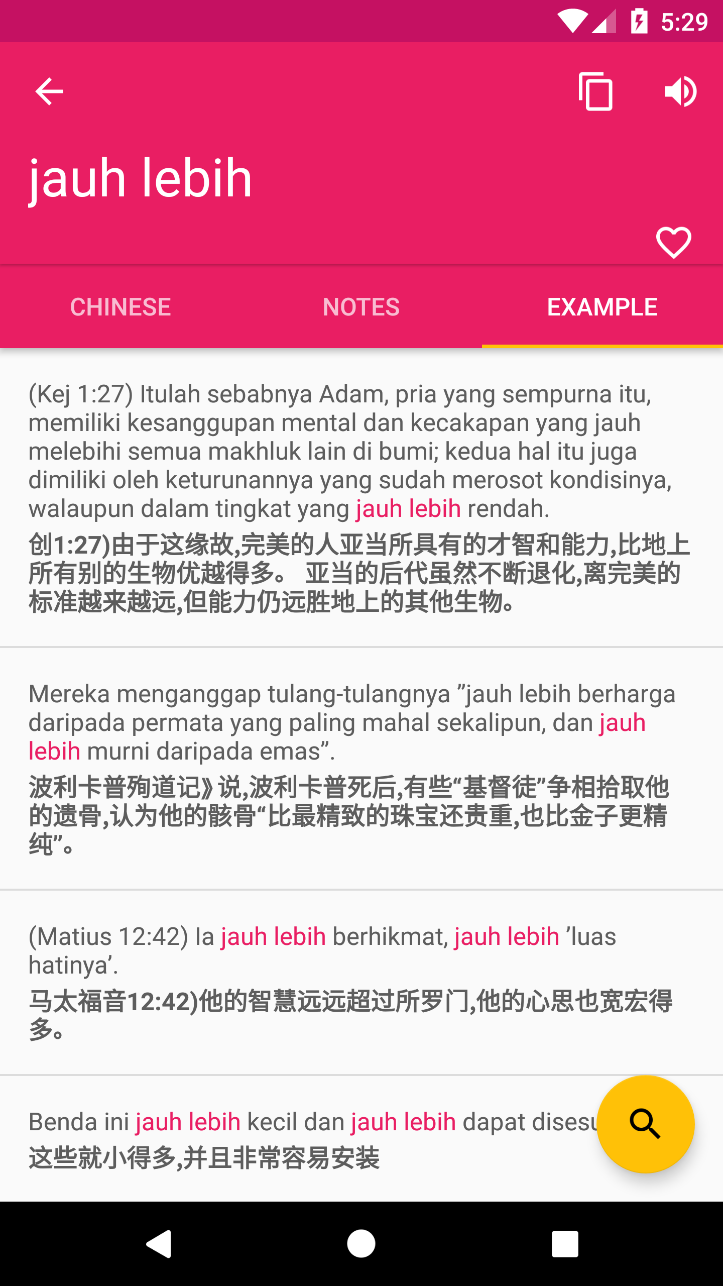 ♦ Search option is working on both Indonesian - Chinese and Chinese - Indonesian directions.