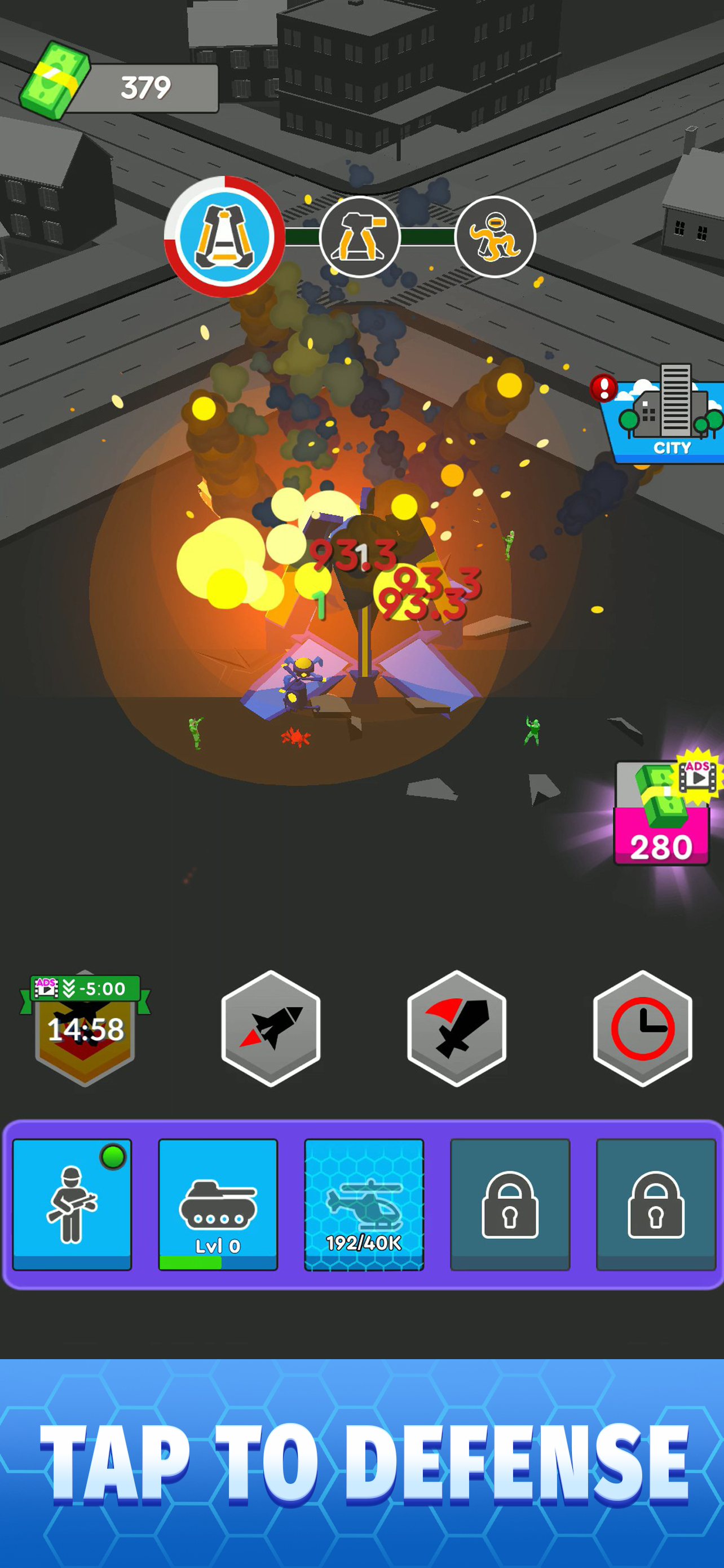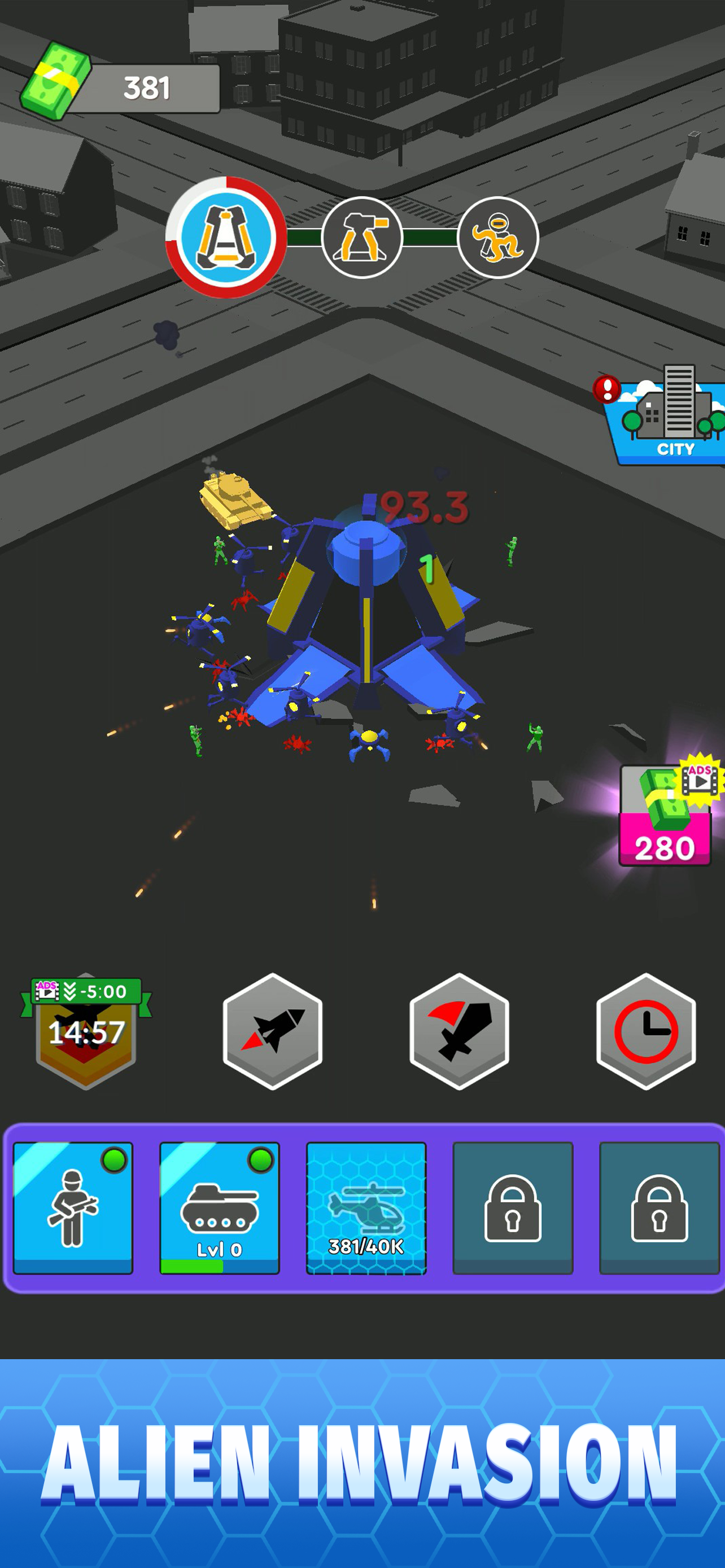Invasion Breaker is a single player alien games in the tower defense genre. Join exciting battles and protect your home planet from an Alien invasion in this army defense project! This isn’t a regular military tycoon but an advanced TD strategy where you need to destroy the buildings of aliens and defend your native land with the help of heavy equipment, soldiers and airstrikes. Here’s why you should play this army defense project: Unique mechanic Your job isn’t tower defense, but rather destroy it. Each level is a new tower enemy that you surround with military equipment and other units. Destroy your opponents and stop the alien invasion before it's too late. Growing difficulty Military tycoon is completely seamless and after each victory you immediately start a new battle! Idle defense keeps you on your toes and immerses you in action without leaving a second to rest. Make decisions quickly to win! User-friendly interface The interface and controls will appeal to all fans of the idle defense genre. The screen is divided into two parts - on the top you can interact with units, give orders, complete daily tasks, build a base and tower defense. In the lower half, the player will find a control panel where they can buy fighters, vehicles, and upgrades. Even a beginner will get the hang of this army simulator, and players that are completely new to alien games can take the tutorial. Various enemies Each of the enemies is unique and has not only a personal design, but also special attacks and personal defense and damage parameters. To win in the idle tower mode, you need to study all the features of each of your opponents. For example, if the tower has air attacks, you need to focus on ground military equipment. Explore new enemies and hit weak points to protect the planet in the advanced military tycoon! Growth system The player in idle defense develops gradually, along with the level of opponents. After each victory, you receive money, but it’s important to manage your funds correctly. Your tower defense depends on how competently you allocate the resources at your disposal! Hire new fighters and upgrade old ones, upgrade military equipment and unlock unique abilities - all this will help to repel the alien invasion in this alien games. Wide choice of weaponry All’s fair in love and war, and in this army defense project, the player has a variety of tower defense methods. Infantry, tanks, helicopters and orbital strikes from laser cannons will help you win the military tycoon. Optimized for older devices An unobtrusive design and user-friendly interface help run idle defense even on weak devices. Join the battle from any smartphone and don't worry about crashes - we have optimized alien games in a way to ensure any player can have a comfortable time.. Are you ready to protect the planet from an Alien invasion in this top-notch army defense project? Join Earth protection and face hundreds of alien invaders, wisely allocate resources and win the military tycoon, protect your native land!
