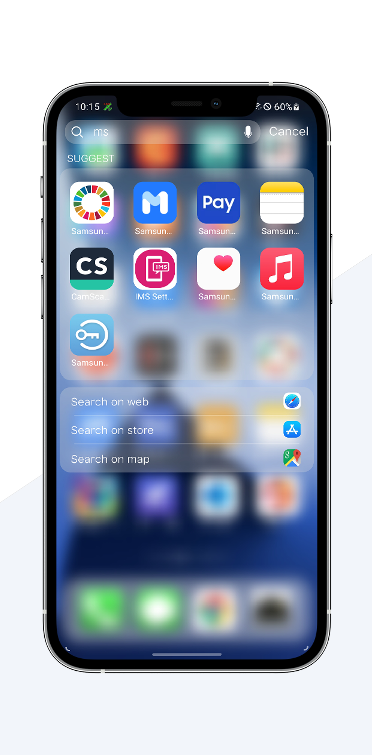- Folder design like iOS style with rounded content area and blur behind.You can drag and drop an app to another to create a folder.