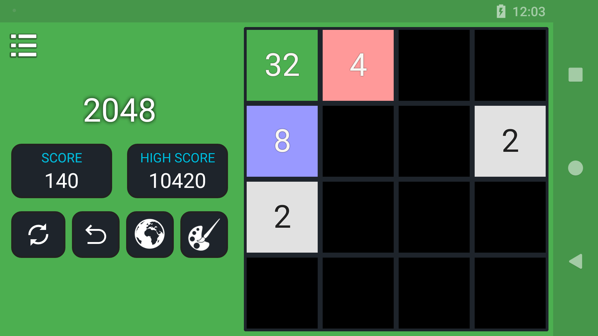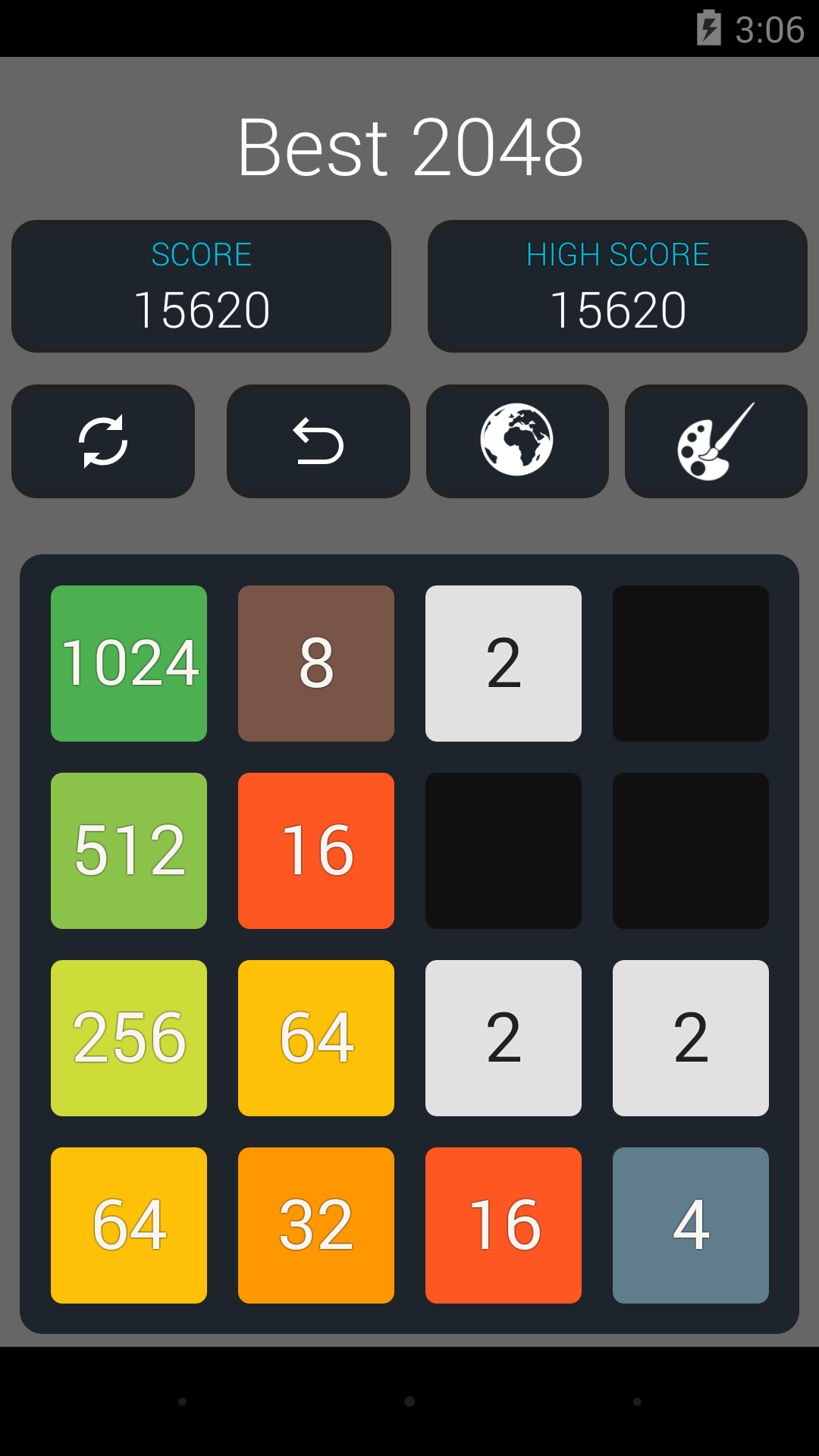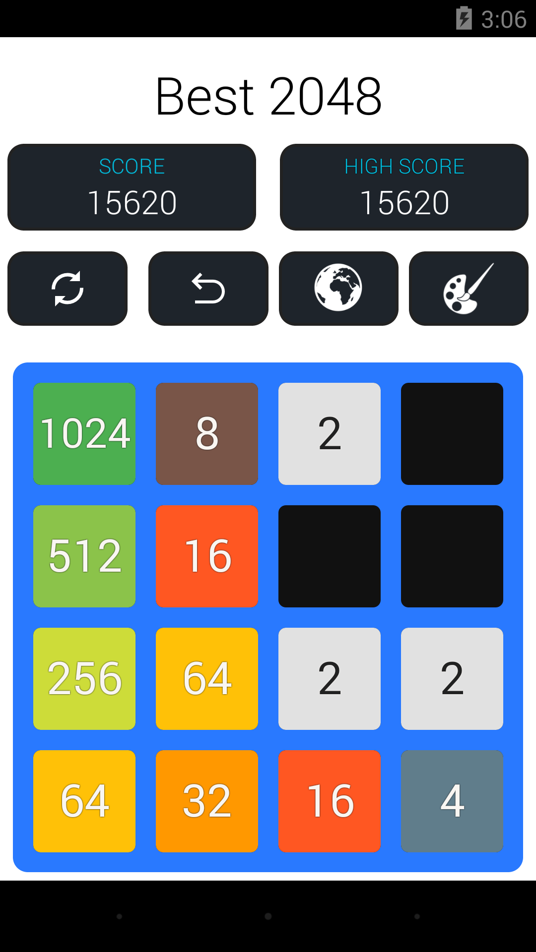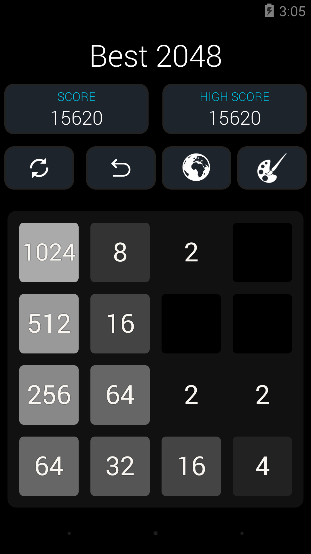 Welcome to Original 2048 Game. Best Puzzle and Educational 2048 Game. Slide Up, Down, Left and Right to make bigger tiles. 2048 Puzzle on 4X4 Board. Features 1) You can play in either Landscape or Portrait Mode 2) You can undo your last 5 moves 3) Game will auto save 4) Smooth Slides and Animation 5) One Click Play Game 6) Undo till 5 levels 7) Battery Saving Mode 8) Your Score will be saved automatically 9) Charming Sounds when you slide the tile! 10) TV support extended - 2048 Plus 11) Check Your World Rank - 2048 Ranking 12) Various Colorful themes a) Chocolate Theme b) Gold Theme c) Classic Theme d) Black Theme 13) Android Wearable Support - Play 2048 on Android Watch. 14) Play 2048 on TV 15) Play kukukube and Game of Fifteen inside 16) Check Your world Rank around Top 2048 Players. Invite your friends to play 2048 17) Gold, Silver & Bronze Metal. (Gold Medal for 80000+ Score) 18) D-pad and Game Pad Support 18) 100% Ads Free. Currently we are working on DayDream (VR) and AR support. So we will make it ultimate 2048++. Follow Us On Facebook: Search for best2048 It's not 2048 Ads Free. With the help of undo feature, You can easily Highest Score: Create Tile 2048 is first challenge. However you can achieve Tile 4096 or Tile8192, 16384, 32768, 65536, 131072 More. About 2048 Original 2048 is played on a 4×4 grid board, with numbered tiles that slide smoothly when a player moves them using the four arrow keys (D-pad) or Using touch slides. Every turn, a new tile will randomly appear in an empty spot on the board with a value of either Two or Four. Tiles slide as far as possible in the chosen direction until they are stopped by either another tile or the edge of the grid. If two tiles of the same number collide while moving, they will merge into a tile with the total value of the two tiles that collided. The resulting tile cannot merge with another tile again in the same move. A scoreboard on the upper-right keeps track of the user's score. The user's score starts at zero, and is incremented whenever two tiles combine, by the value of the new tile. The first challenge when a tile with a value of 2048 appears on the board, hence the name of the game. After reaching the 2048 tile, players can continue to play (beyond the 204 8 tile) to reach higher scores. When the player has no legal moves (there are no empty spaces and no adjacent tiles with the same value), the game ends. This game is also known as Game 4096. 2048Game Tips and Tricks 1. Corner for the biggest tile In order to win the game you should have a strategy to keep the biggest tile on the corner. If you do not follow this then, you would most probably maximum till 512 Tile . So, a good strategy is to always keep your height value tile at one of the corners. Just choose one corner and direct all your tiles there. It is not as easy as it sounds, but you can master it quickly. Master this simple strategy and you will soon reach 1024 and even win the 2048 Game! 2. Take It Slow 2048 is so easy to play, you might get into the habit of tearing through games without even really paying attention to what you're doing. That's not a good idea. Take your time - there's no penalty for thinking your moves through after all. Also, try to predict where new blocks might come in and how you could deploy them. Something like playing chess. 3. How to make the highest valued tile in the right bottom corner and not to move it? Once you have placed your highest tile value is in the right bottom corner, do not move it. To make sure it is not moved, you have to make the last row always filled by pushing the down arrow so that the use of LEFT and Right Arrow would not move the highest valued tile. Basically, this is the most important cheat for 2 048 Game - keep the highest tile in the corner and do not move it. Many more features are coming! Share your feedback! Best of Luck! 2048!