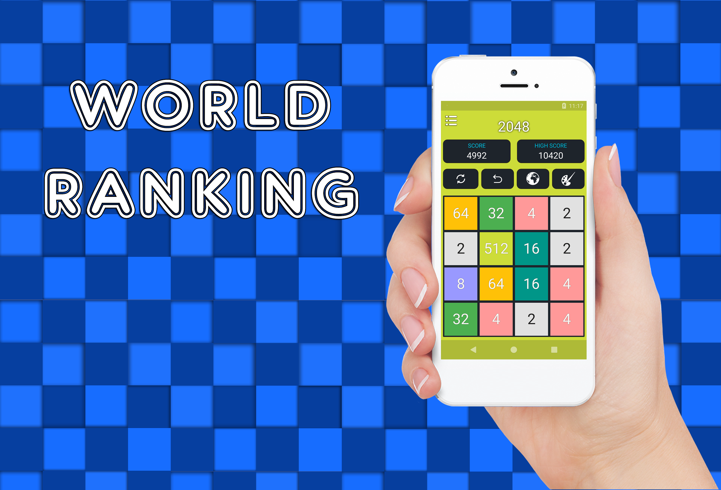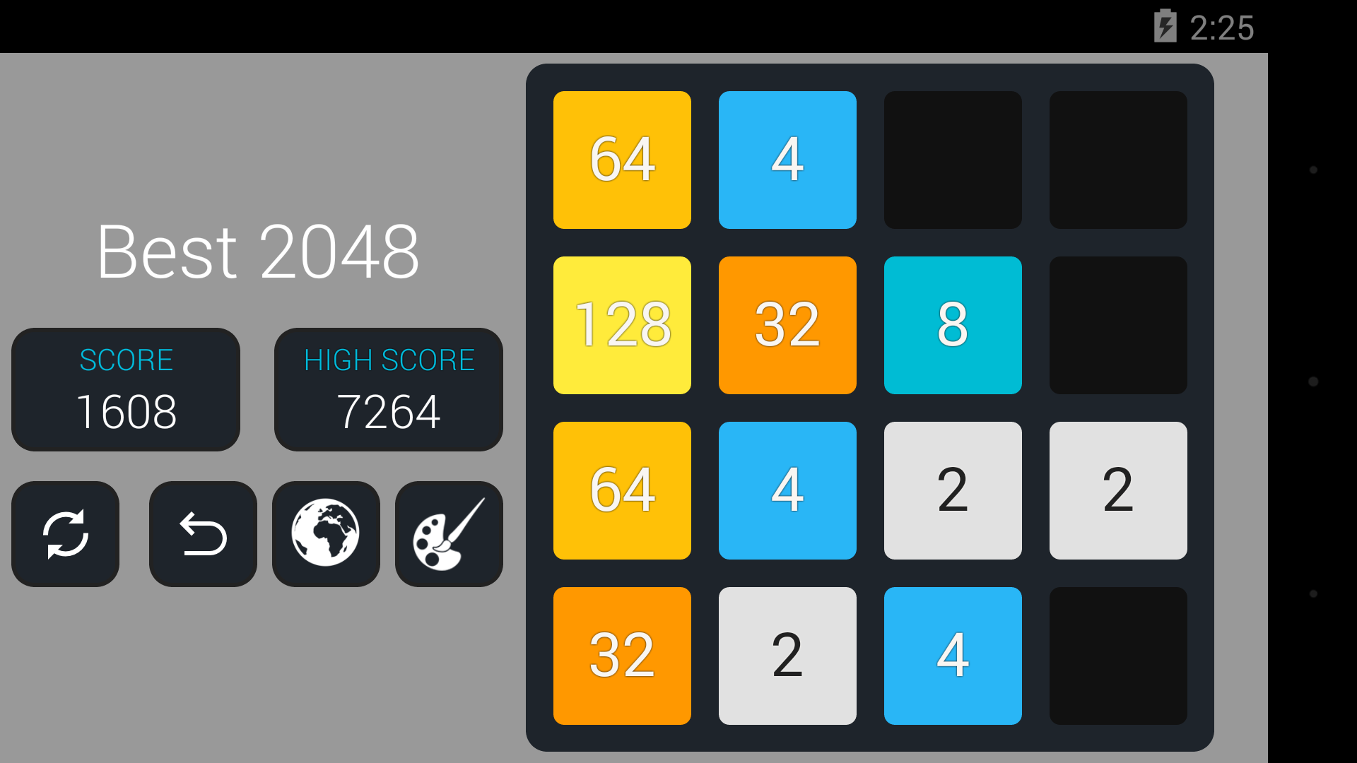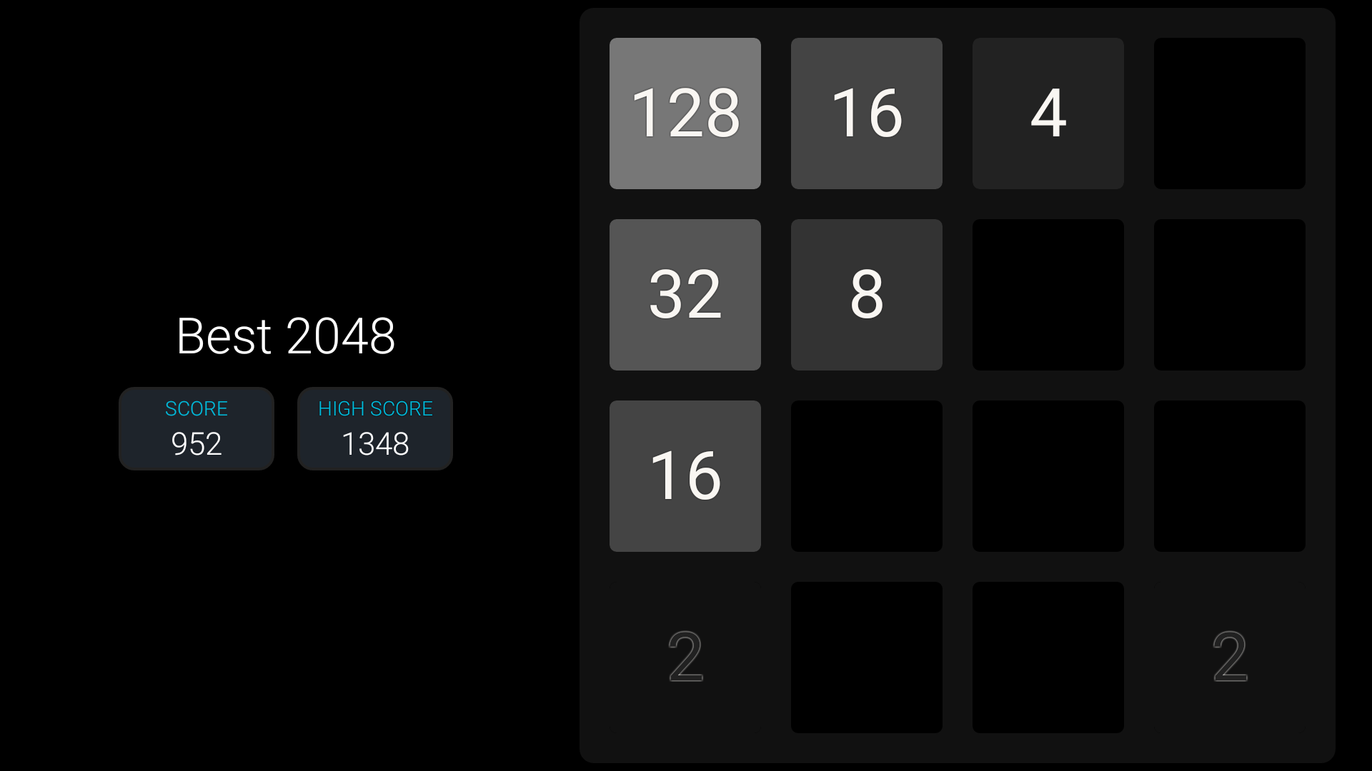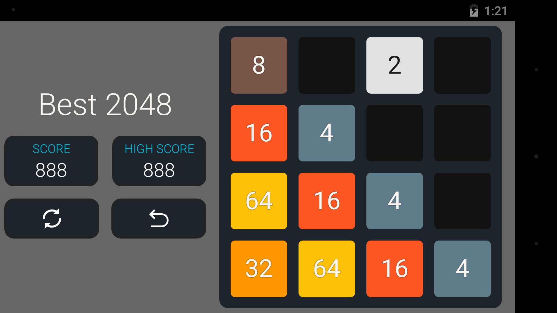 Welcome to Original 2048 Game. Best Puzzle and Educational 2048 Game. Slide Up, Down, Left and Right to make bigger tiles. 2048 Puzzle on 4X4 Board. Features 1) You can play in either Landscape or Portrait Mode 2) You can undo your last 5 moves 3) Game will auto save 4) Smooth Slides and Animation 5) One Click Play Game 6) Undo till 5 levels 7) Battery Saving Mode 8) Your Score will be saved automatically 9) Charming Sounds when you slide the tile! 10) TV support extended - 2048 Plus 11) Check Your World Rank - 2048 Ranking 12) Various Colorful themes a) Chocolate Theme b) Gold Theme c) Classic Theme d) Black Theme 13) Android Wearable Support - Play 2048 on Android Watch. 14) Play 2048 on TV 15) Play kukukube and Game of Fifteen inside 16) Check Your world Rank around Top 2048 Players. Invite your friends to play 2048 17) Gold, Silver & Bronze Metal. (Gold Medal for 80000+ Score) 18) D-pad and Game Pad Support 18) 100% Ads Free. Currently we are working on DayDream (VR) and AR support. So we will make it ultimate 2048++. Follow Us On Facebook: Search for best2048 It's not 2048 Ads Free. With the help of undo feature, You can easily Highest Score: Create Tile 2048 is first challenge. However you can achieve Tile 4096 or Tile8192, 16384, 32768, 65536, 131072 More. About 2048 Original 2048 is played on a 4×4 grid board, with numbered tiles that slide smoothly when a player moves them using the four arrow keys (D-pad) or Using touch slides. Every turn, a new tile will randomly appear in an empty spot on the board with a value of either Two or Four. Tiles slide as far as possible in the chosen direction until they are stopped by either another tile or the edge of the grid. If two tiles of the same number collide while moving, they will merge into a tile with the total value of the two tiles that collided. The resulting tile cannot merge with another tile again in the same move. A scoreboard on the upper-right keeps track of the user's score. The user's score starts at zero, and is incremented whenever two tiles combine, by the value of the new tile. The first challenge when a tile with a value of 2048 appears on the board, hence the name of the game. After reaching the 2048 tile, players can continue to play (beyond the 204 8 tile) to reach higher scores. When the player has no legal moves (there are no empty spaces and no adjacent tiles with the same value), the game ends. This game is also known as Game 4096. 2048Game Tips and Tricks 1. Corner for the biggest tile In order to win the game you should have a strategy to keep the biggest tile on the corner. If you do not follow this then, you would most probably maximum till 512 Tile . So, a good strategy is to always keep your height value tile at one of the corners. Just choose one corner and direct all your tiles there. It is not as easy as it sounds, but you can master it quickly. Master this simple strategy and you will soon reach 1024 and even win the 2048 Game! 2. Take It Slow 2048 is so easy to play, you might get into the habit of tearing through games without even really paying attention to what you're doing. That's not a good idea. Take your time - there's no penalty for thinking your moves through after all. Also, try to predict where new blocks might come in and how you could deploy them. Something like playing chess. 3. How to make the highest valued tile in the right bottom corner and not to move it? Once you have placed your highest tile value is in the right bottom corner, do not move it. To make sure it is not moved, you have to make the last row always filled by pushing the down arrow so that the use of LEFT and Right Arrow would not move the highest valued tile. Basically, this is the most important cheat for 2 048 Game - keep the highest tile in the corner and do not move it. Many more features are coming! Share your feedback! Best of Luck! 2048!