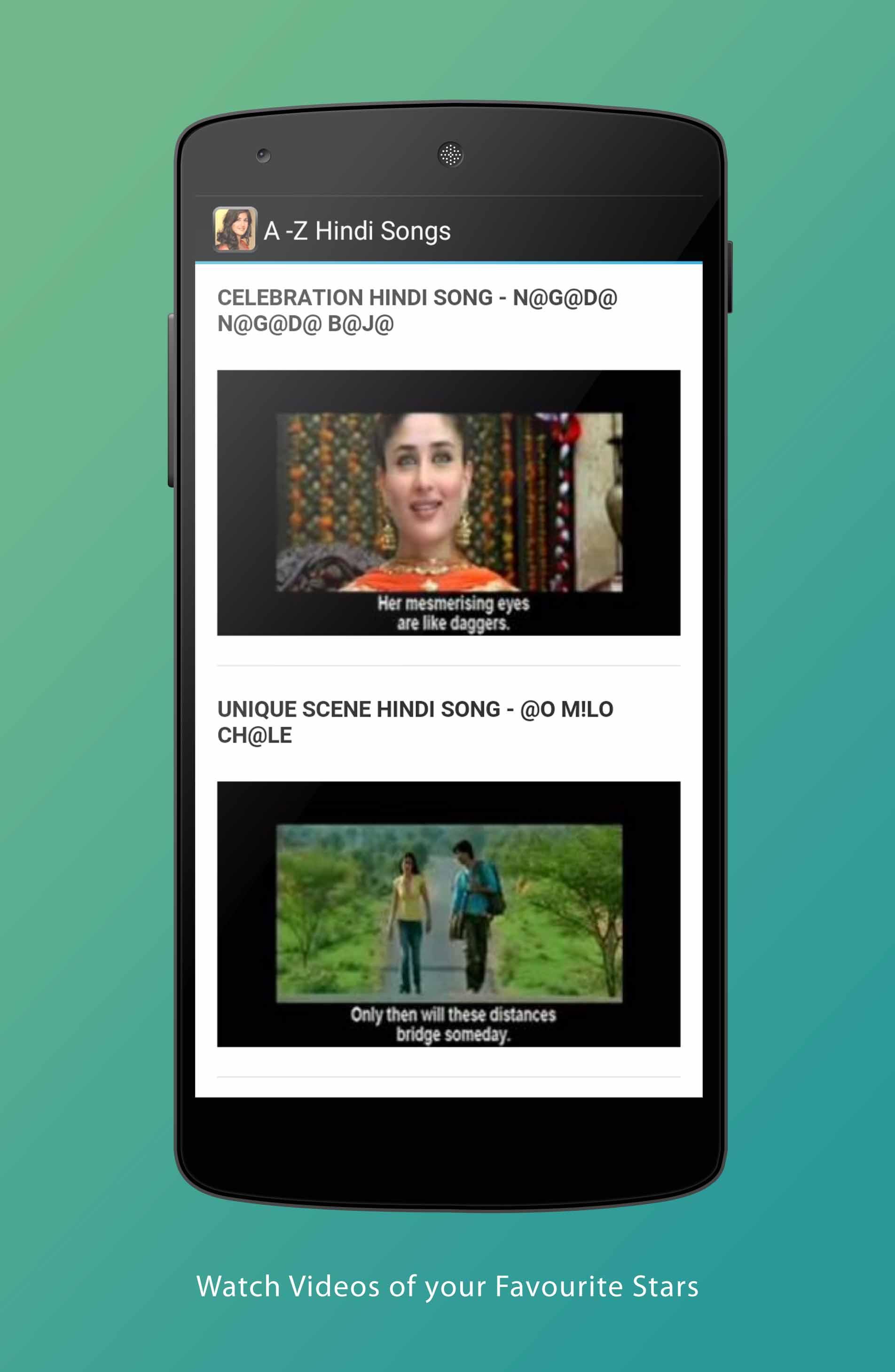 Listen to and watch Bollywood Hindi VIDEO Songs. Watch Movie Songs, Albums straight on your mobile.