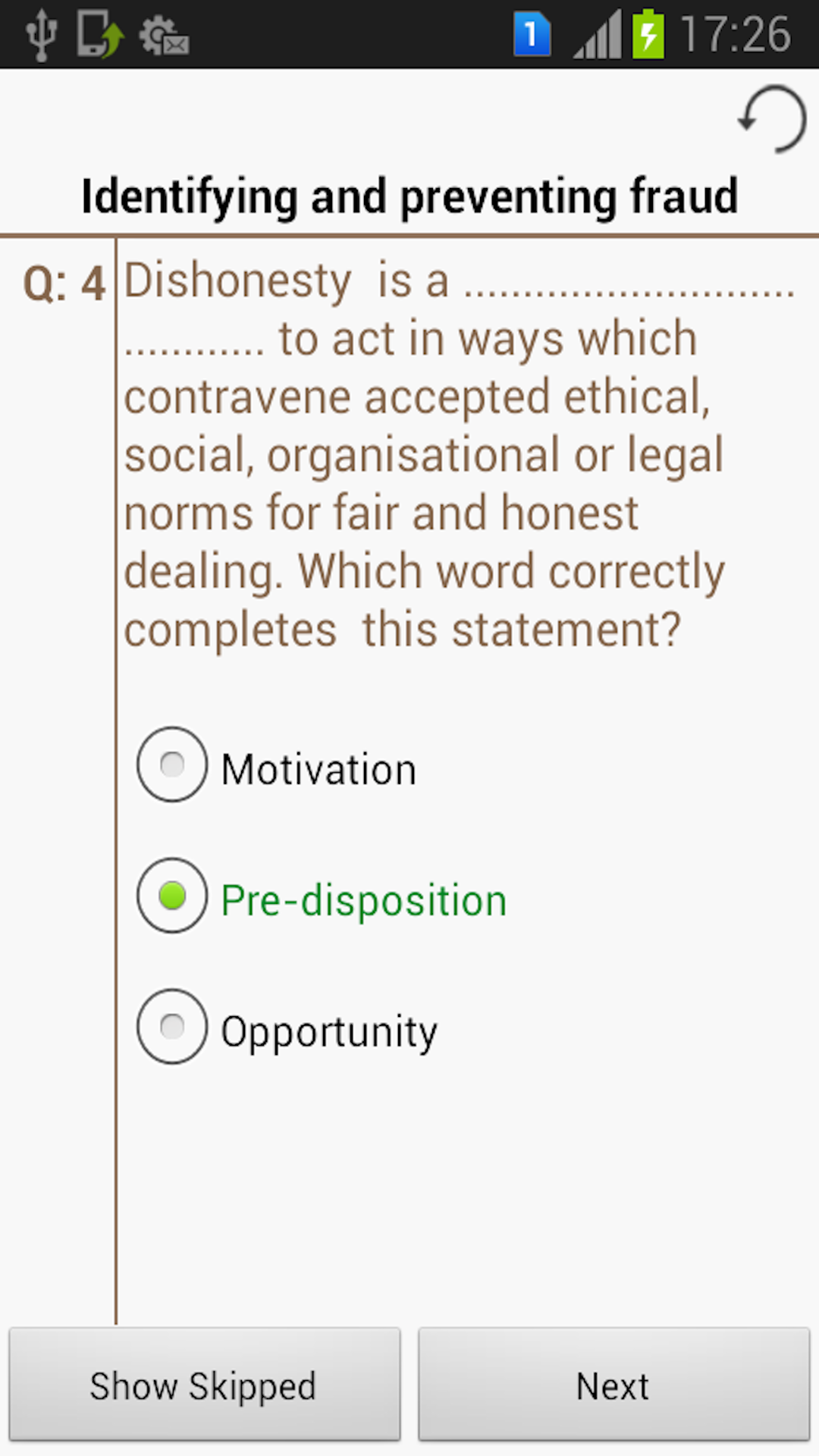 No need to keep the massive books of "ACCA F1 Accountant in business" all time around you. Now you can use the best available android application of preparation. This android app provides multiple choice questions for every chapter of "ACCA F1 Accountant in Business" so you can prepare to pass "ACCA F1" course. Once you are confident about your exam preparation then you can use "Mock-up" feature of our application to evaluate yourself by solving mock-up papers. It takes 50 random questions from all chapters to test your skills and ability. You can take as many exams as you wish for free. It will keep history of your all attempts.You don't need to pay any fee to appear in your mock-up exam. Some of the application features are as follows: • Multiple choice questions for each chapter of "ACCA Accountant in Business" • Mock-up exam to test your ability • Countdown time for whole chapter and mock-up exam to improve your time management skill • History of the mock up complete history and the individual question history. • Questions in the mockup can be added to review to study and solve them later in the mock up. • Know about the answers in the chapters with the colors i.e., selected option is correct or incorrect. Like our Facebook page https://www.facebook.com/accaexamkit and stay tune for the updates.