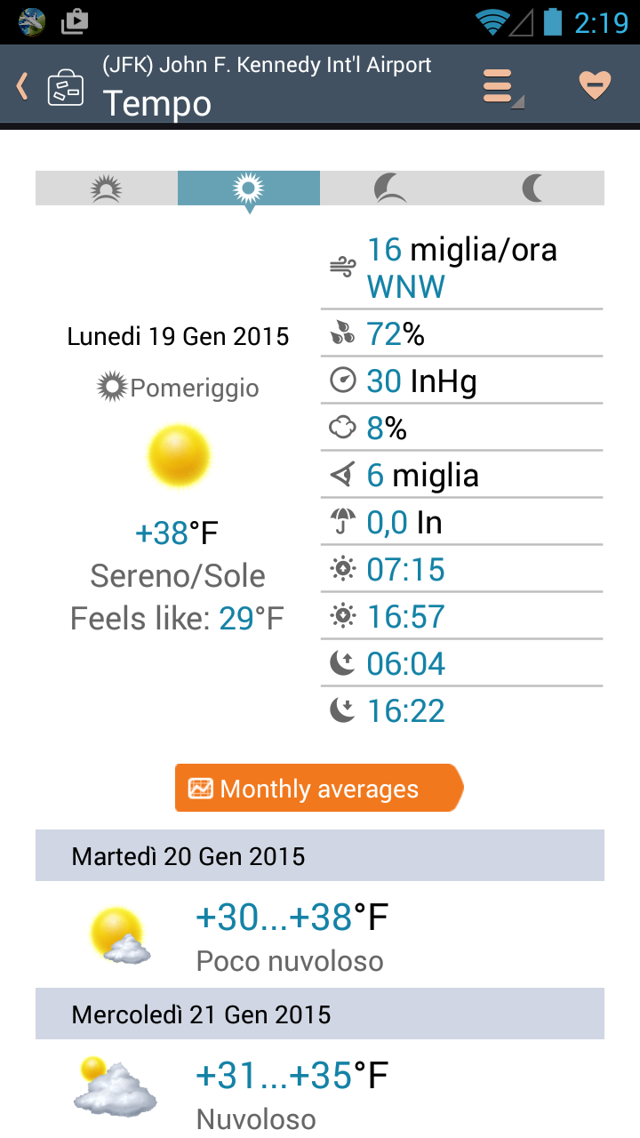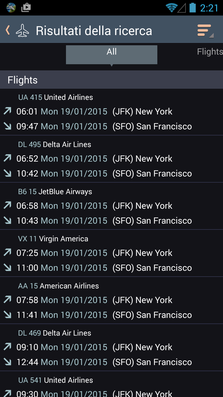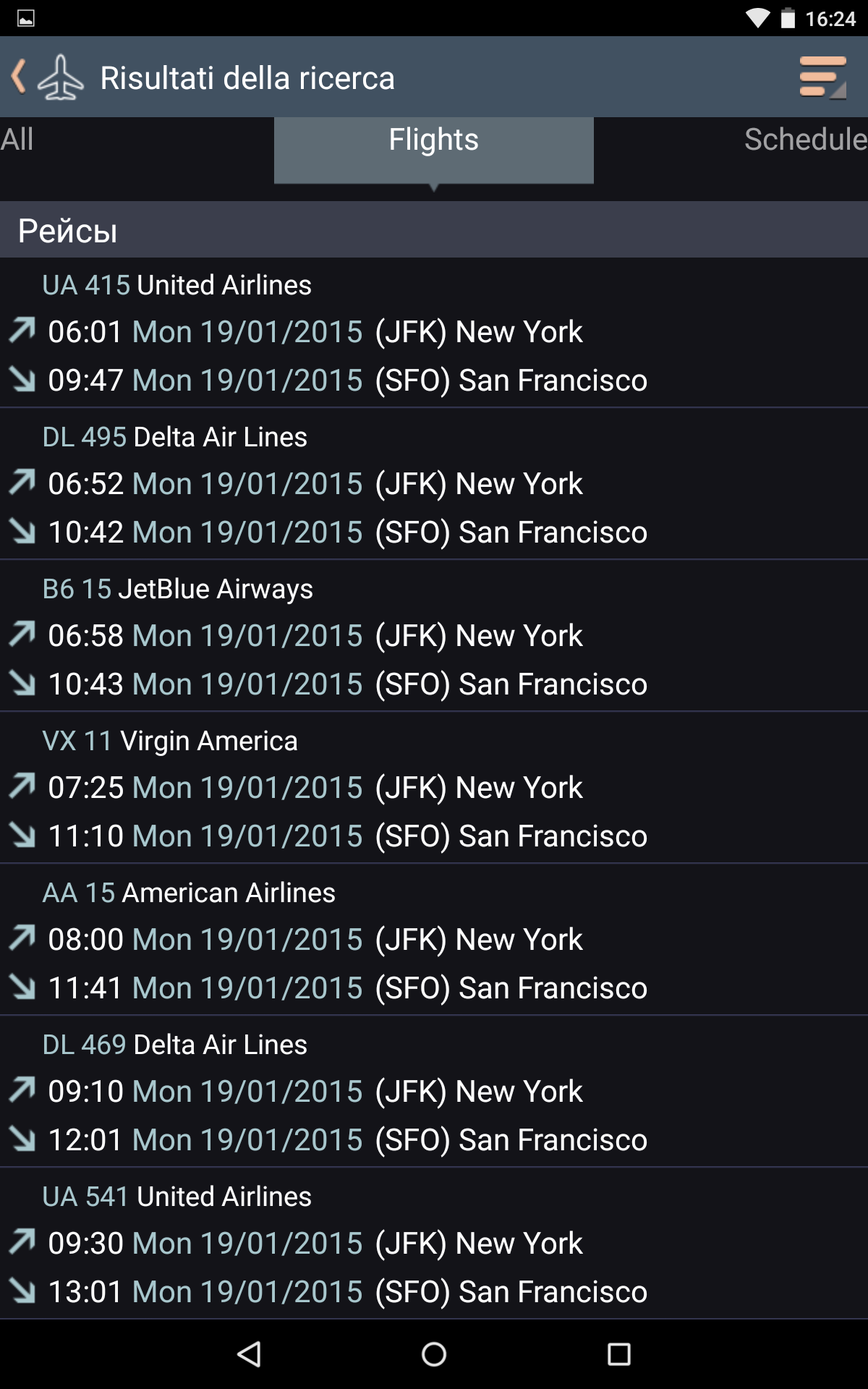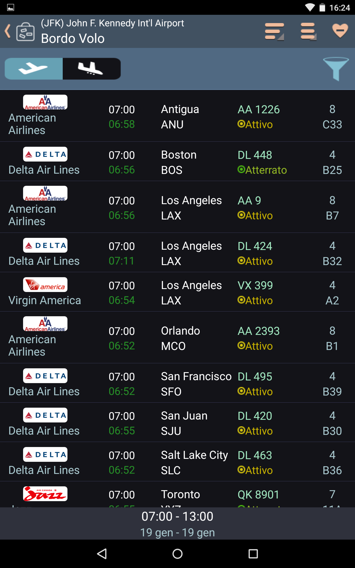 ✈ STATO DI VOLO - La posizione attuale del velivolo con la velocità effettiva per la maggior parte dei voli. Usarlo come vostro radar volo virtuale personale per conoscere la velocità del velivolo, latitudine, longitudine e altitudine ✈ LA MAGGIOR COPERTURA DI VOLI, AEROPORTI E COMPAGNIE AEREE - 16500 aeroporti. Per aeroporti sono disponibili informazioni sullo stato dei voli e del meteo, l’esatta posizione e la velocità per i voli. - 1500 compagnie aeree. La stragrande maggioranza delle compagnie aeree sono le compagnie aeree commerciali, tuttavia ci sono alcuni charter e cargo: Alitalia, Air Dolomiti, Air One… - L’applicazione permette di individuare gli aeroporti più prossimi alla vostra posizione corrente nel raggio di 200 km ✈ TEMPO REALE INFORMAZIONI SU ARRIVI E PARTENZE - E possibile filtrare i dati di Arrivi e Partenze in aeroporto per compagnie aeree, stato del volo e intervalli di tempo - Advanced ordinamento - Intervallo di 3 giorni (72 ore) tempo per arrivi e partenze ✈ SYNC - Calendar app - TripIt ✈ PUSH-NOTIFICHE - Le segnalazioni di variazioni di stato volo ✈ INFORMAZIONI SUI RITARDI NEGLI AEROPORTI E SUL METEO IN AEROPORTO - Ritardo su una scala a 5 punti con la fase 0.2 - Temperatura reale - Velocità e direzione del vento - Previsioni meteo dettagliate 15 giorni ✈ PIANI TERMINALE E MAPPA DEI POSTI - Disponibile per le maggiori compagnie aeree e aeroporti. Scarica tutto in una volta dalla scheda "Contenuto aggiuntivo" - Specifiche per tipi di aeromobili 400 + ✈ RICERCA DEL VOLO - Per numero del volo (per un anno) - Per rotta - Lista dei 10 voli e aeroporti visti di recente - Voli indiretti ✈ SERVIZI - Cerca hotel tramite booking.com - Noleggio auto via rentalcars.com - Luoghi in aeroporto tramite Foursquare - Il radar mostra aeroporti e voli più vicini ✈ PREFERITI - Aggiungi voli e aeroporti scorrendo da destra verso sinistra ✈ POSSIBILITÀ DI CONDIVISIONE DELLE INFORMAZIONI RELATIVE ALLO STATO DEL VOLO TRAMITE: - SMS - Email - Twitter - Facebook ✈ MULTILINGUE - 29 lingue supportate ✈ UNIVERSAL APP - Versione unica per telefoni Android e compresse