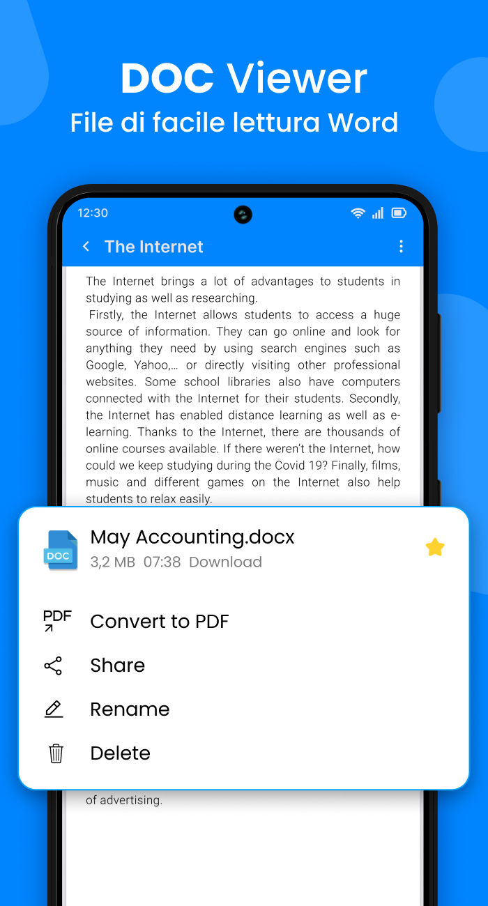 ✔️ Lettore di documenti tutto in uno: file PDF, DOC, DOCX, XLS, PPT, TXT da memoria interna, e-mail, cloud, web e memoria esterna